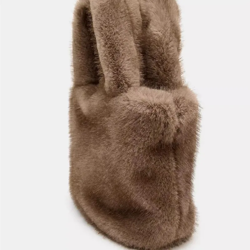 Fashion Winter Women Bucket Bag Faux Fur Ladies Casual Tote Shoulder Bags Luxury Design Female Clutch Purse Handbags Bolsa