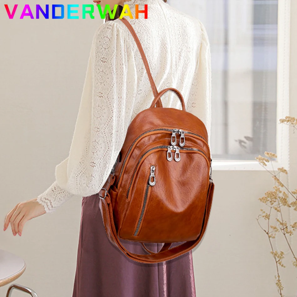 Fashion Women Large Capacity Shoulder Bags Soft Pu Leather Backpacks for School Teenagers Girls Multifunctional Travel Backpacks