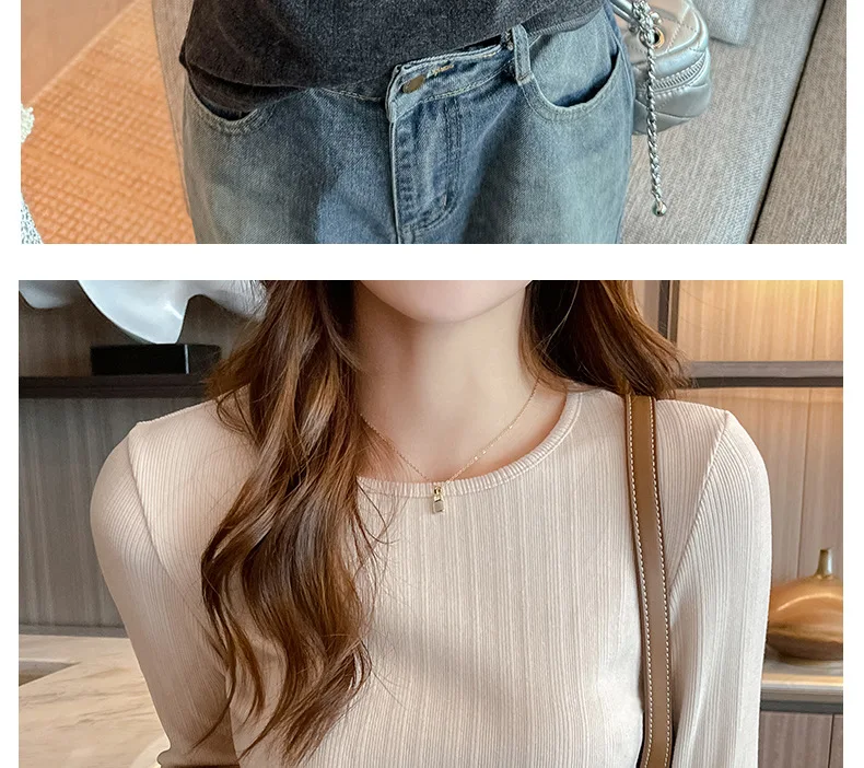 Fashion Women T-shirts Long Sleeve High Strecth Slim Fit Undershirts O-neck Solid Warm Autumn Winter Inner Basic Knitted Tops