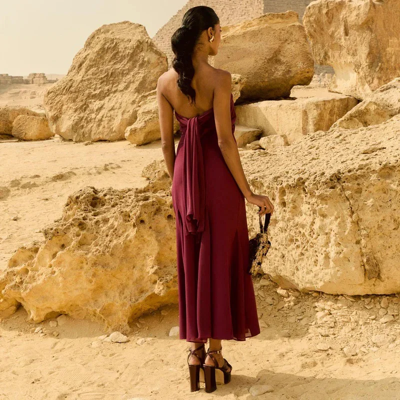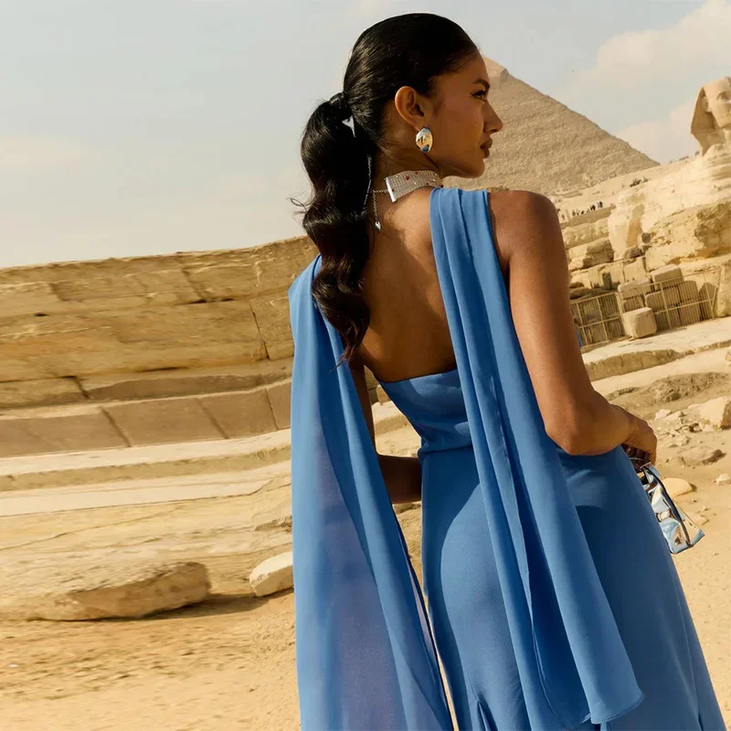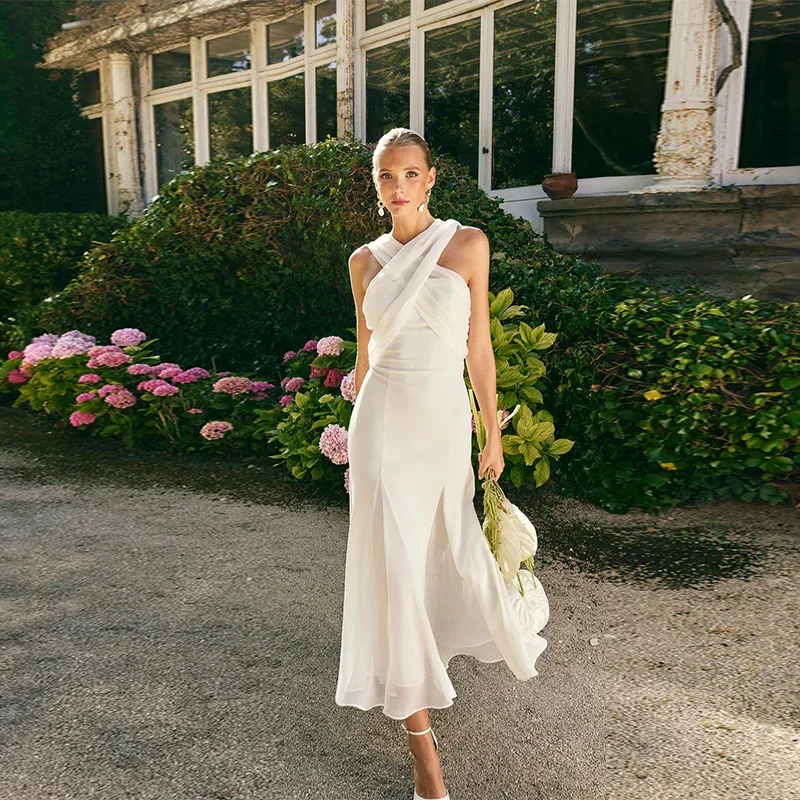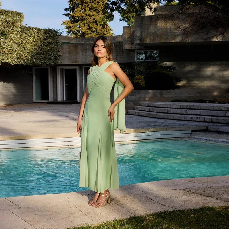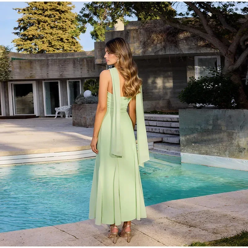 Fashion Women’s Chiffon Dress Elegant Sleeveless Pleated Slim Female Dresses With Ribbon 2025 Summer Female Party Vacation Robe