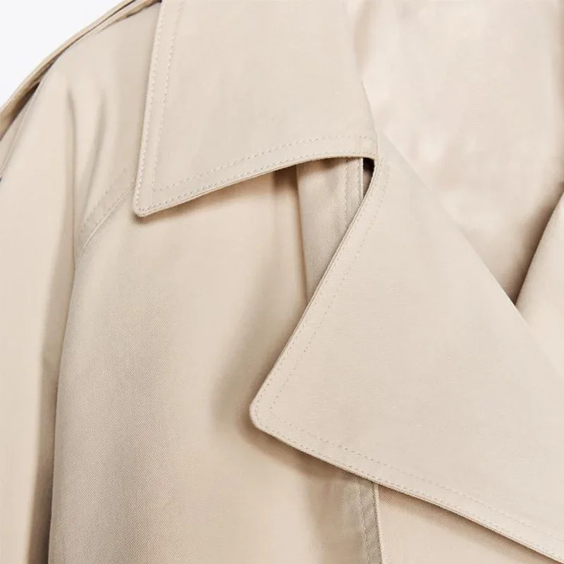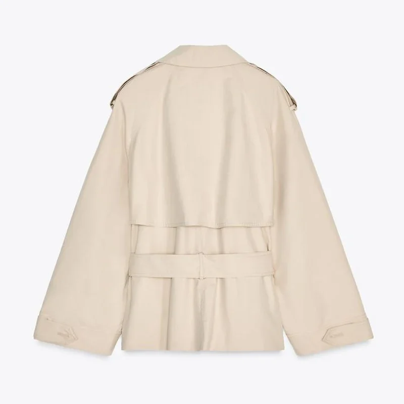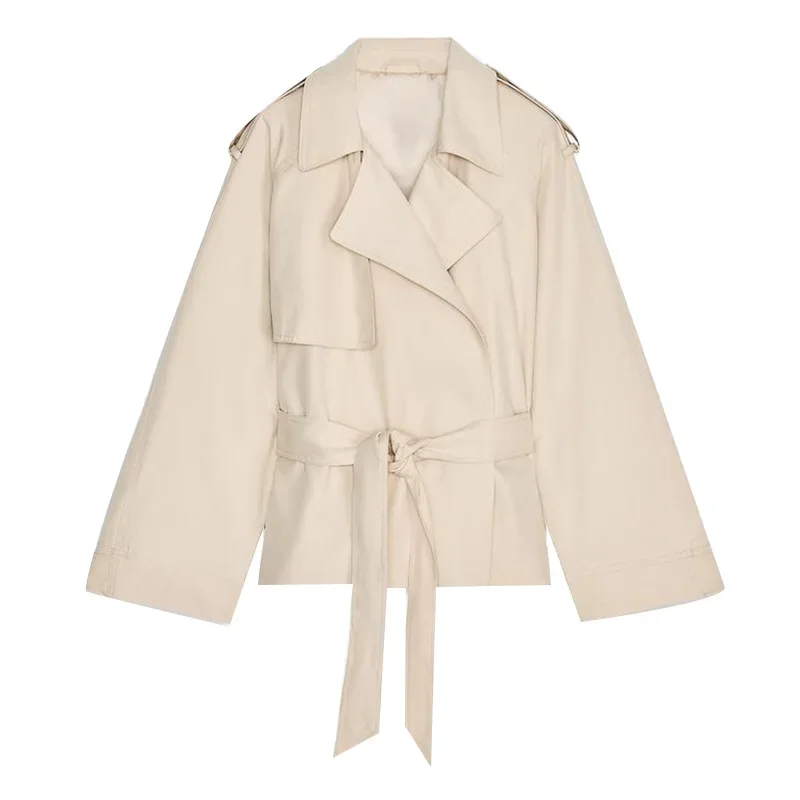 Fashion Women’s Cropped Trench Coat Lace Up Solid Notched Neck Full Sleeves Loose Female Jackets 2025 Spring Lady New Outfits
