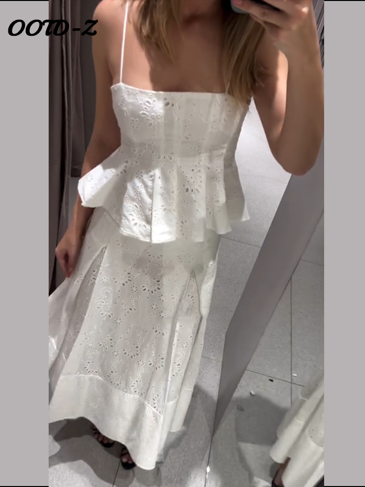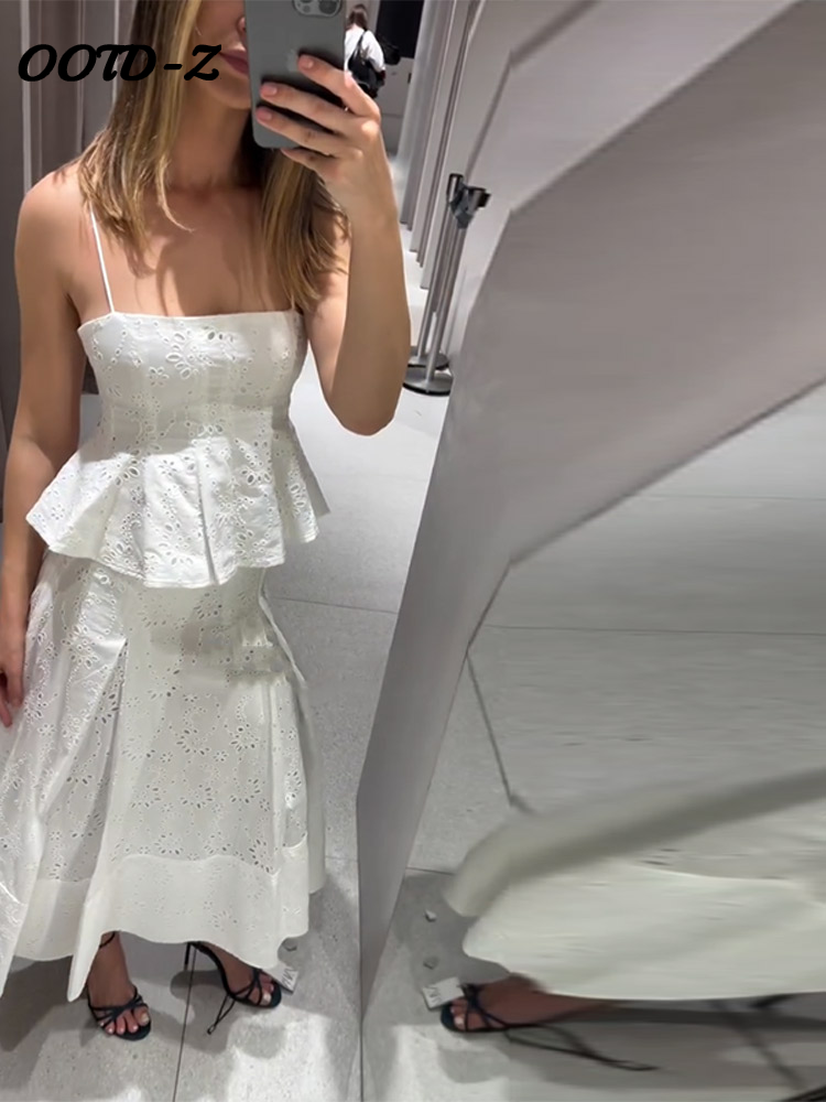 Fashion Women’s Embroidery Top Skirts Suit Sleeveless Holow Out Lady Set 2025 Spring Summer Elegant 2 Pieces Set Women Holiday