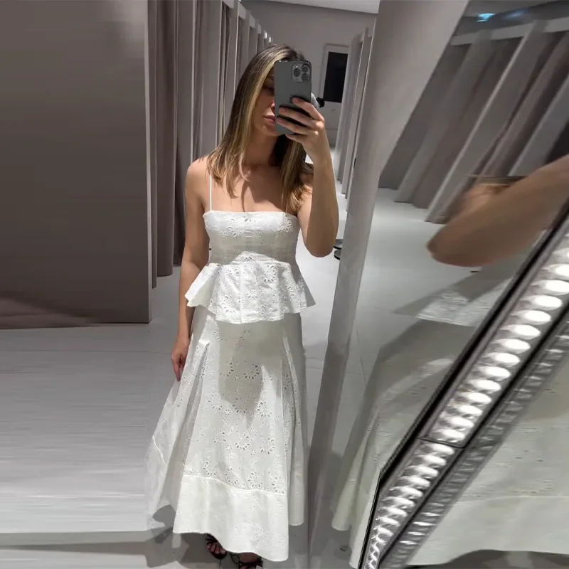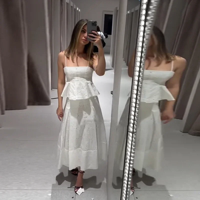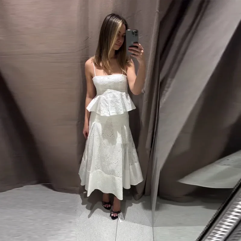 Fashion Women’s Embroidery Top Skirts Suit Sleeveless Holow Out Lady Set 2025 Spring Summer Elegant 2 Pieces Set Women Holiday