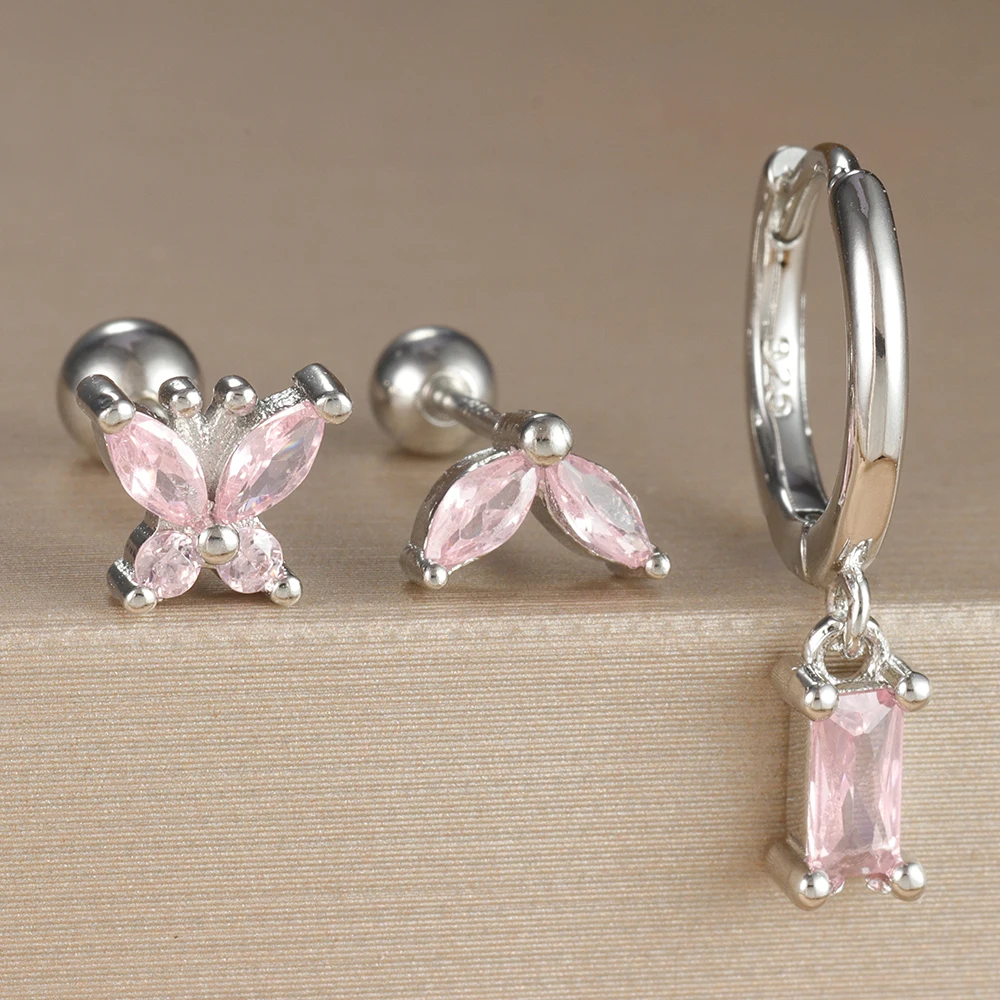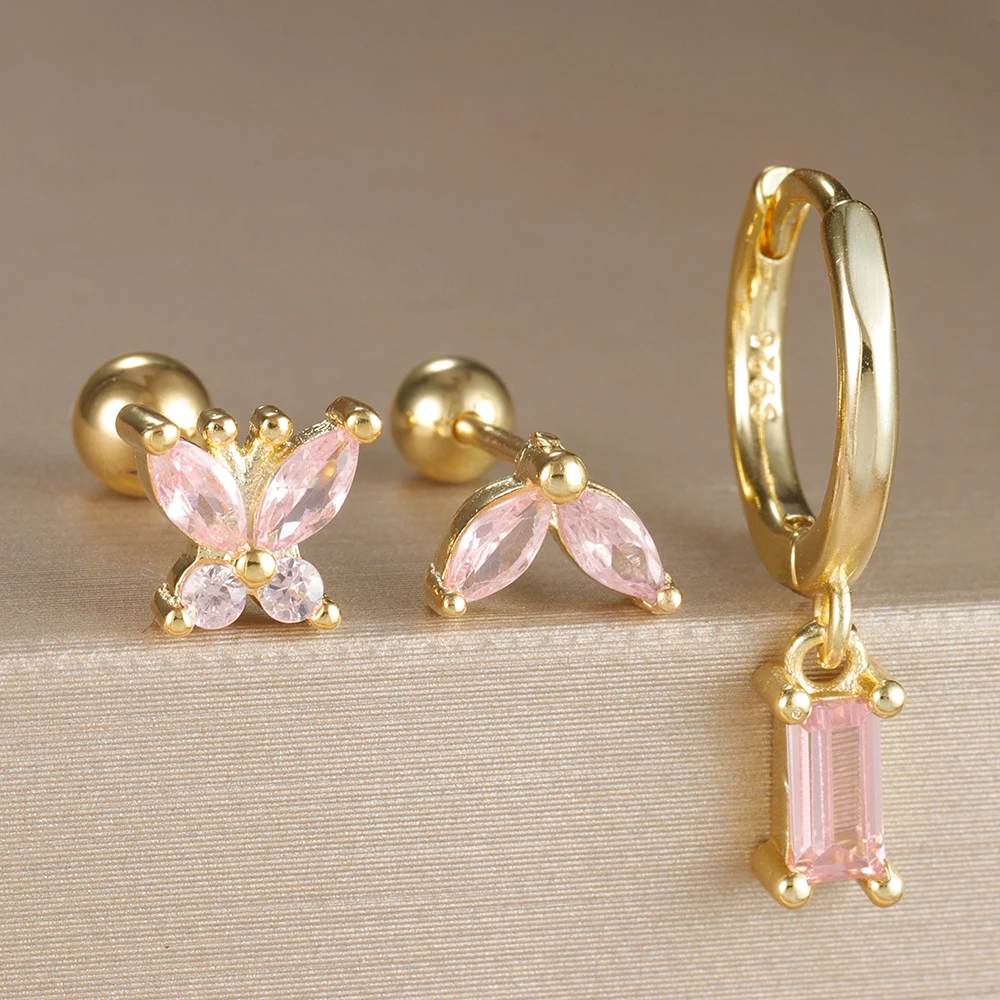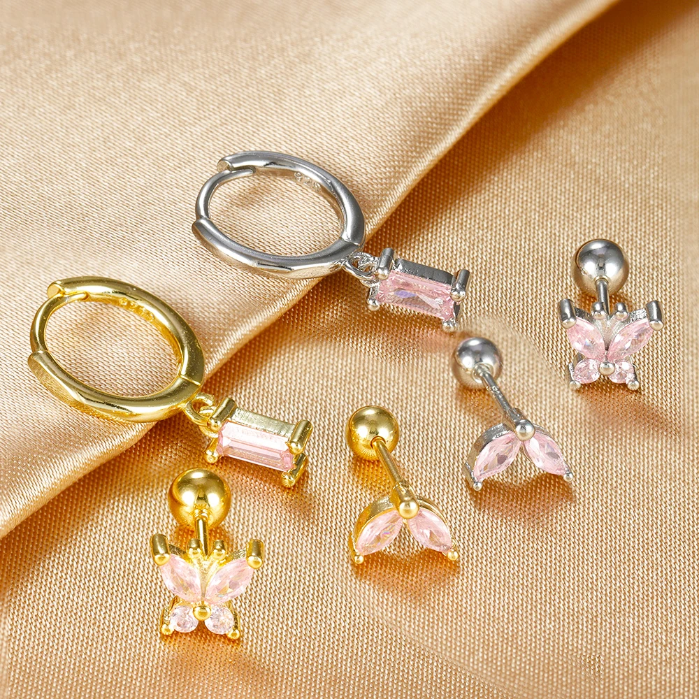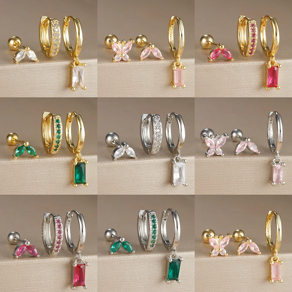 Fashion Zircon Butterfly Pendant Hoop Earring Set for Women Small Stainless Steel Huggies Square Earring Piercing Jewelry aretes