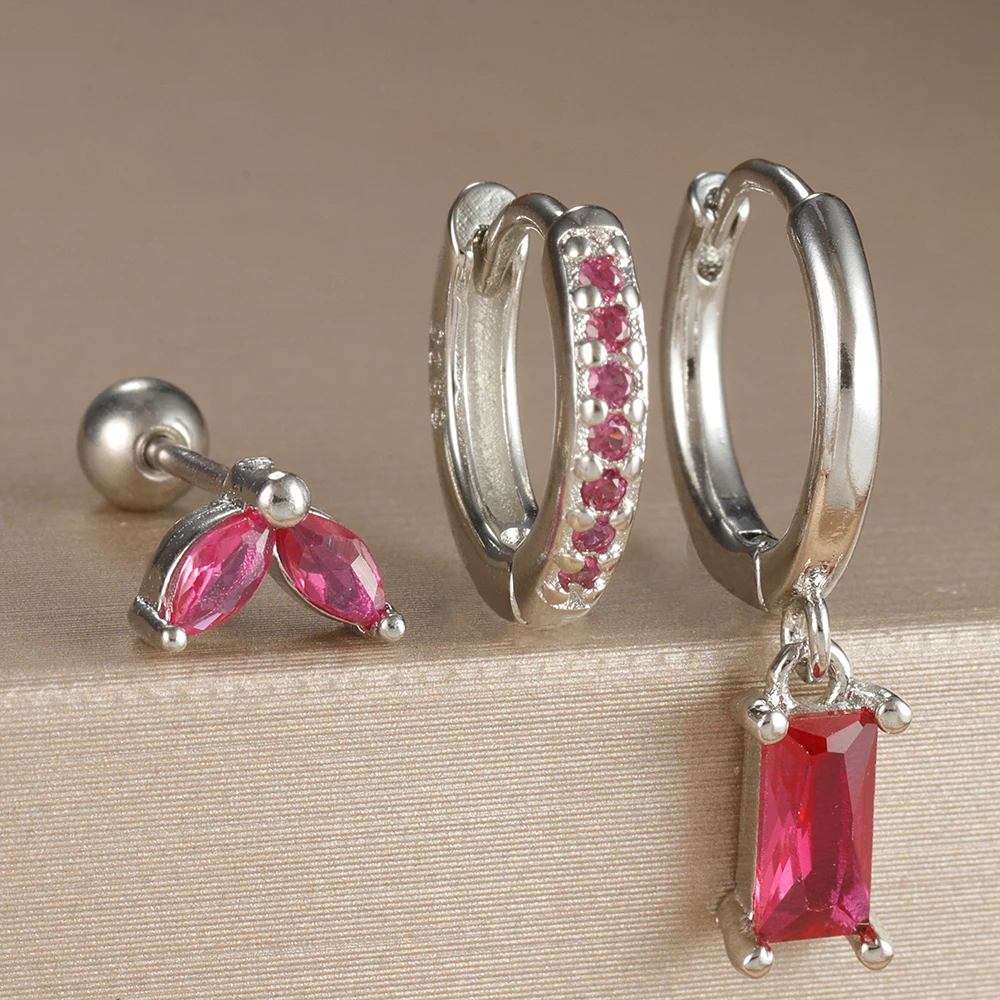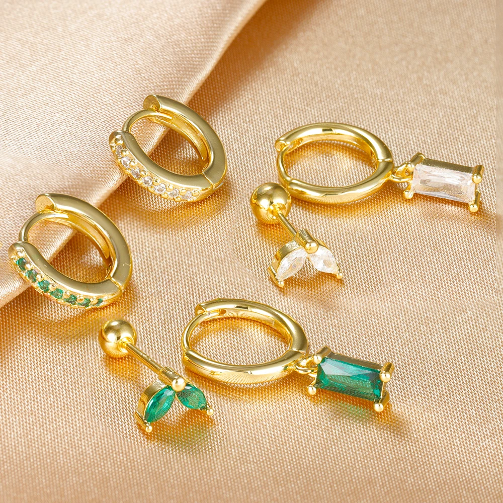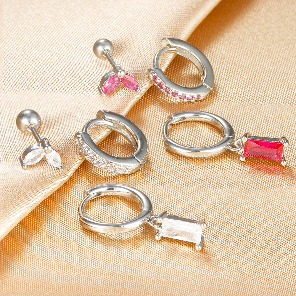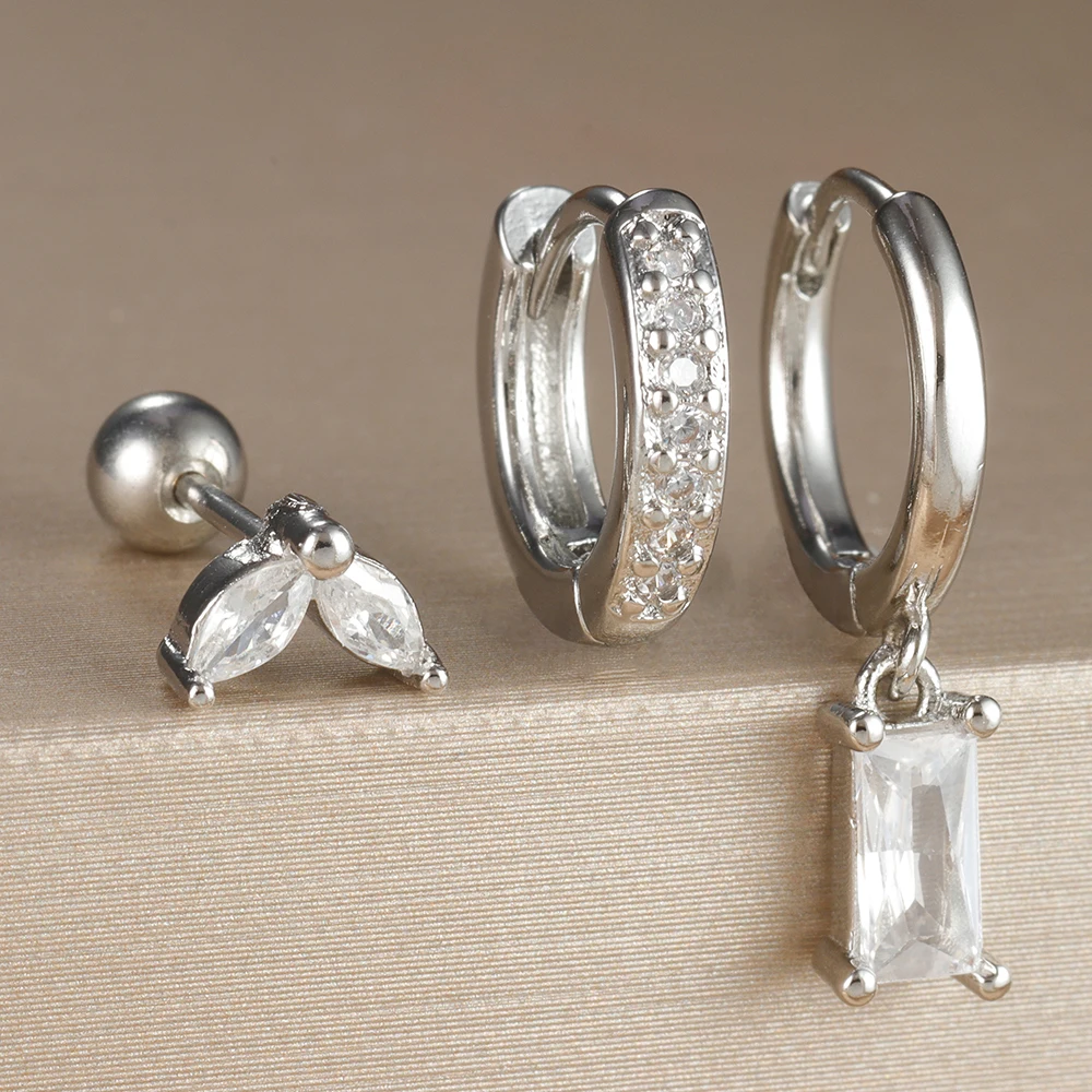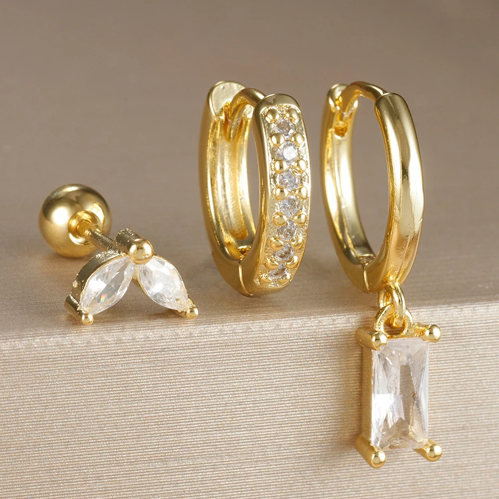 Fashion Zircon Butterfly Pendant Hoop Earring Set for Women Small Stainless Steel Huggies Square Earring Piercing Jewelry aretes