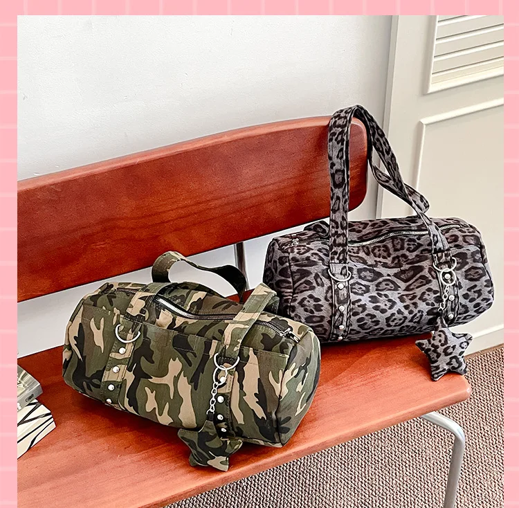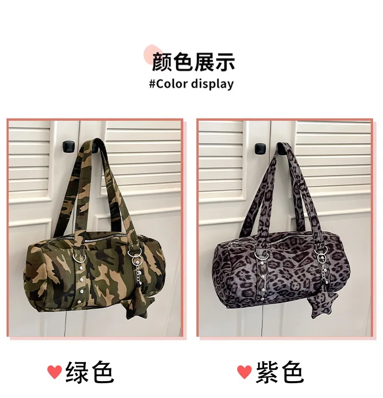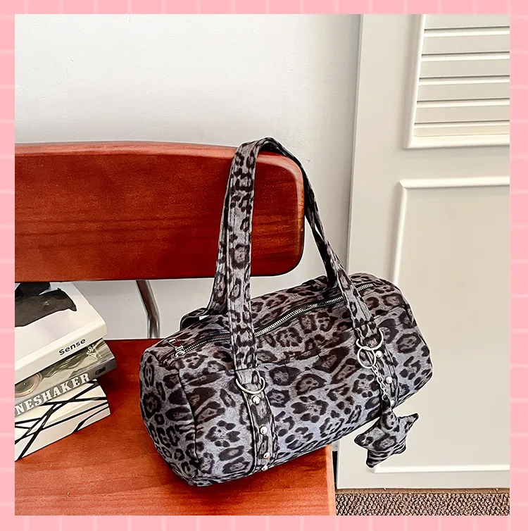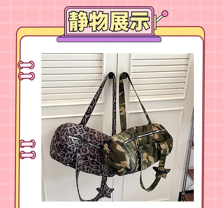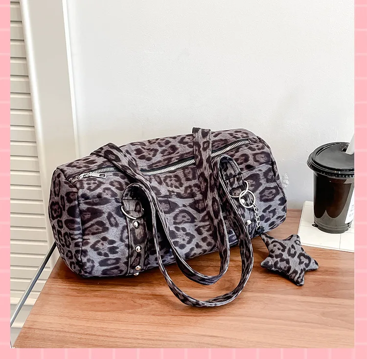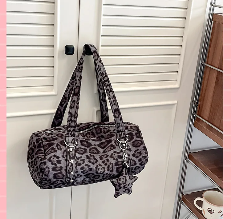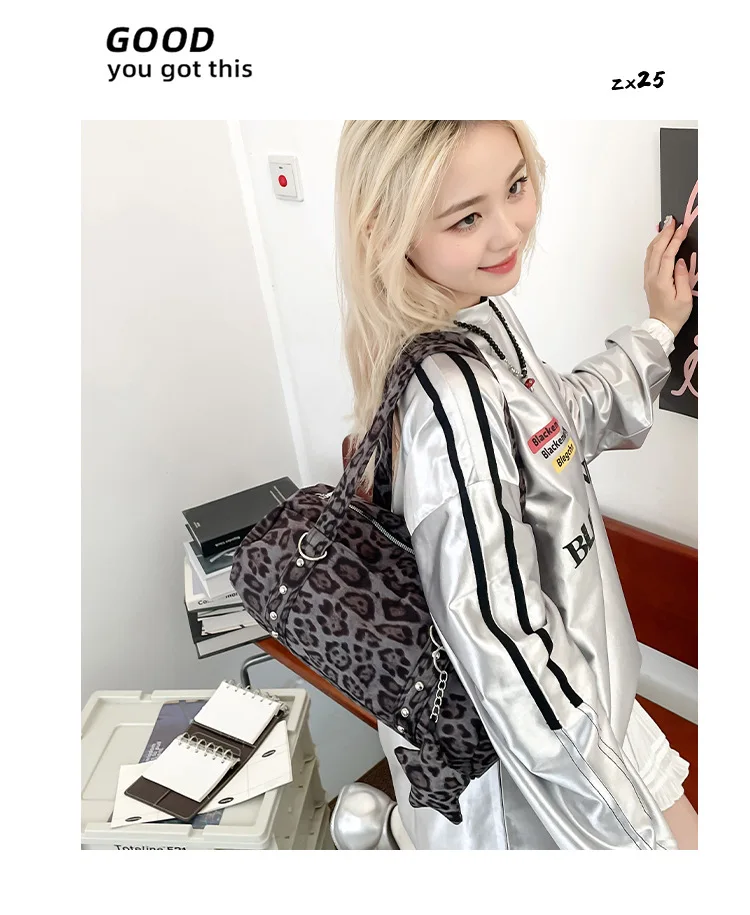 Fashionable Large Capaci oulder Bag Underarm Star Leopard Print Spicy Girl Y2K Single Shoulder Bag Soft Nylon Women’s Handbag