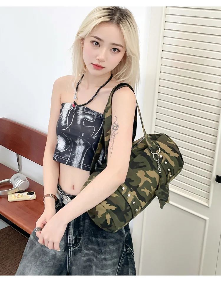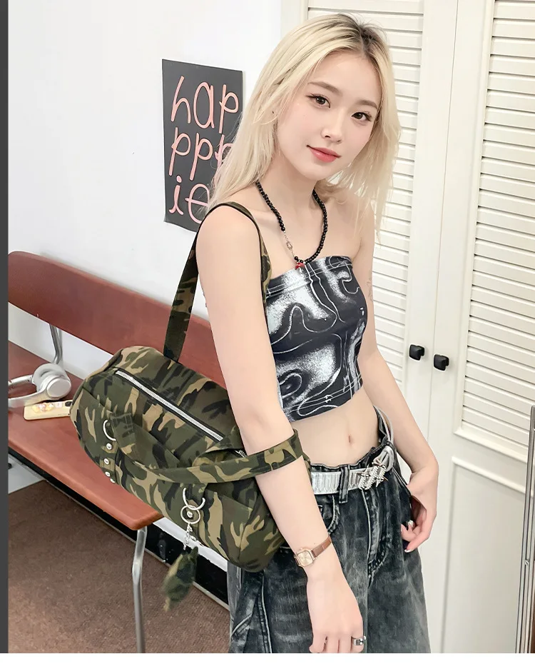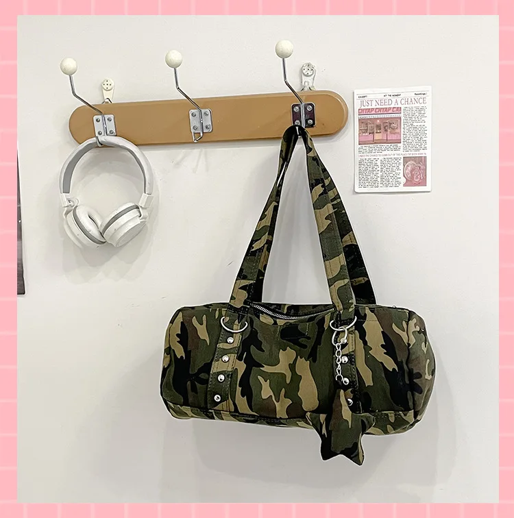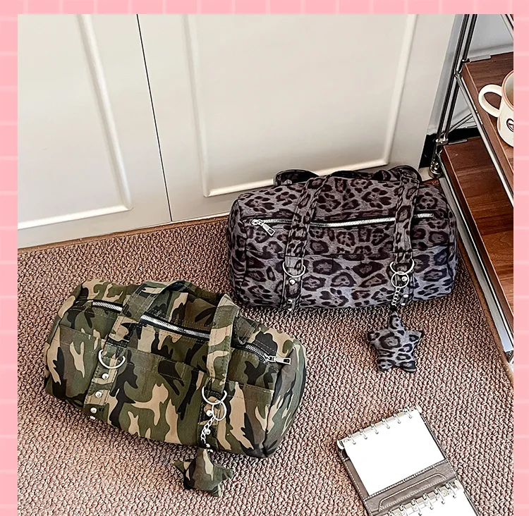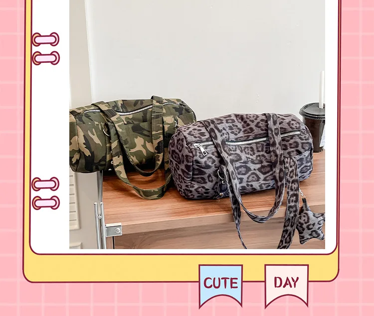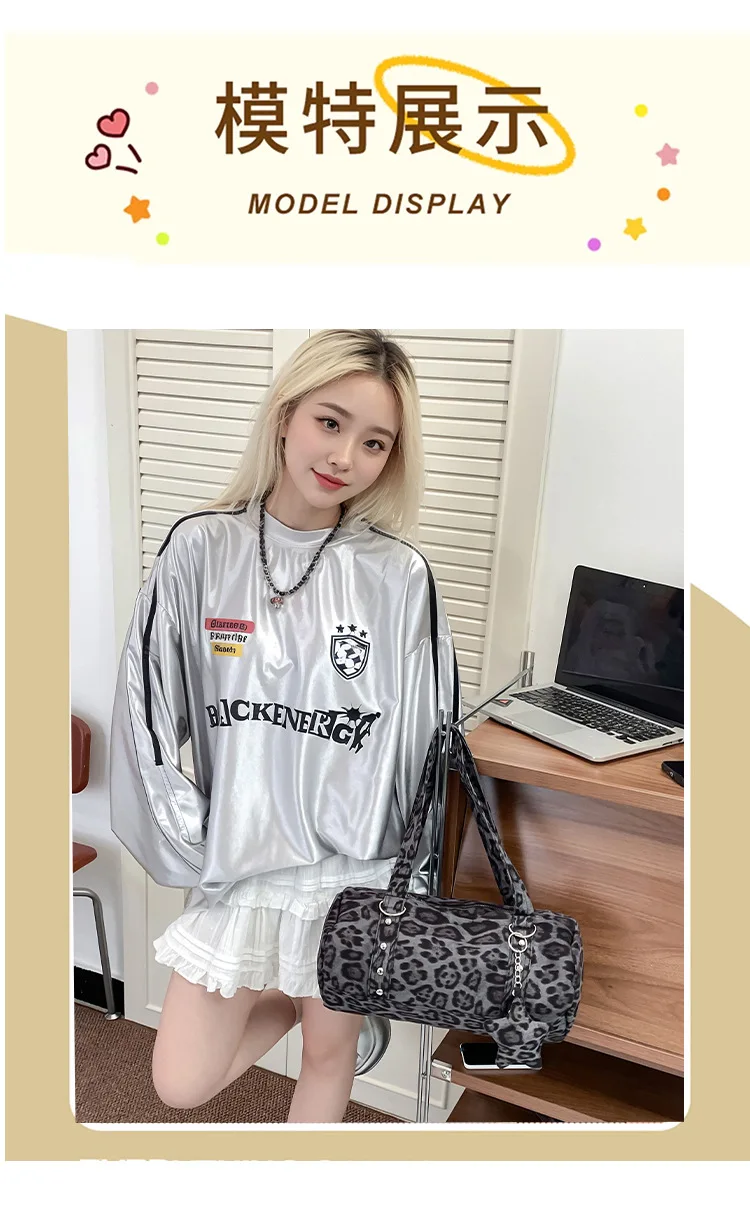 Fashionable Large Capaci oulder Bag Underarm Star Leopard Print Spicy Girl Y2K Single Shoulder Bag Soft Nylon Women’s Handbag