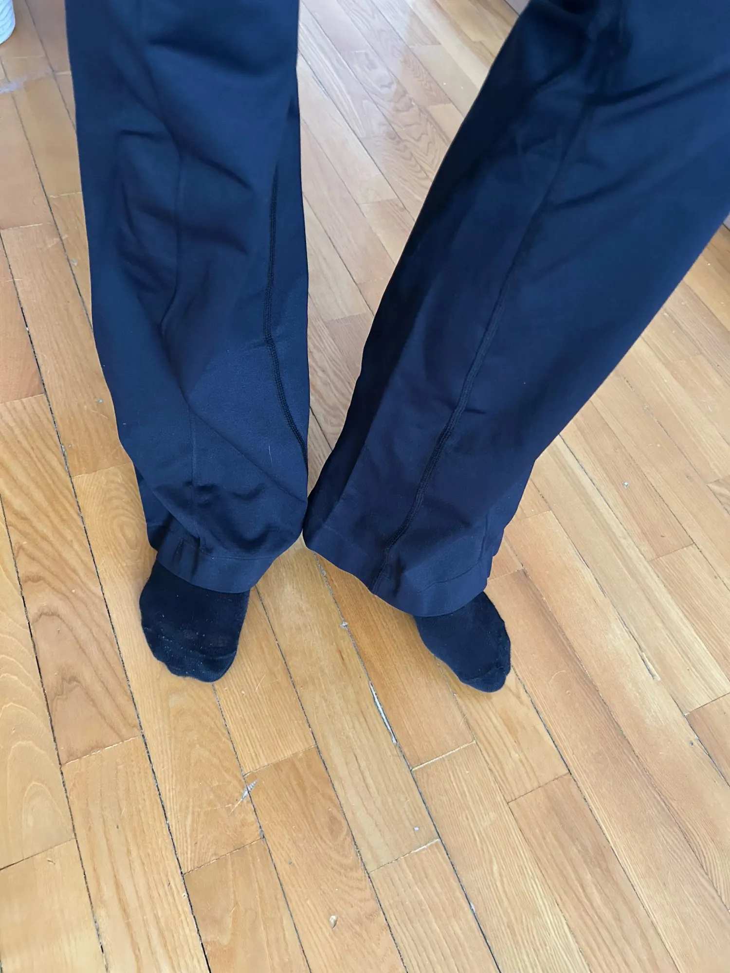 Nice pants. thick material, see-through. Size L fits well at the waist, but the legs could be narrower. For someone 170cm tall, the length is fine.