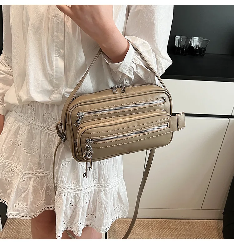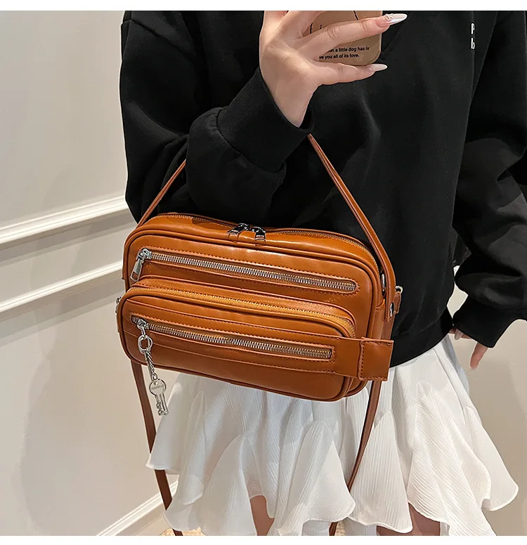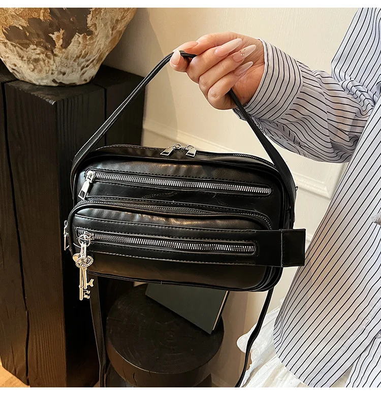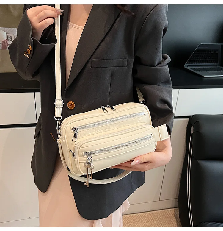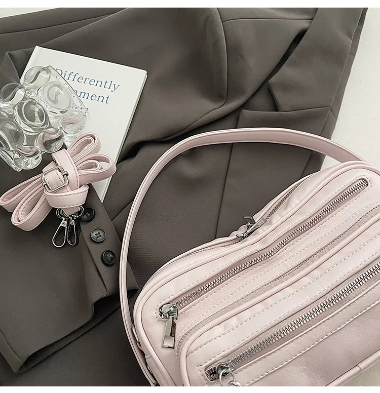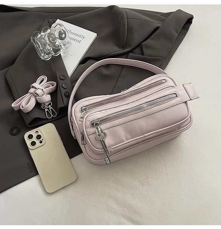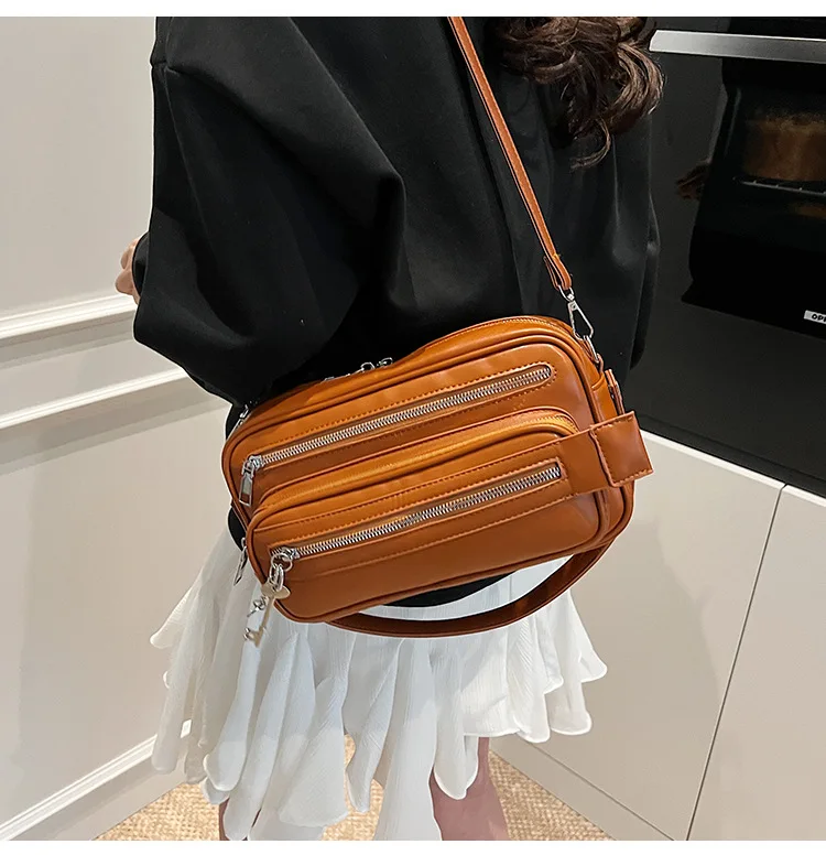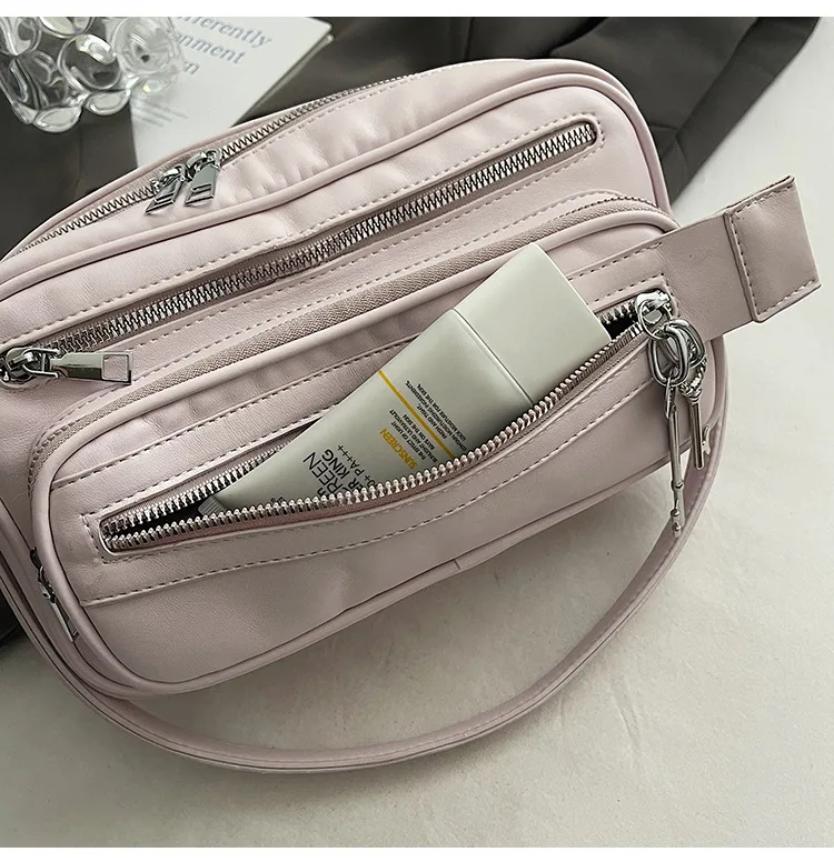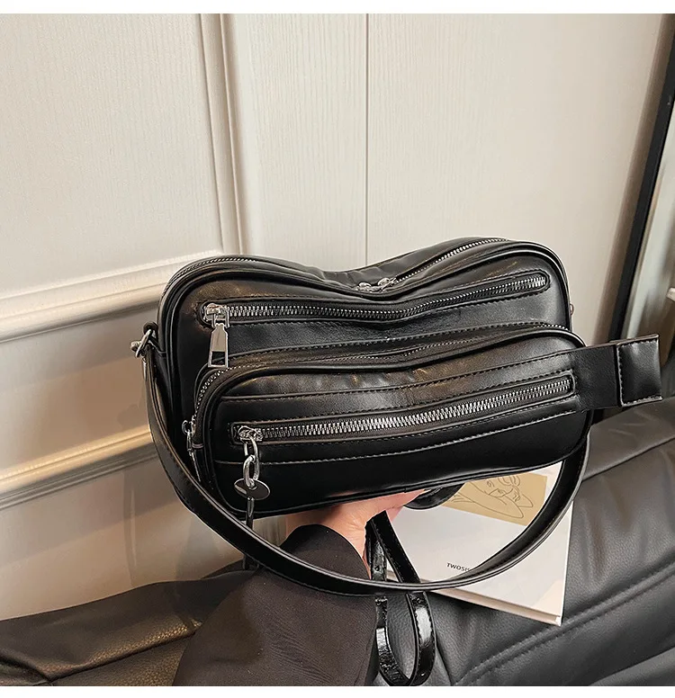 Female New Office Zipper Handbag Casual pu Leather Single Shoulder Bag Women Solid Color Messenger Underarm Bag