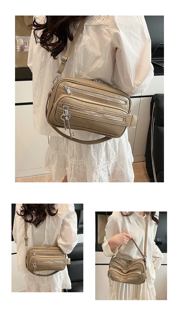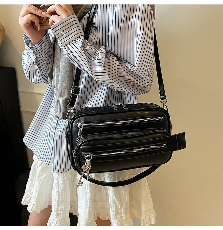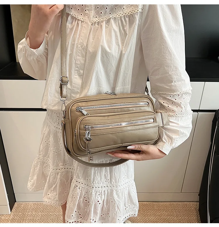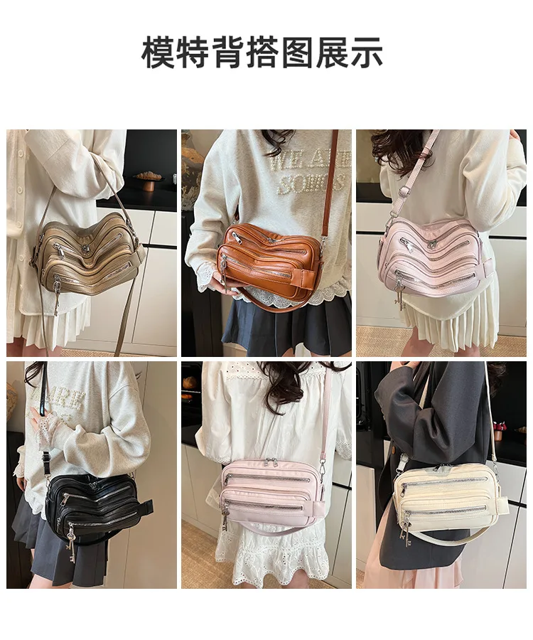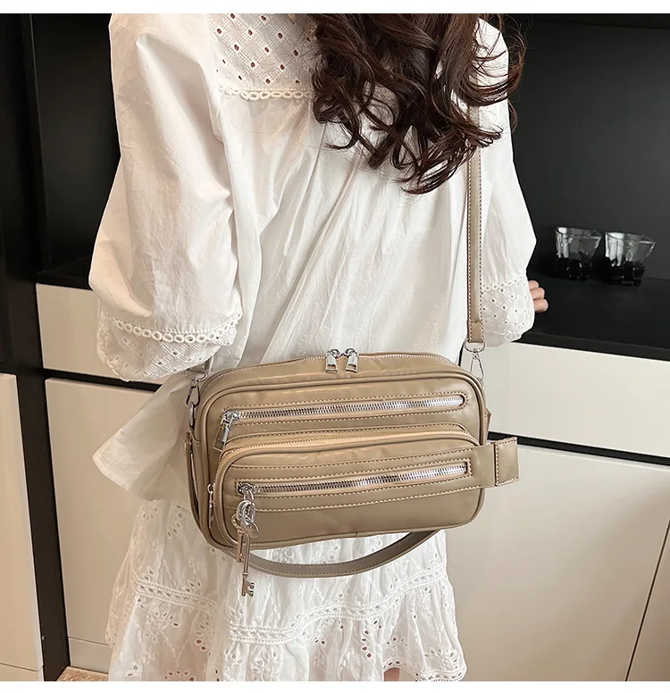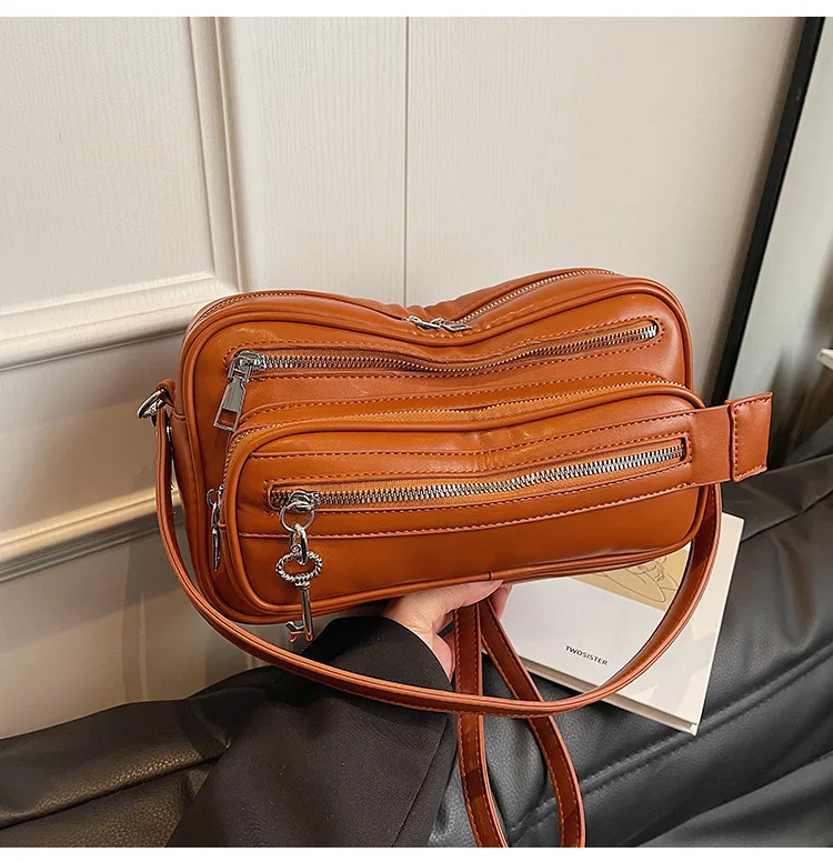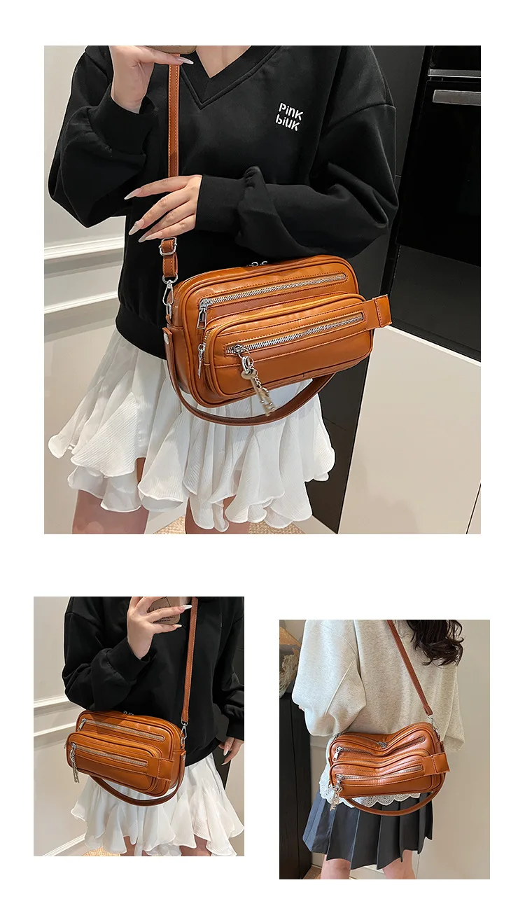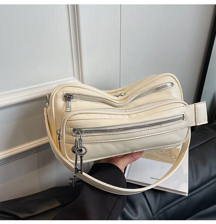 Female New Office Zipper Handbag Casual pu Leather Single Shoulder Bag Women Solid Color Messenger Underarm Bag