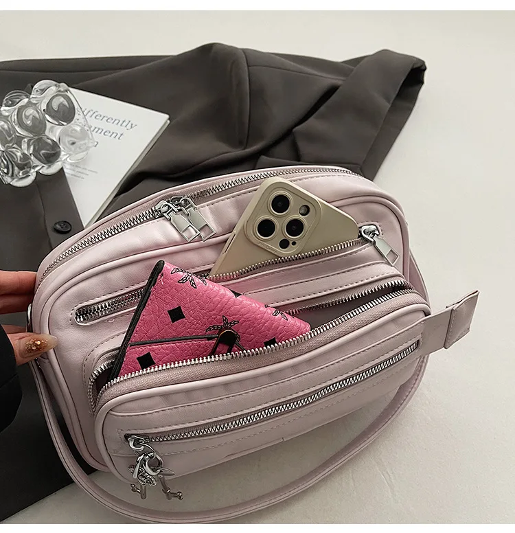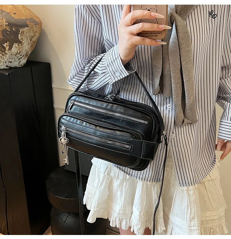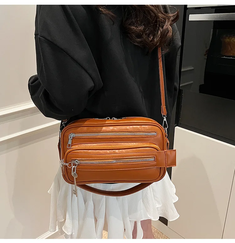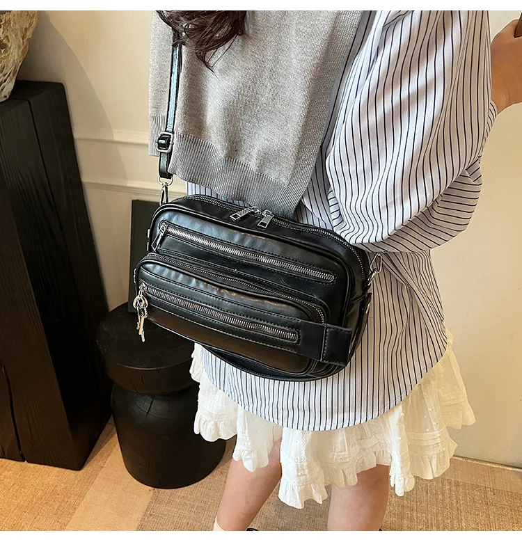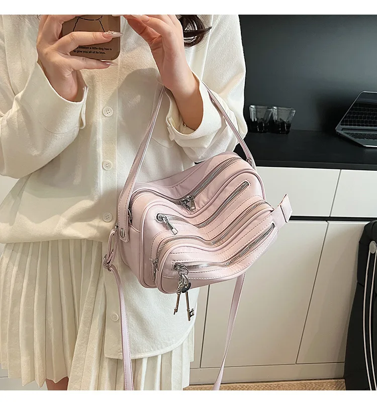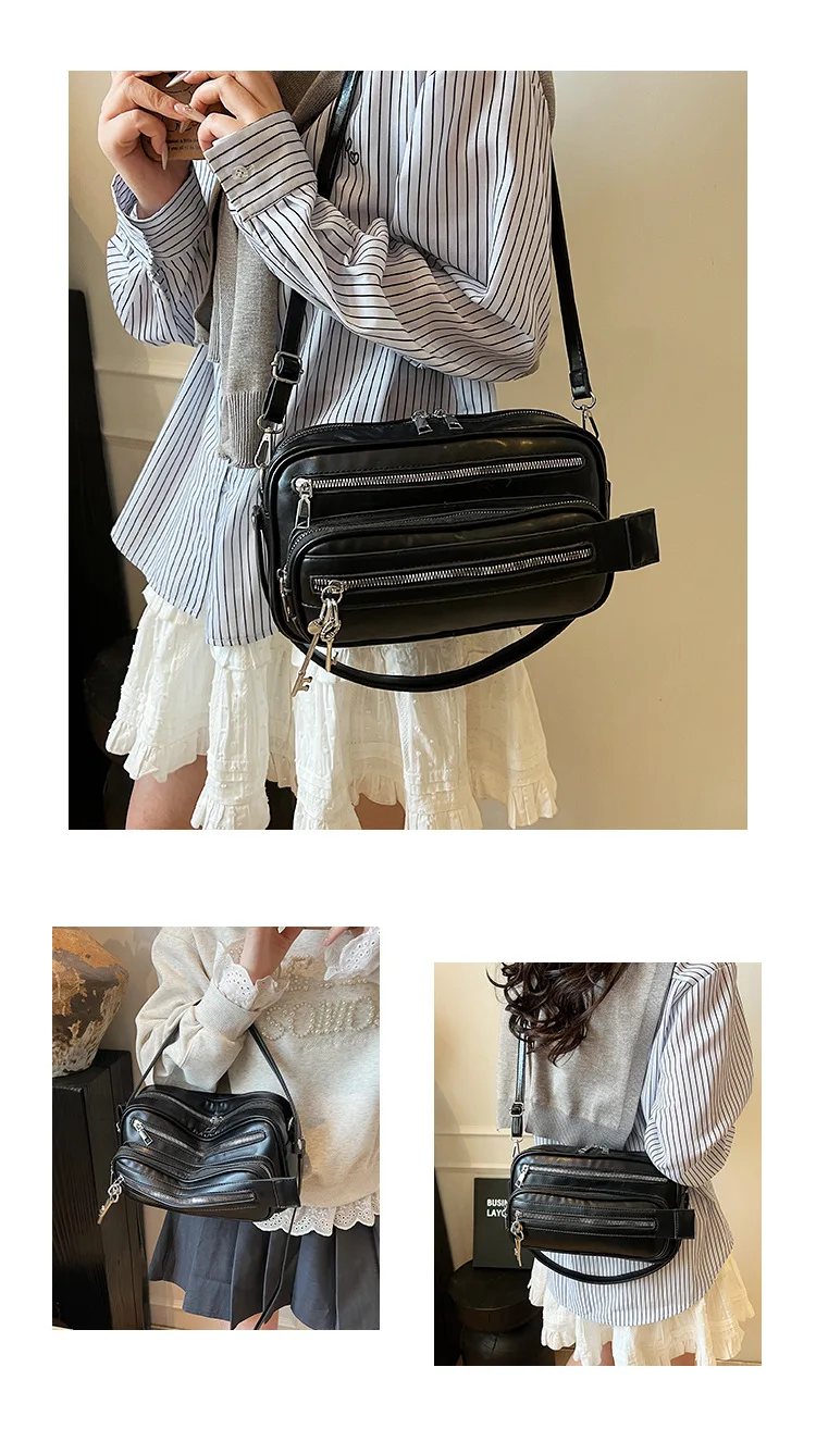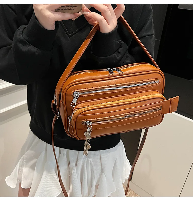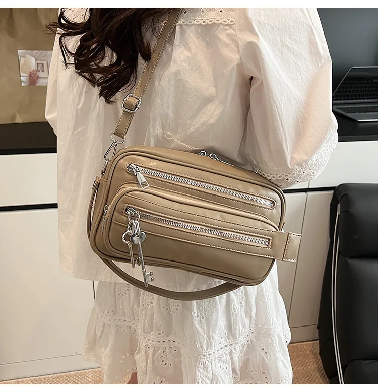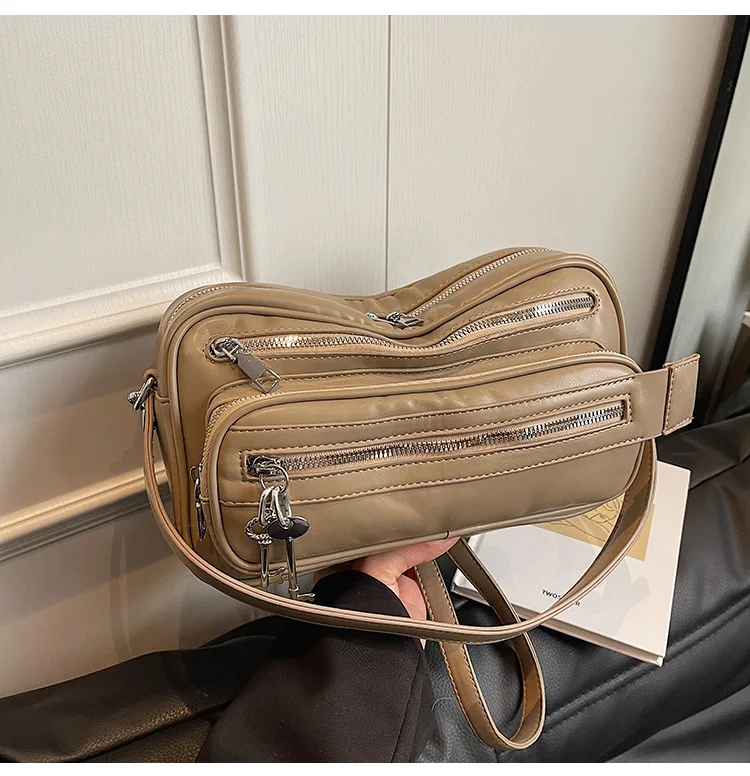 Female New Office Zipper Handbag Casual pu Leather Single Shoulder Bag Women Solid Color Messenger Underarm Bag