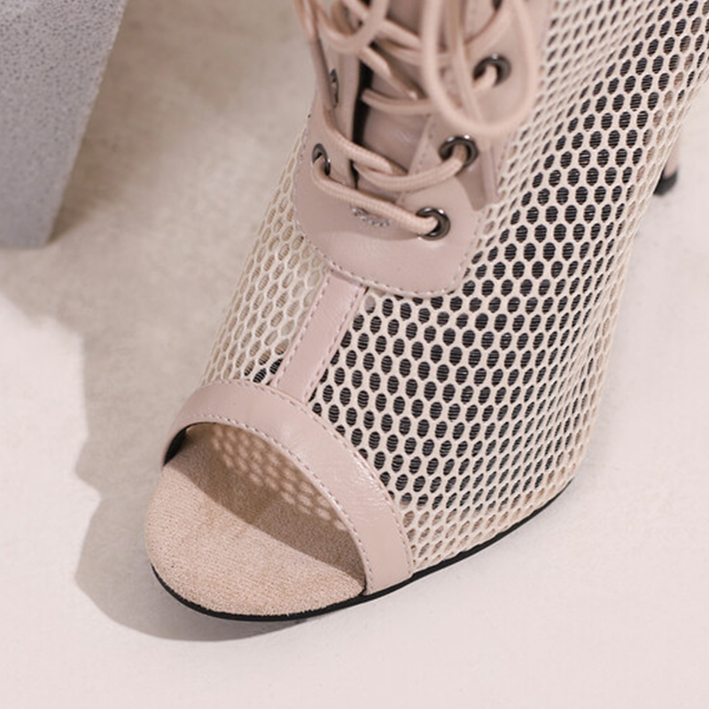 Fish Mouth Open-toed Dance Boots Hollow Sandals Summer Stiletto Mesh Jazz Dancing Sandals Lace-up High-heeled Dance Shoes Women