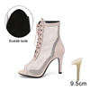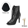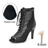 Fish Mouth Open-toed Dance Boots Hollow Sandals Summer Stiletto Mesh Jazz Dancing Sandals Lace-up High-heeled Dance Shoes Women