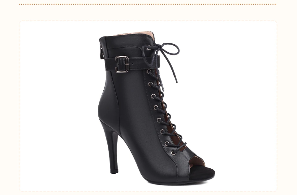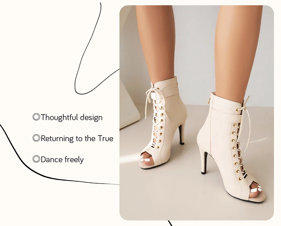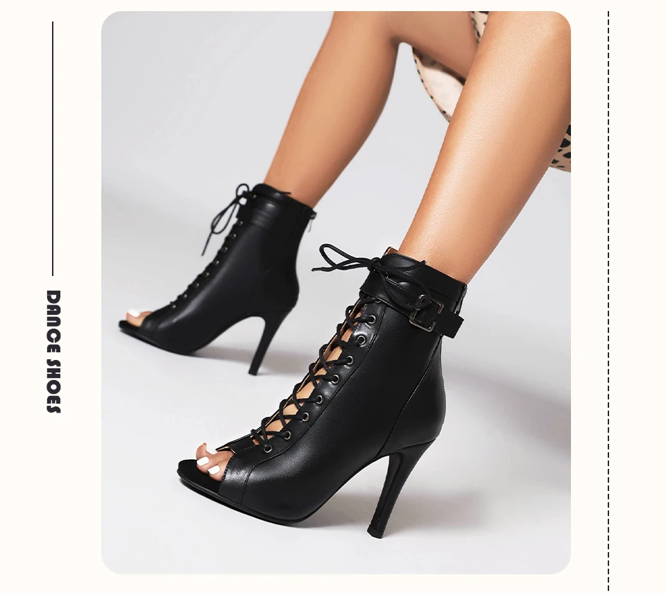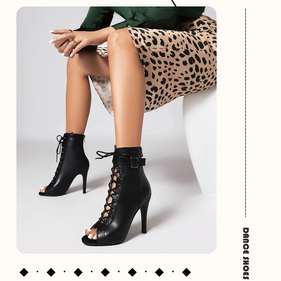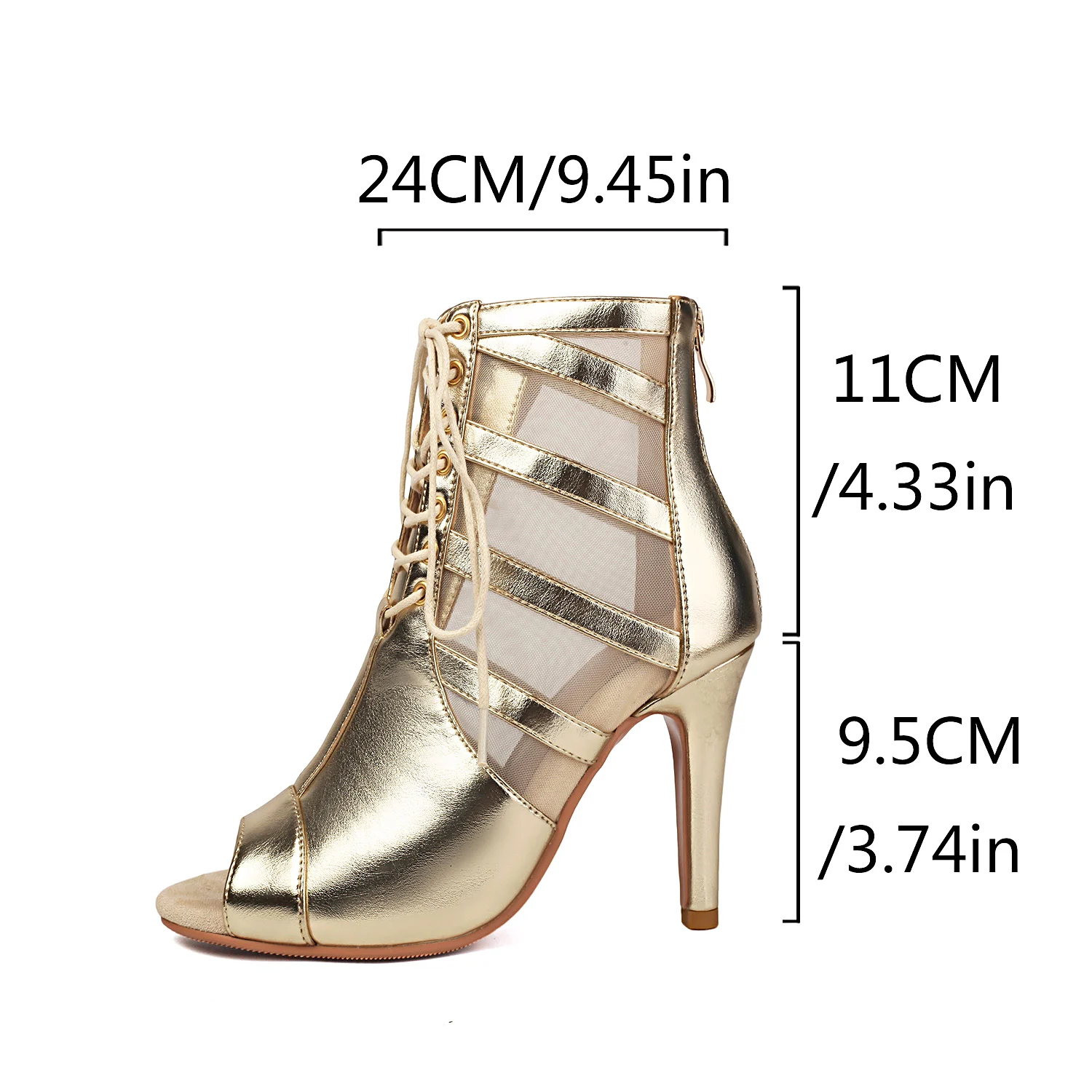 Fish Mouth Sandals Lace-up PU+Mesh Stiletto High-heels Hollow Short Boots Jazz Latin Dance Shoes Open-toed Dance Shoes Women