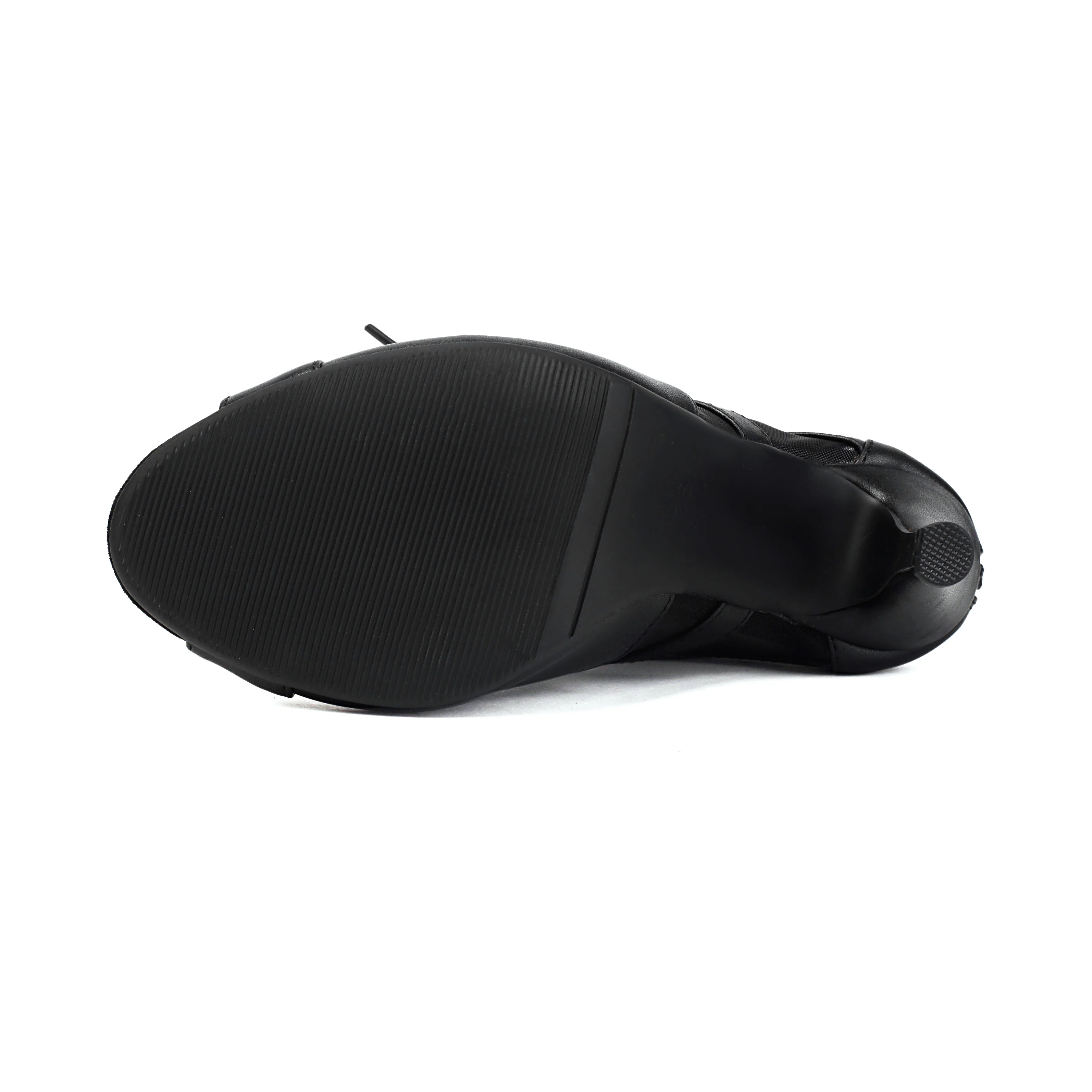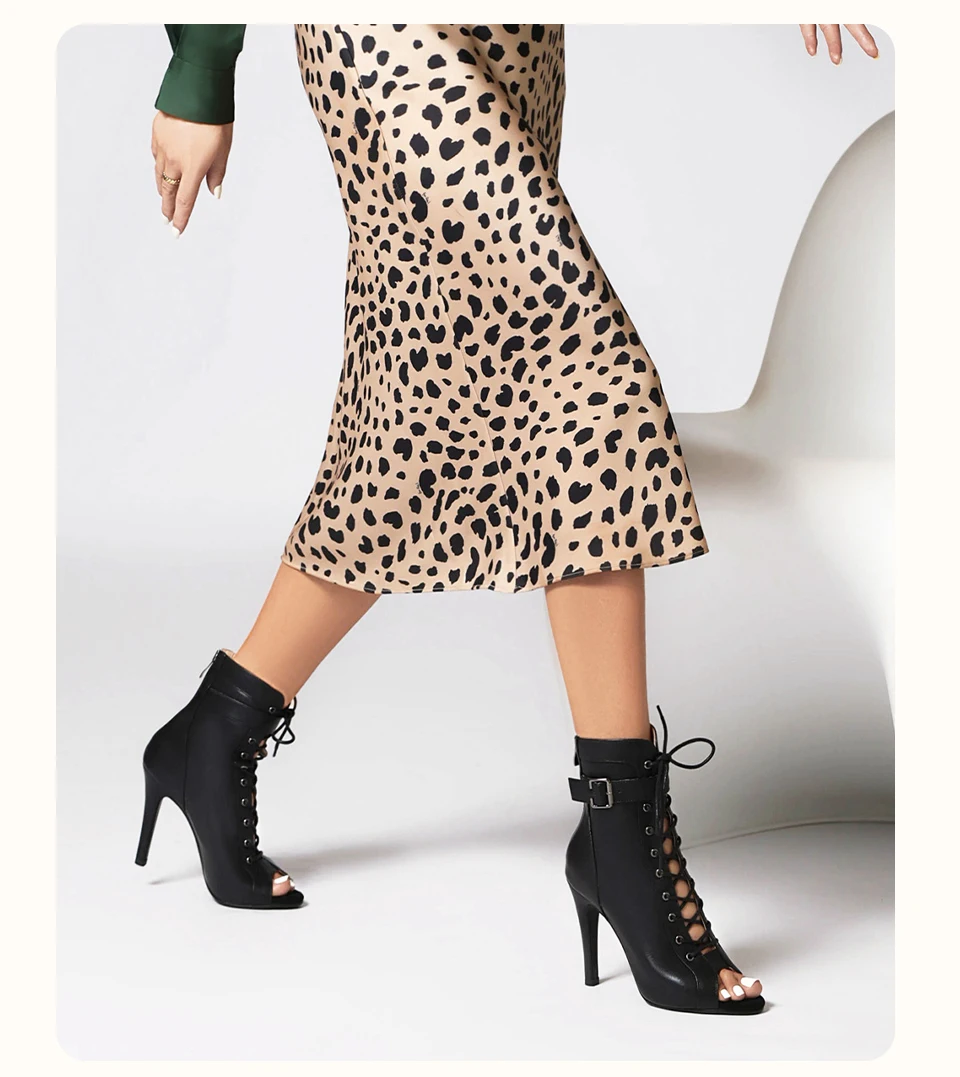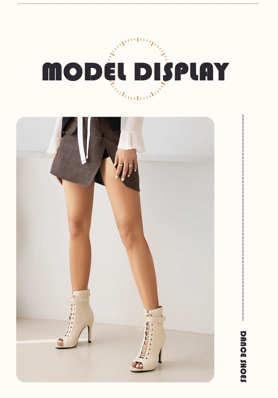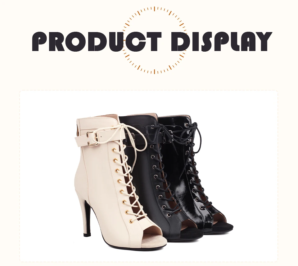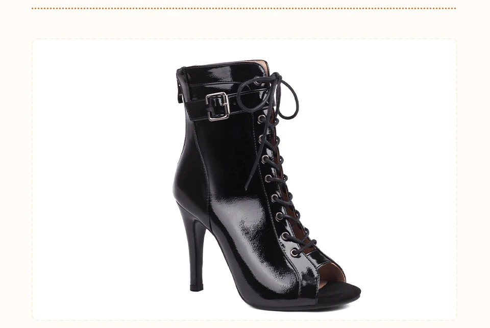 Fish Mouth Sandals Lace-up PU+Mesh Stiletto High-heels Hollow Short Boots Jazz Latin Dance Shoes Open-toed Dance Shoes Women