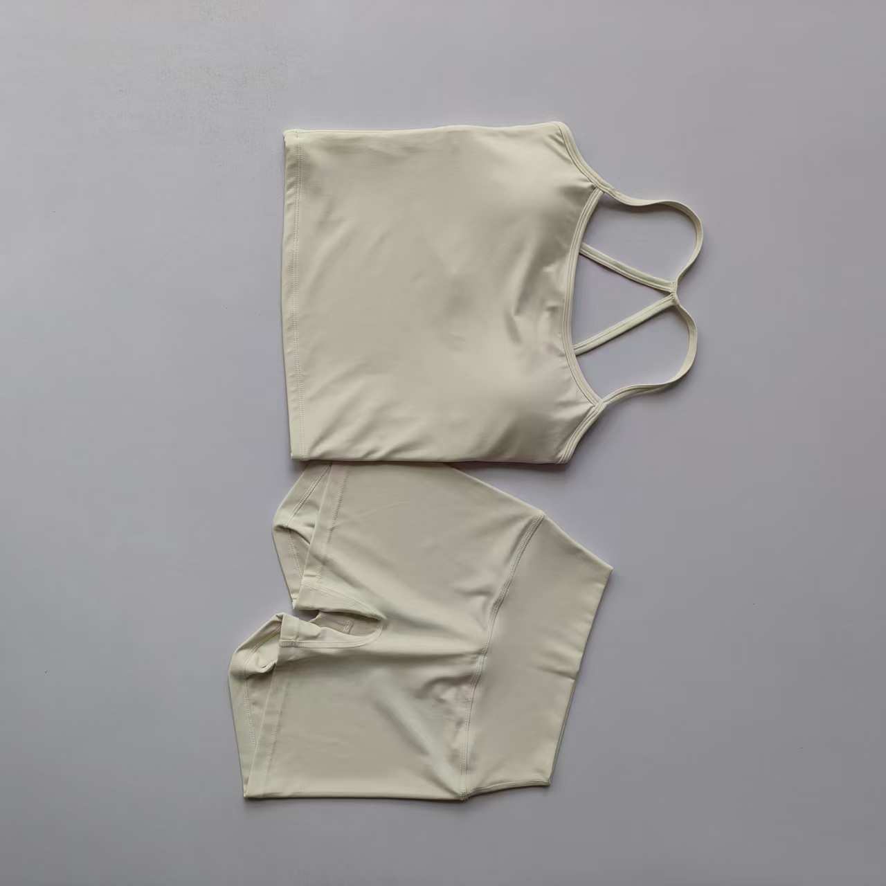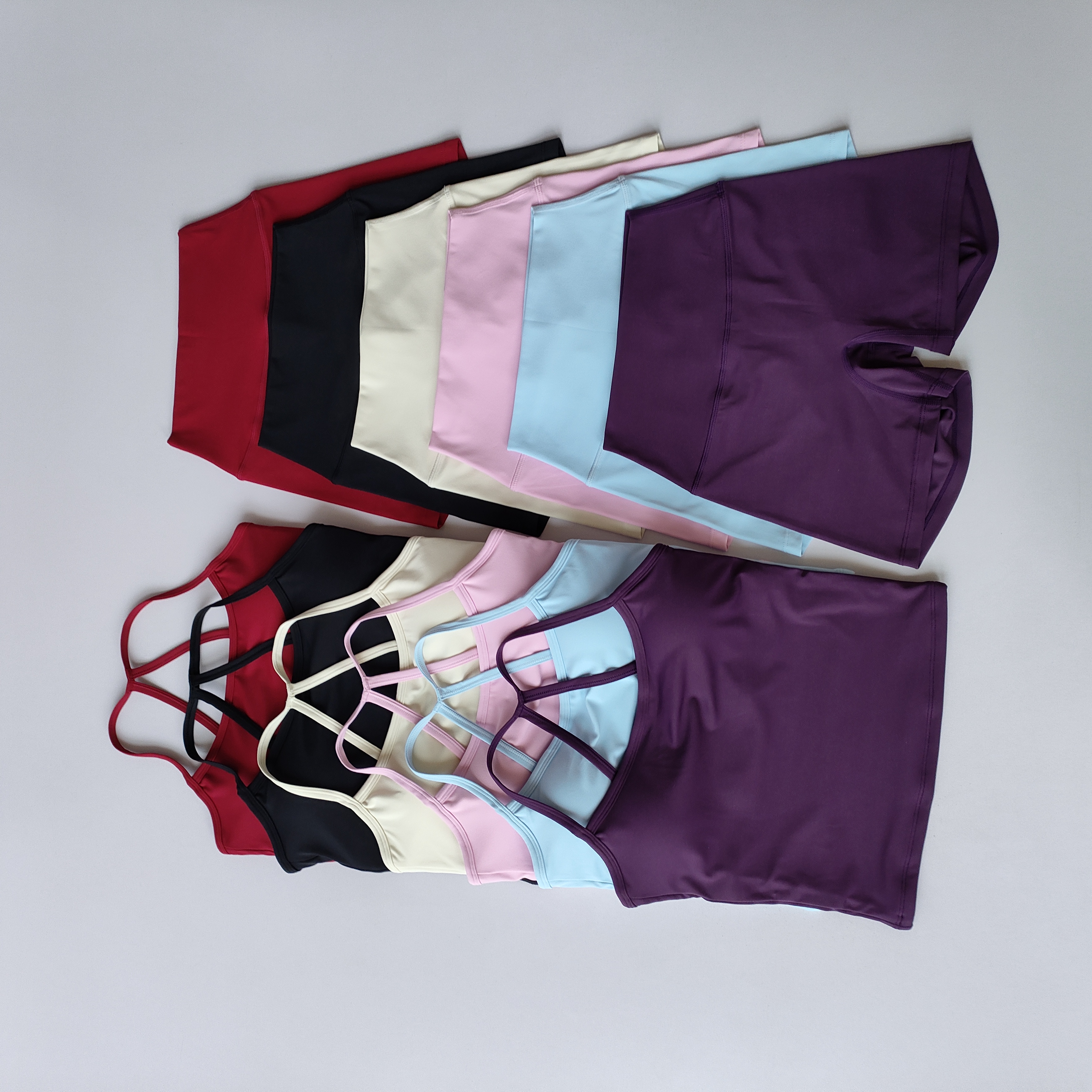 Fitness Gym Set Women 2 Piece Sets Halter Neck Tank Tops High Waist Scrunch Seamless Shorts Sport Suit Sportswear Workout Set