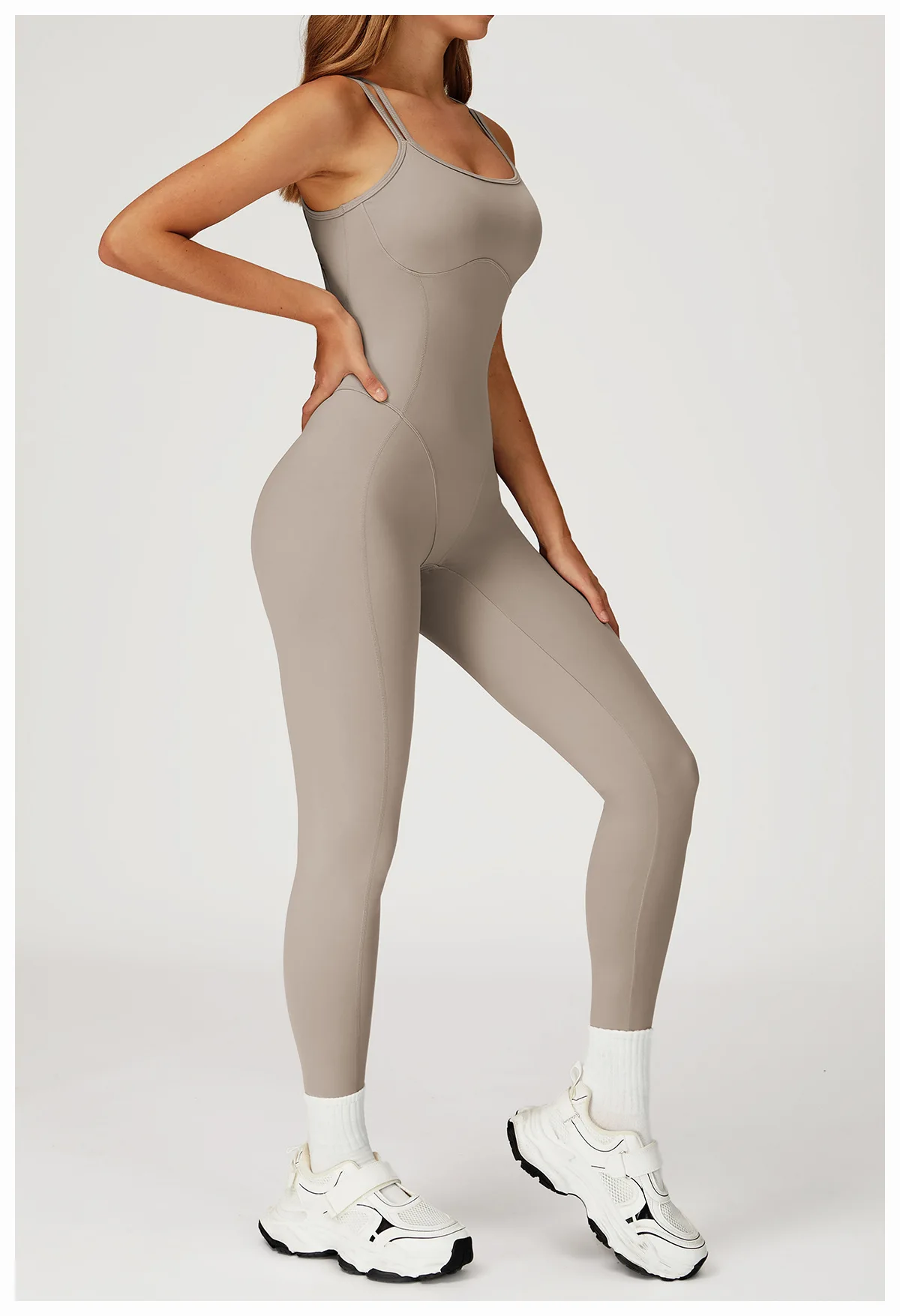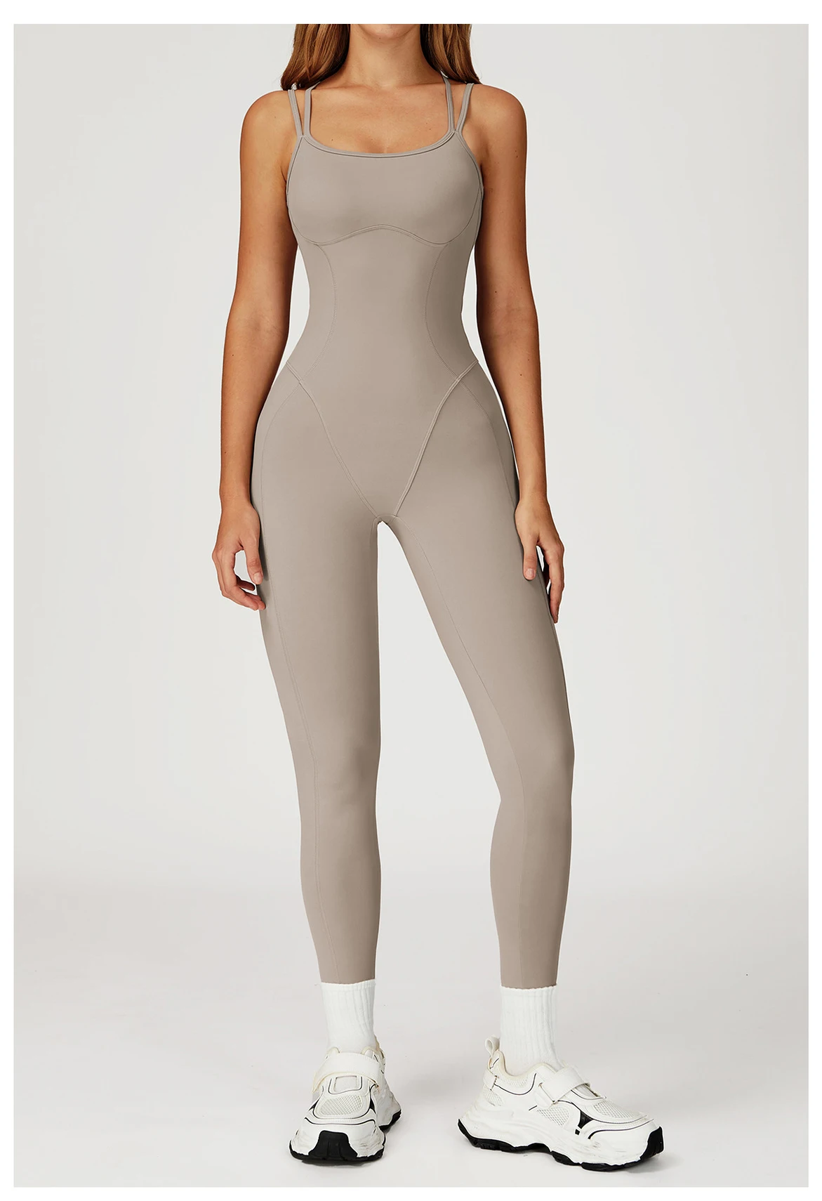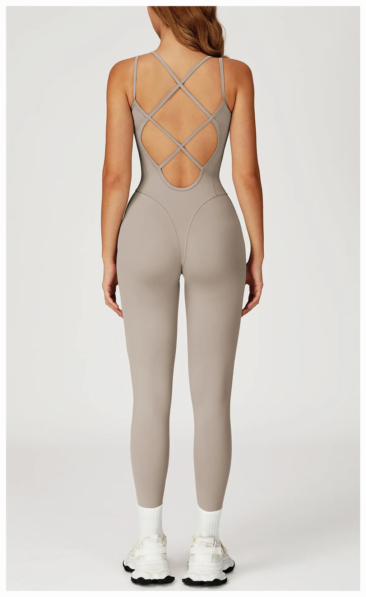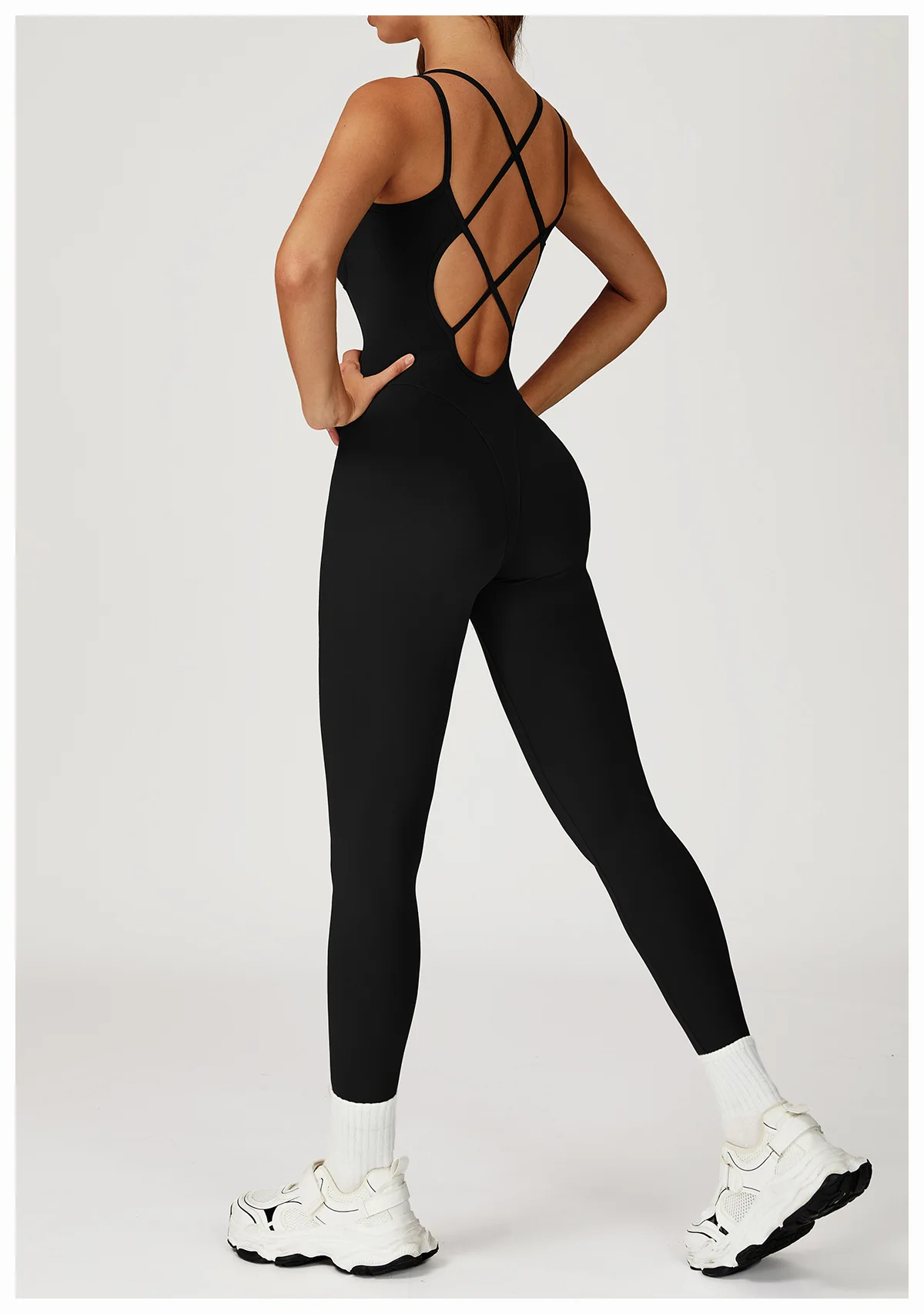Fitness Jumpsuit Gym Workout Playsuit Sexy Cross Back Strap Sports Bodysuits Backless Romper Women Running One Piece Yoga Suit