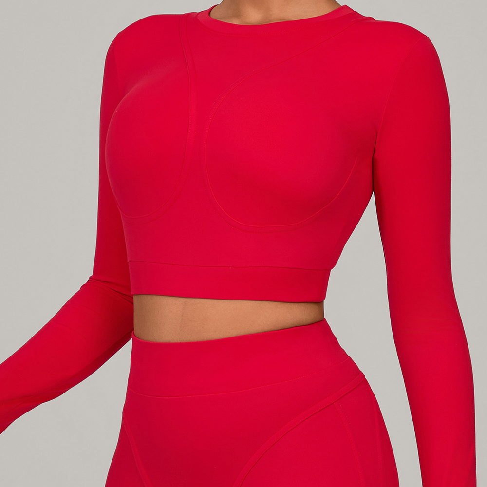 Fixed Chest Pads Yoga Long Sleeved Yoga Clothes Tight Fitting Slimming Sports Top Running Pula Fitness Clothing Tops Yoga Shirts