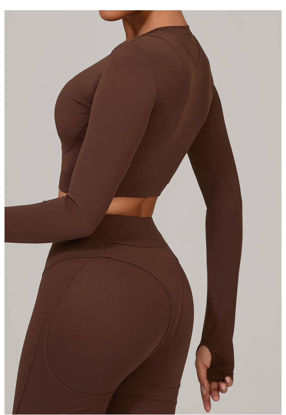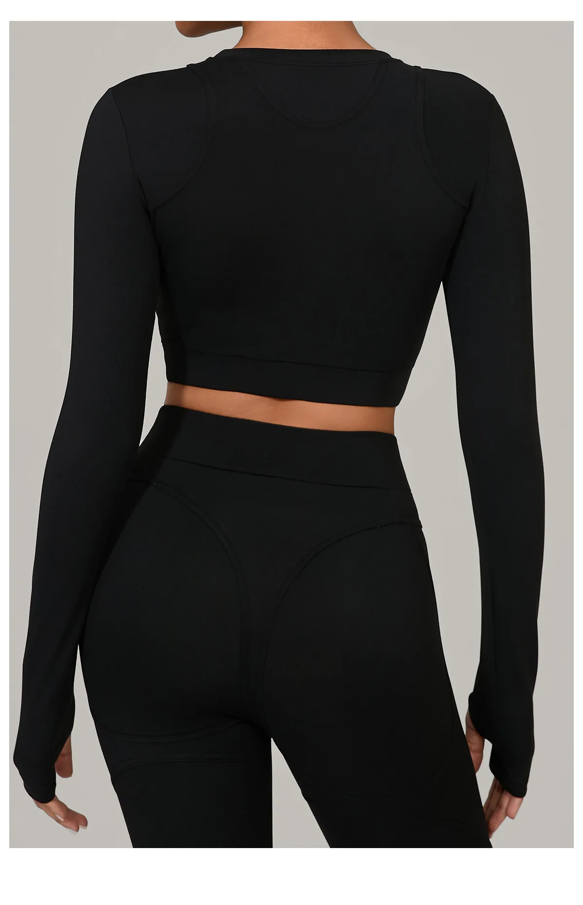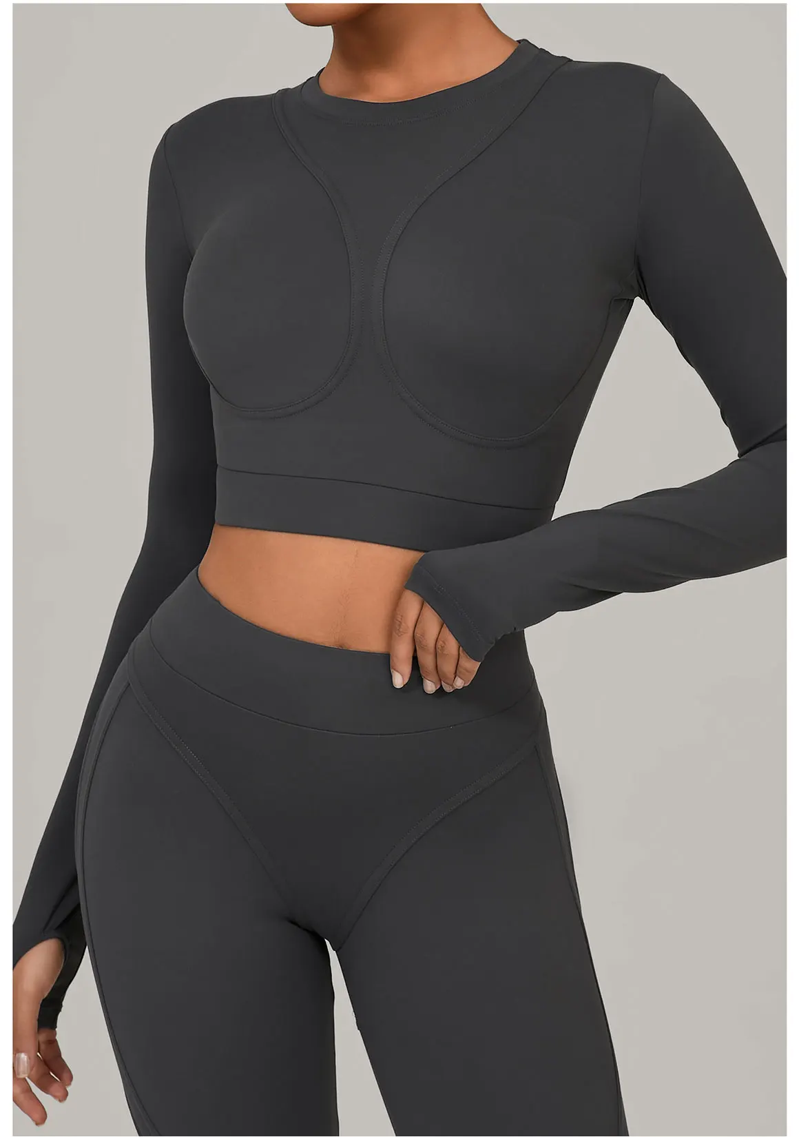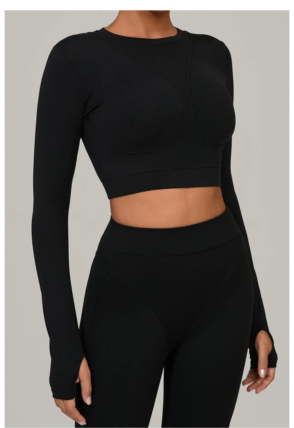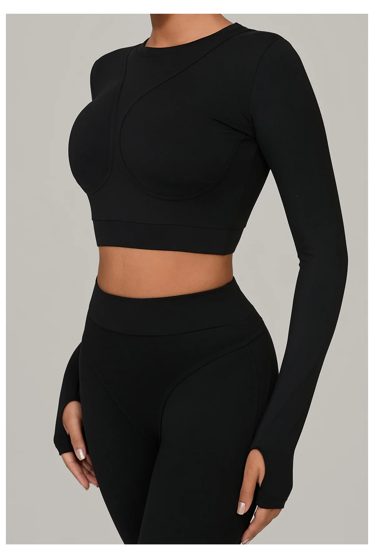 Fixed Chest Pads Yoga Long Sleeved Yoga Clothes Tight Fitting Slimming Sports Top Running Pula Fitness Clothing Tops Yoga Shirts