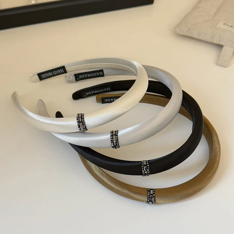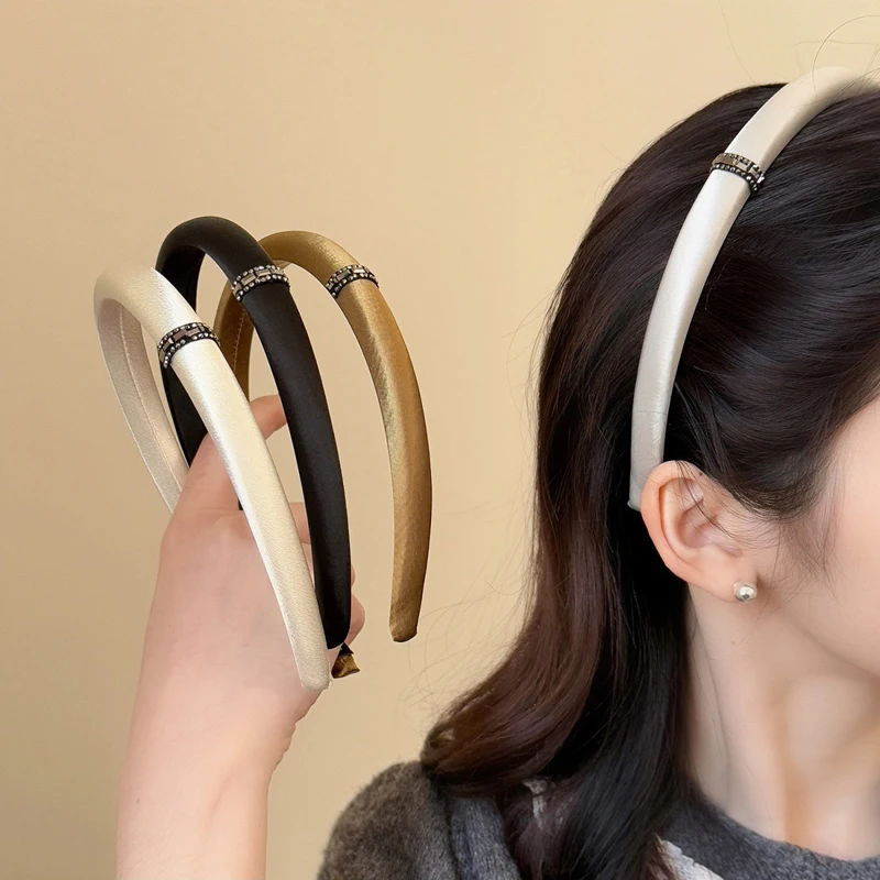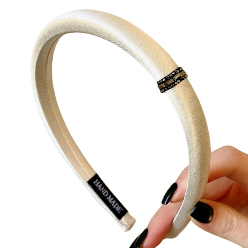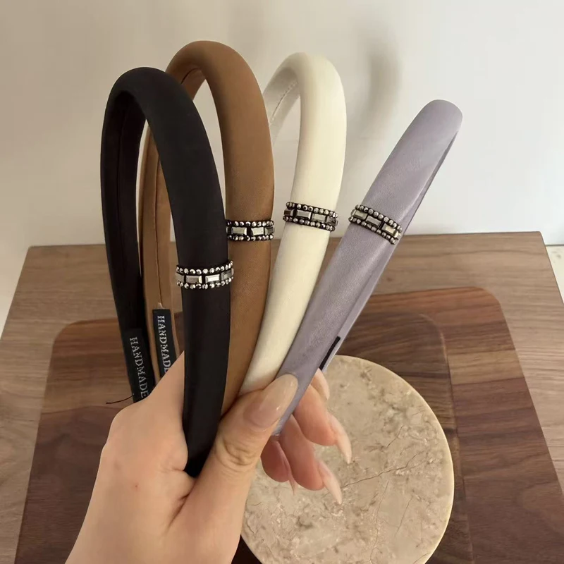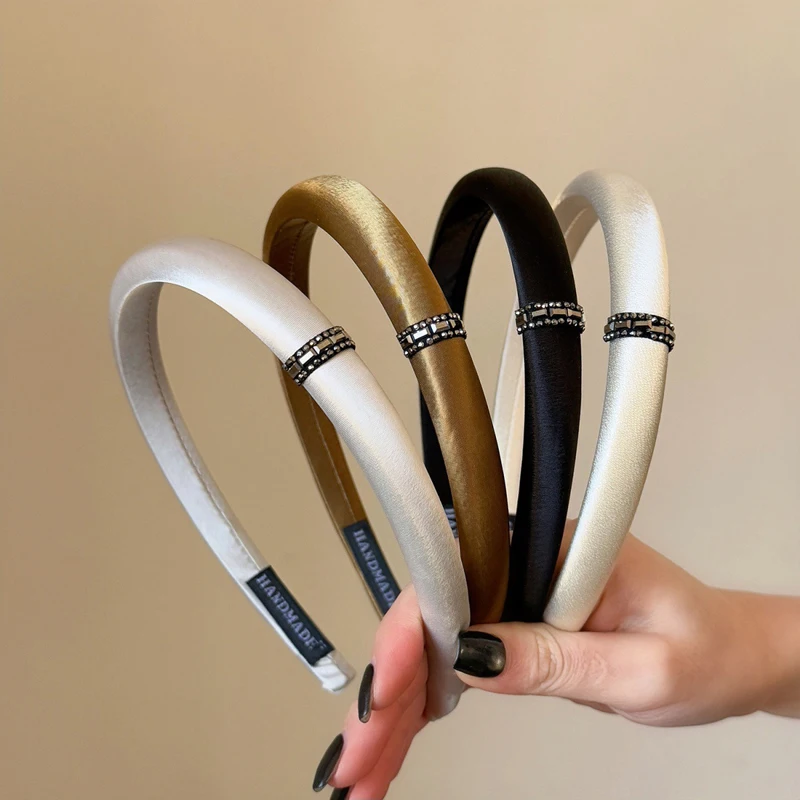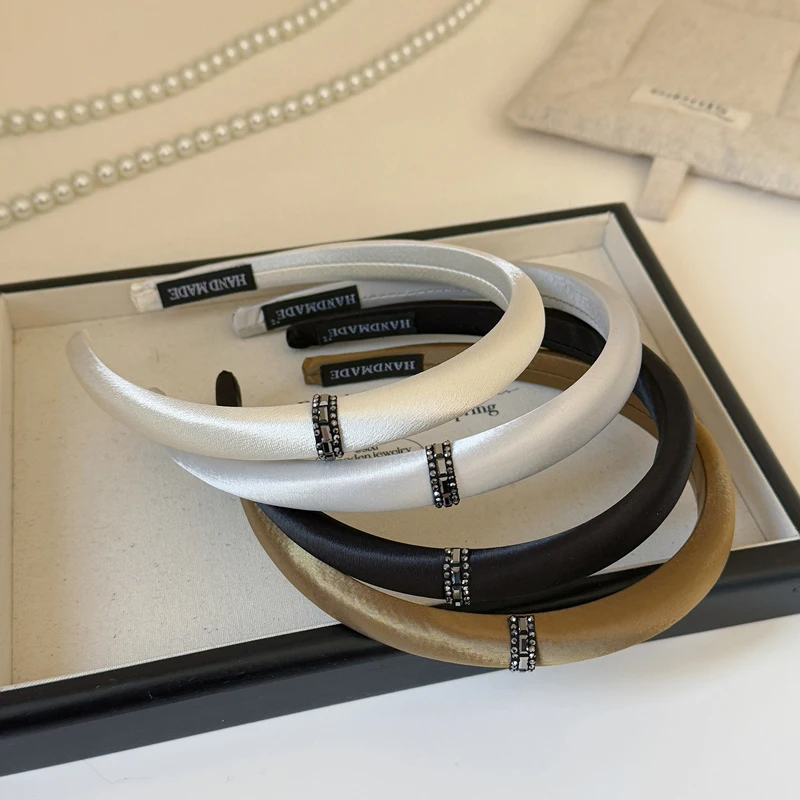 French Elegant Satin Hair Hoop Women Girls Luxury Inlay Zircon Headband Non-Slip Headwear Exquisite Turban Hair Accessories