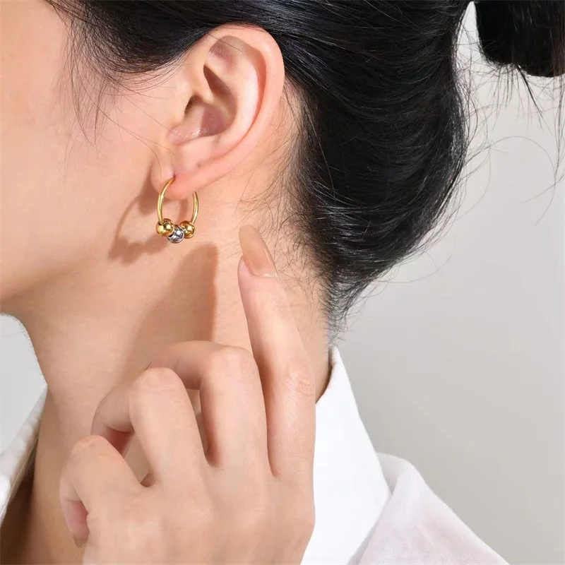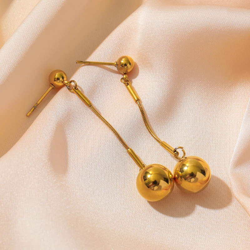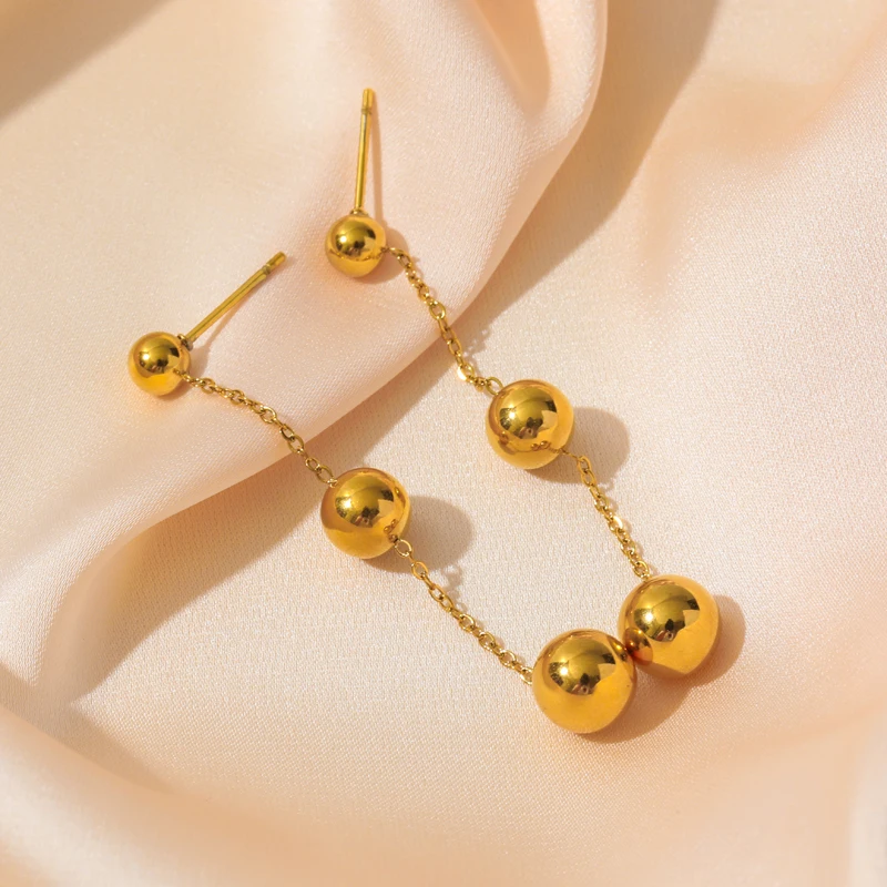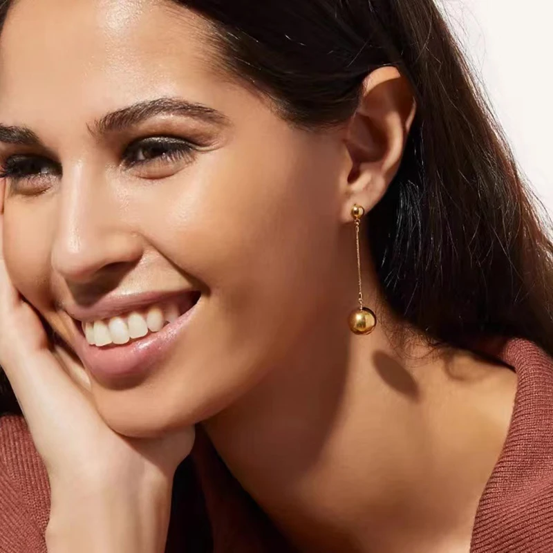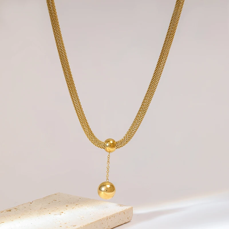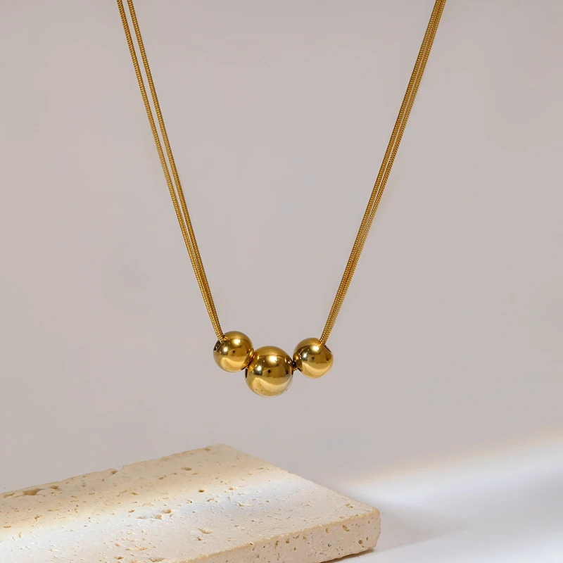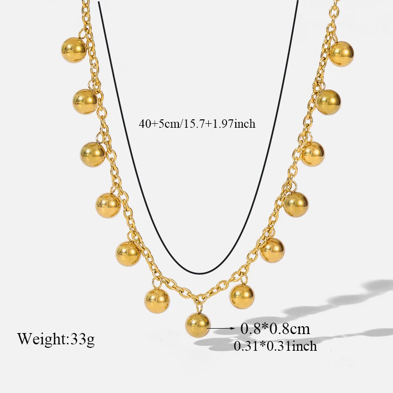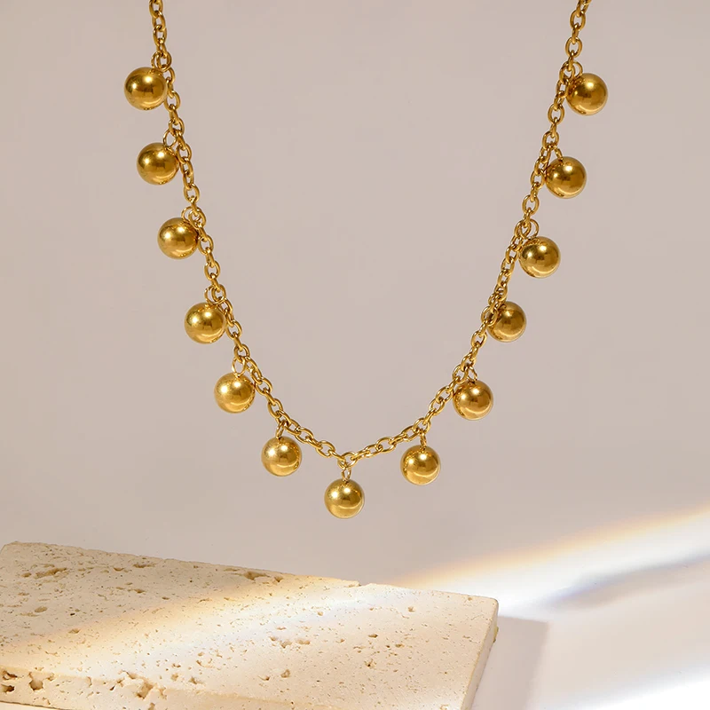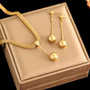 GANEMLY 316L Stainless Steel Beads Balls Necklace Earrings Set For Women Fashion Waterproof Jewelry Set Lady Gift Party collier