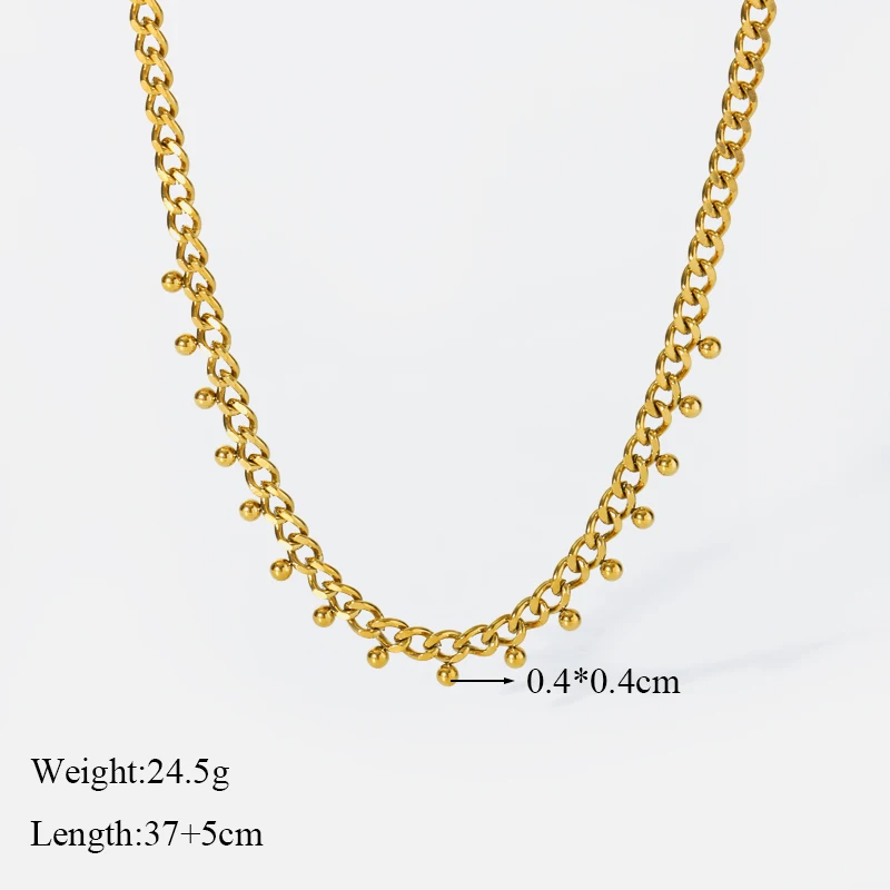 GANEMLY 316L Stainless Steel Beads Link Chain Necklace For Women Trendy 18K Gold Plated Neck Chain Waterproof Jewelry Lady Gift