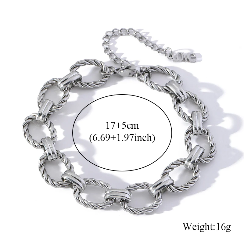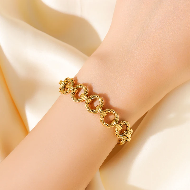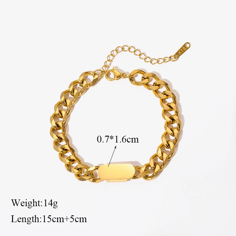GANEMLY 316L Stainless Steel Chunky Gold Plated Bracelet For Women Men Waterproof Wrist Chain Oval Bangles Minimalist Jewelry