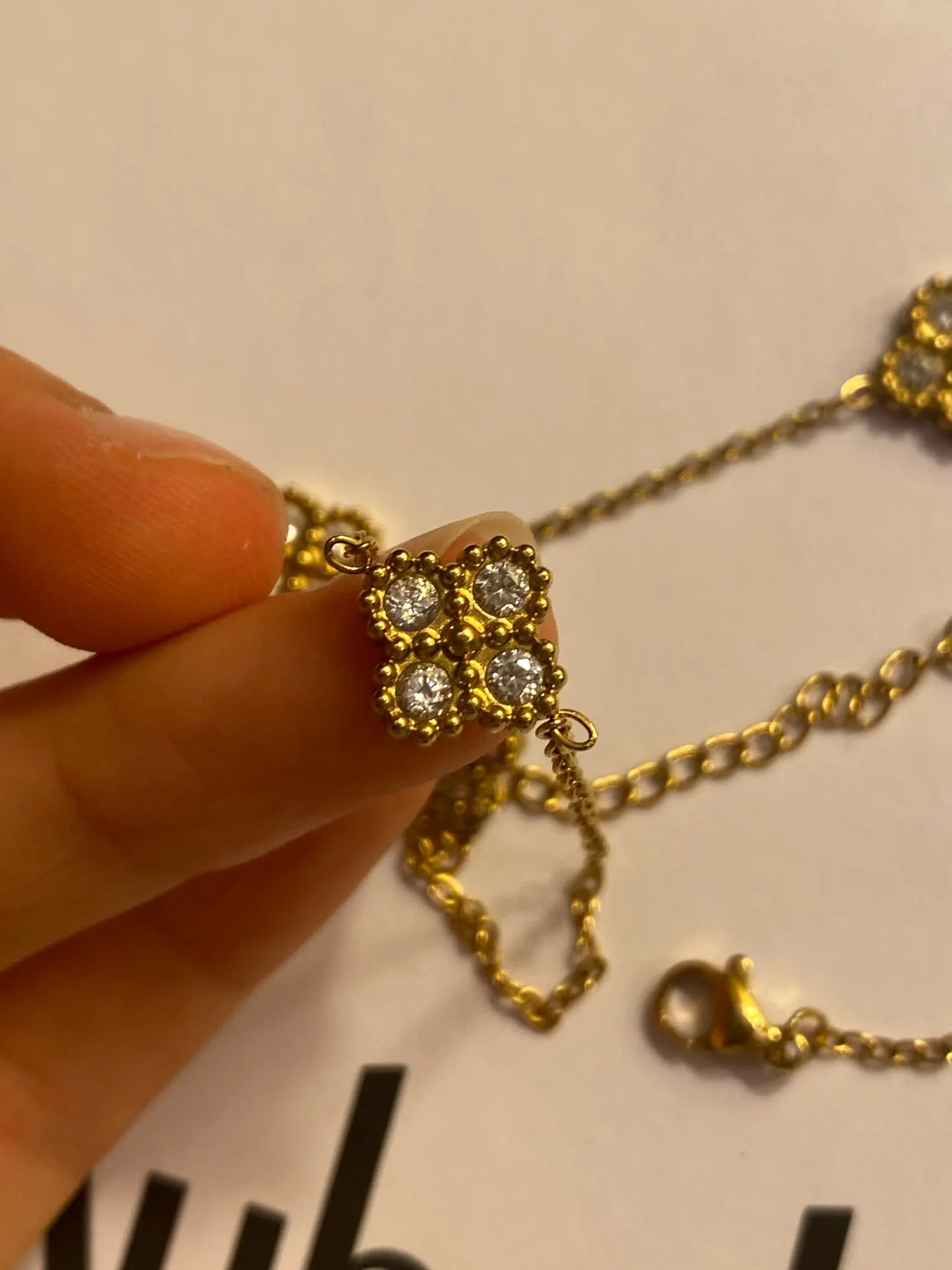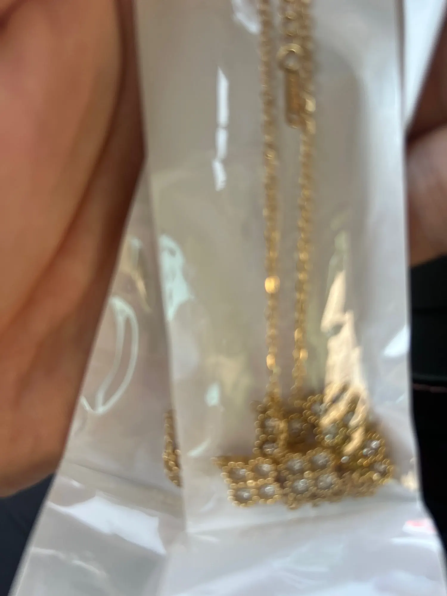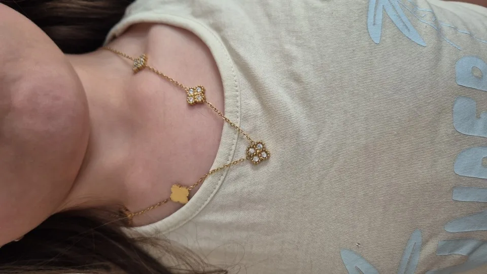 This necklace is so beautiful! I always wear it and it is perfect for layering. It looks just like the van cleef necklace too.