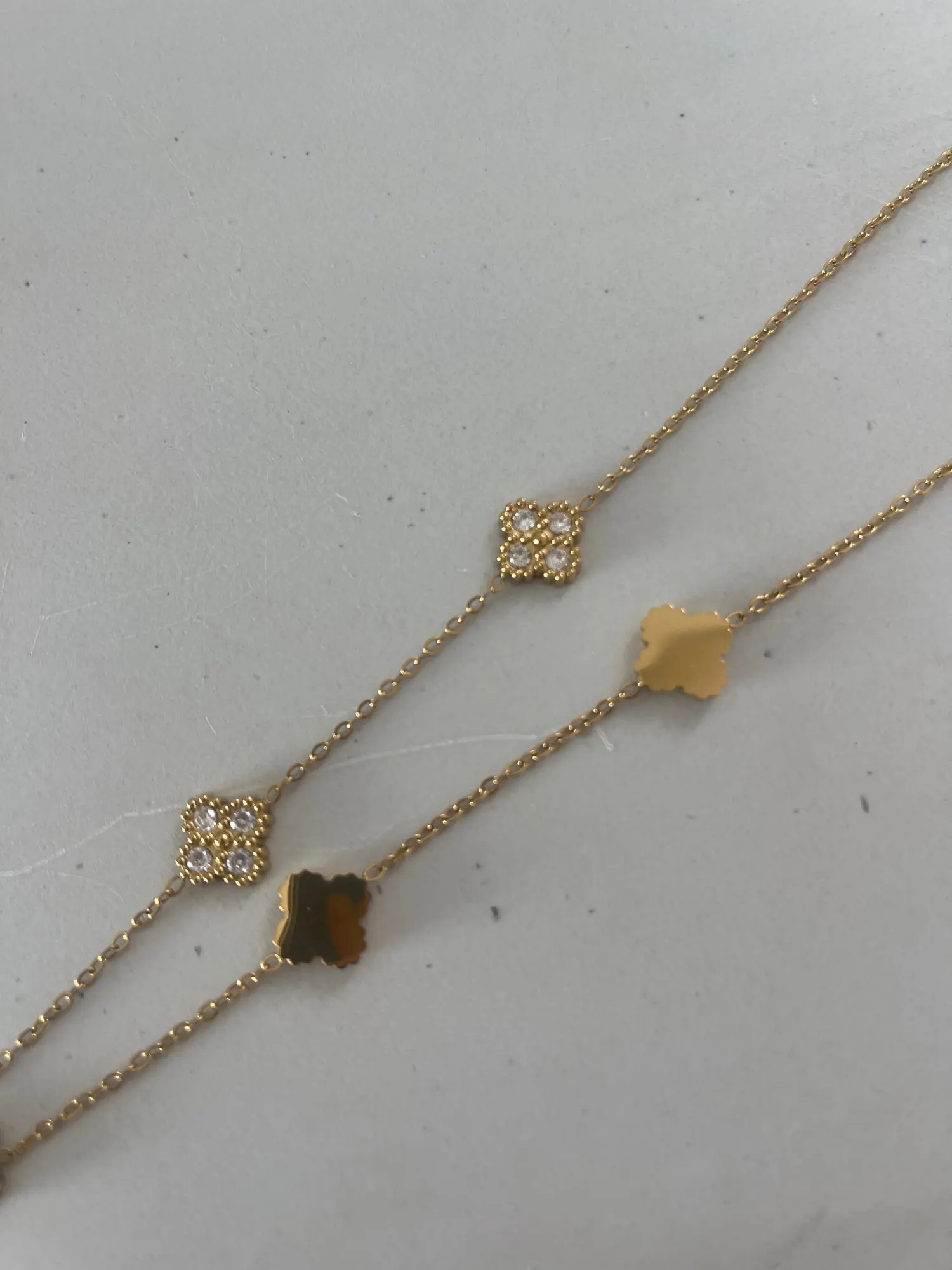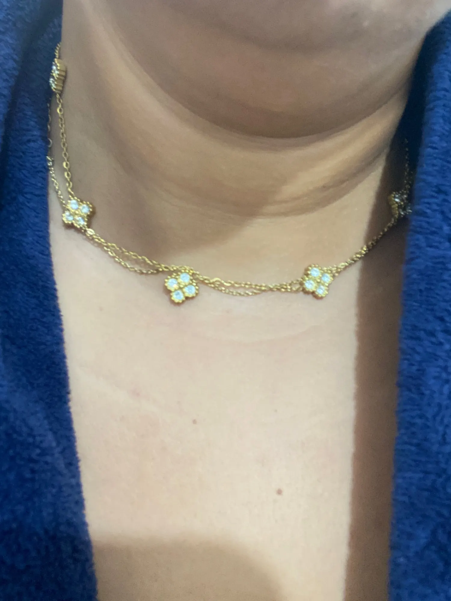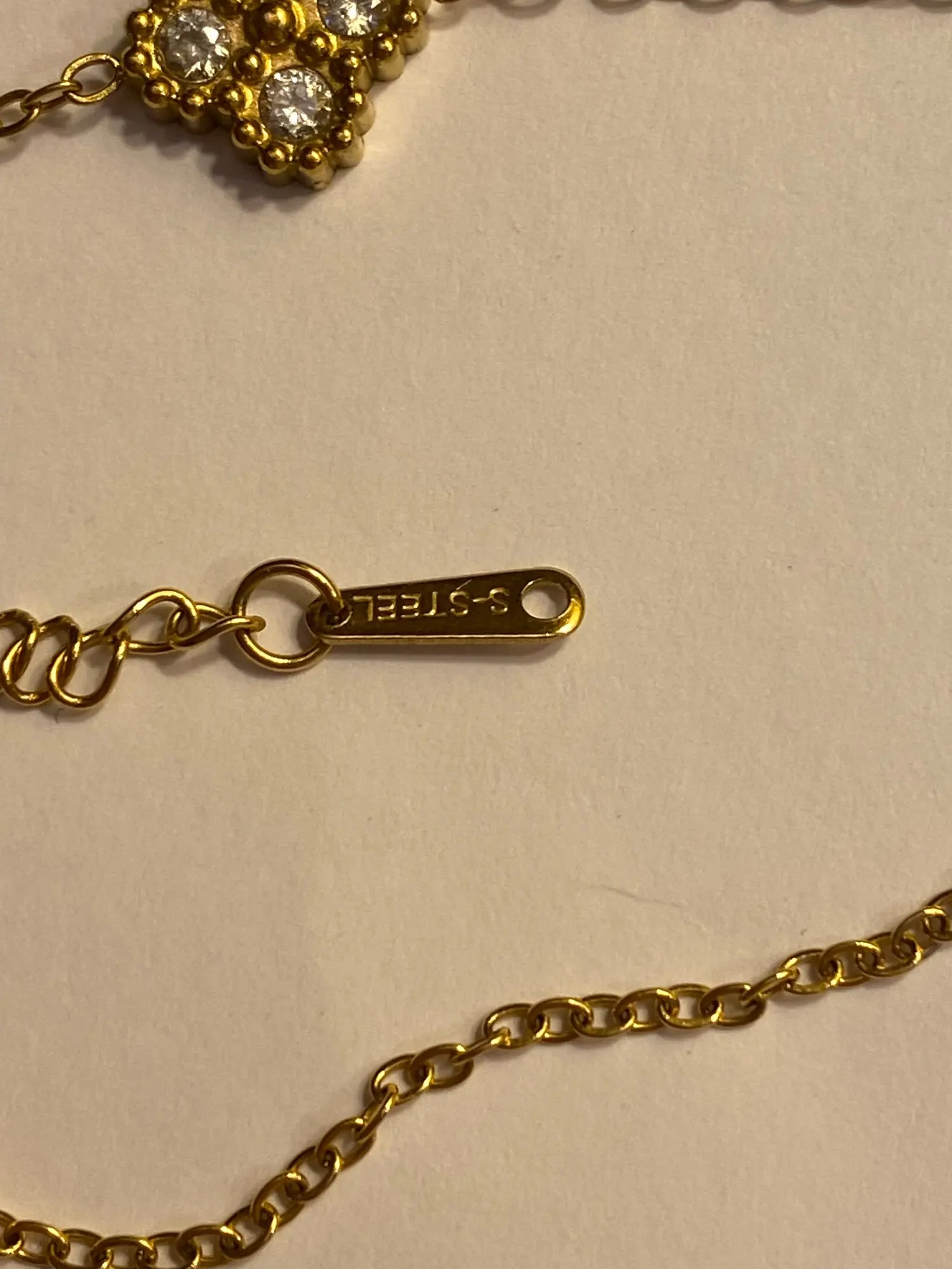 This necklace is so beautiful! I always wear it and it is perfect for layering. It looks just like the van cleef necklace too.