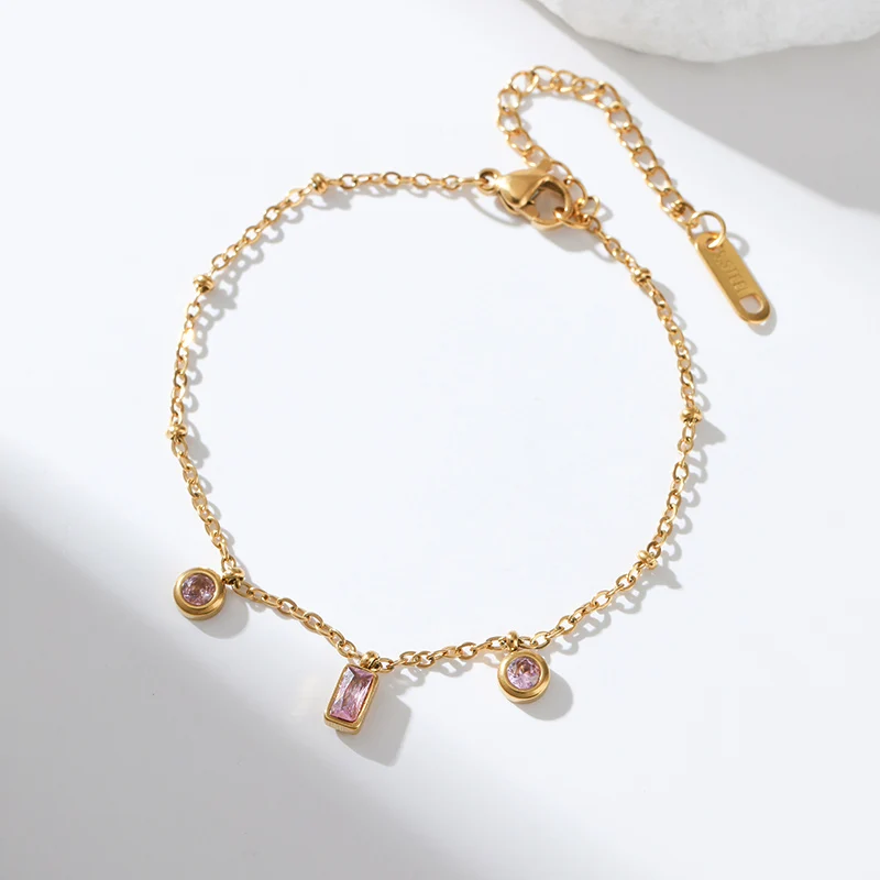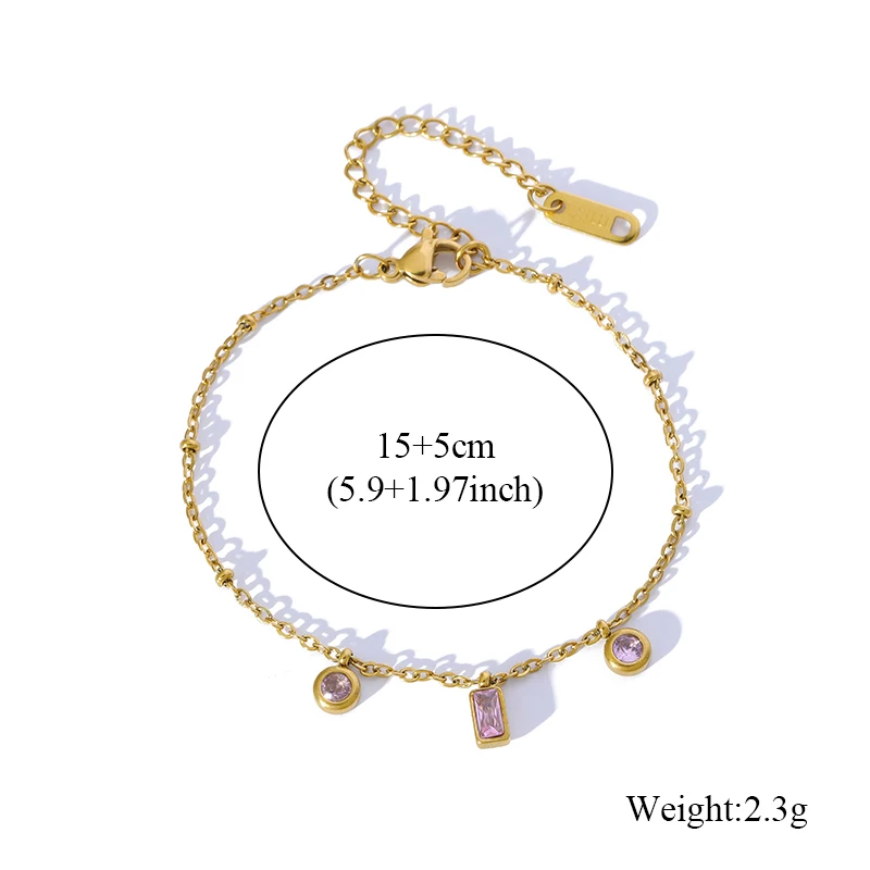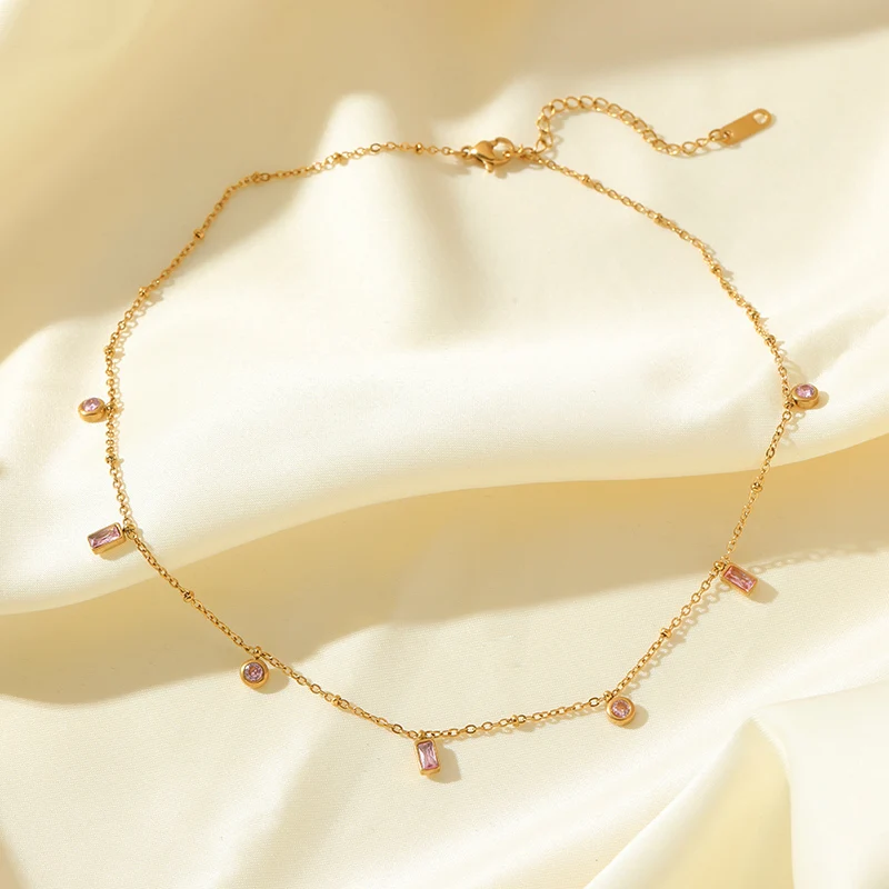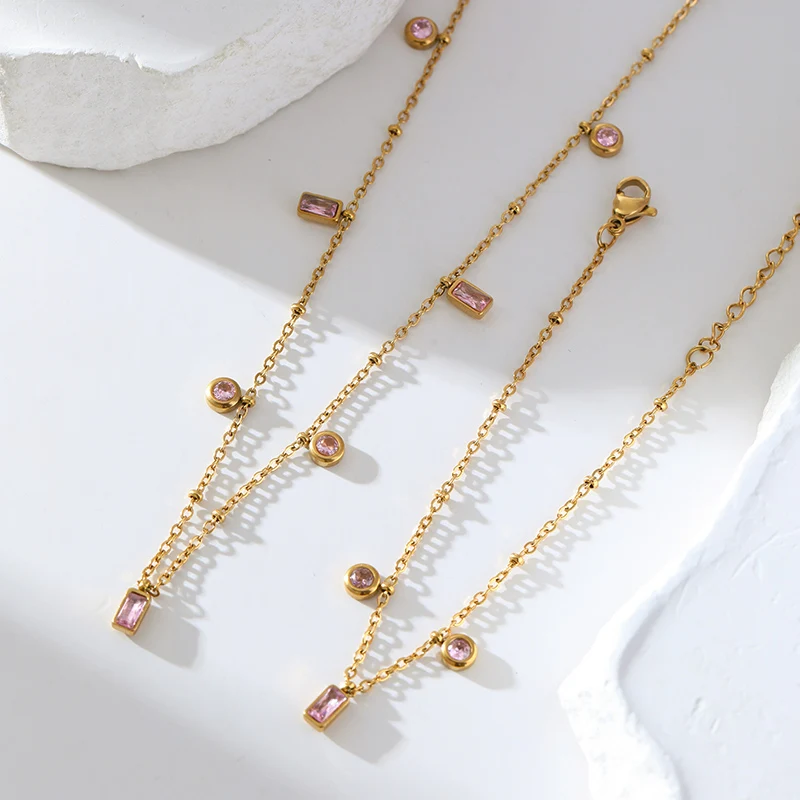 GANEMLY 316L Stainless Steel Colored Acrylic Stone Necklace Bracelets Waterproof Jewelry Charm Metalic Chain Fashion Lady Gift