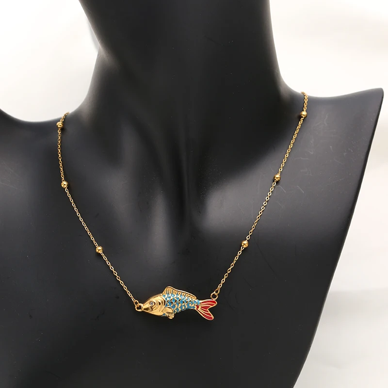 GANEMLY 316L Stainless Steel Colorful 3D Fish Pendant Necklace For Women Trendy Dangle Neck Chain Waterproof Jewelry Lady Gift