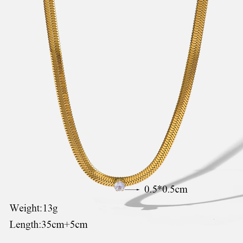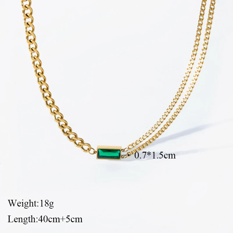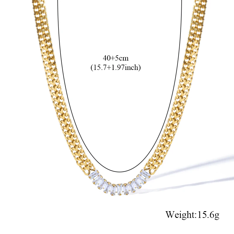 GANEMLY 316L Stainless Steel Cubic Zirconia Chain Necklace Minimalist Metalic 18 K PVD Plated Statement Collar Jewelry Gift