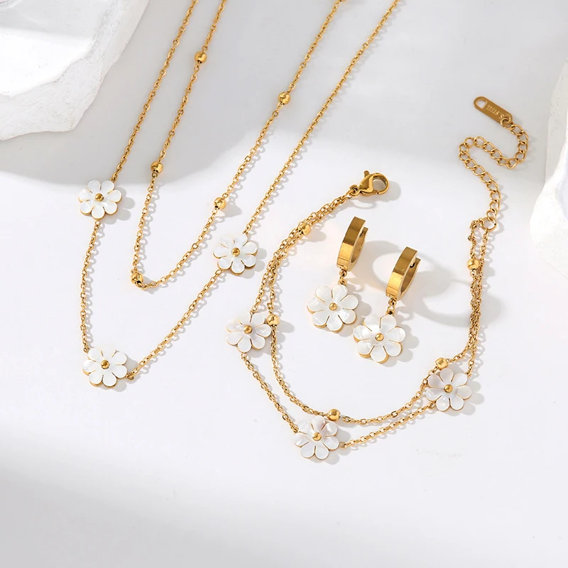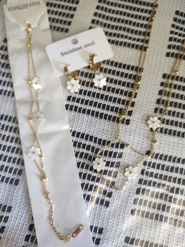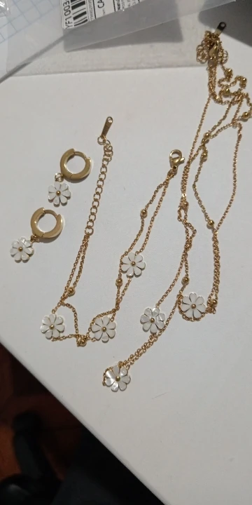 Beautiful set of necklace, bracelet, and pair of daisy-shaped earrings, very pretty, recommended.