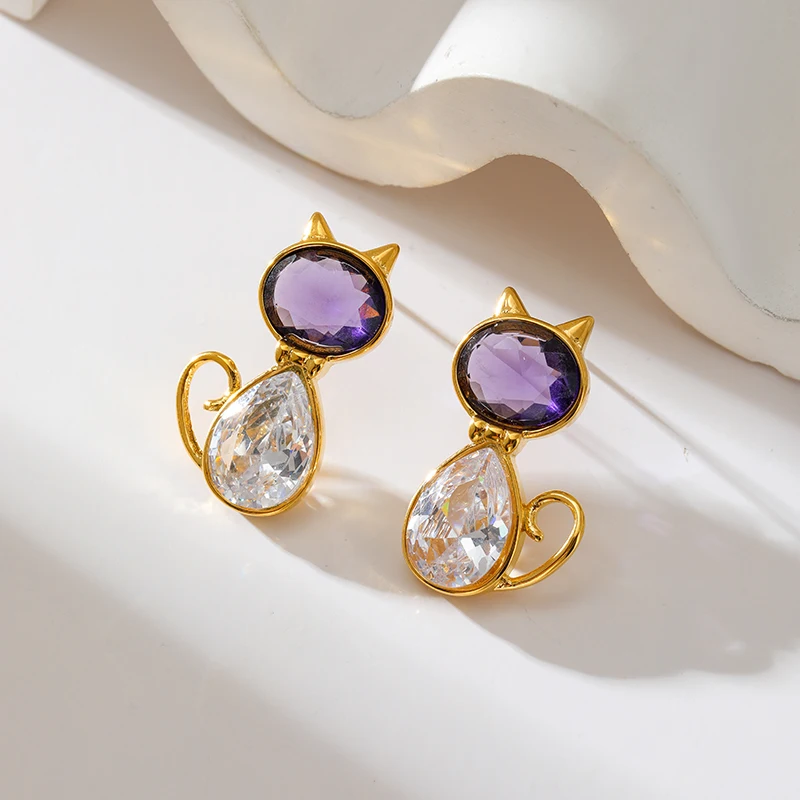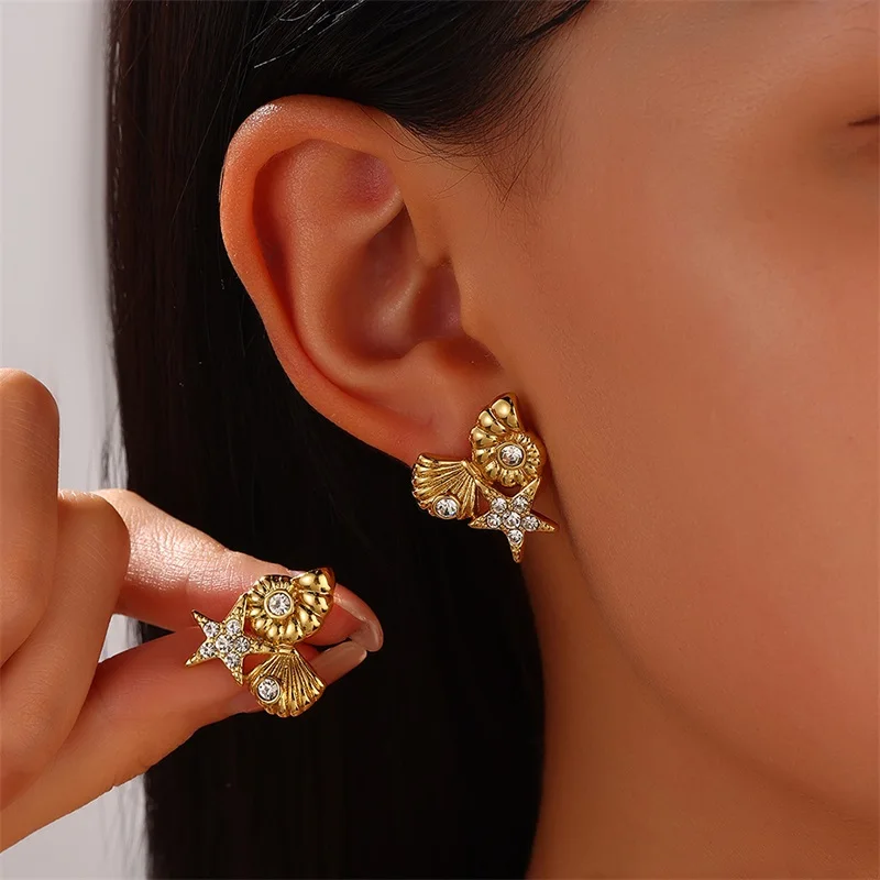 GANEMLY 316L Stainless Steel Earring Luxury Shiny Cubic Zircon Creative Fun Earrings Waterproof Women Exquisite Jewelry Gift