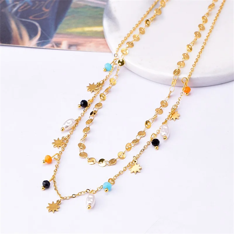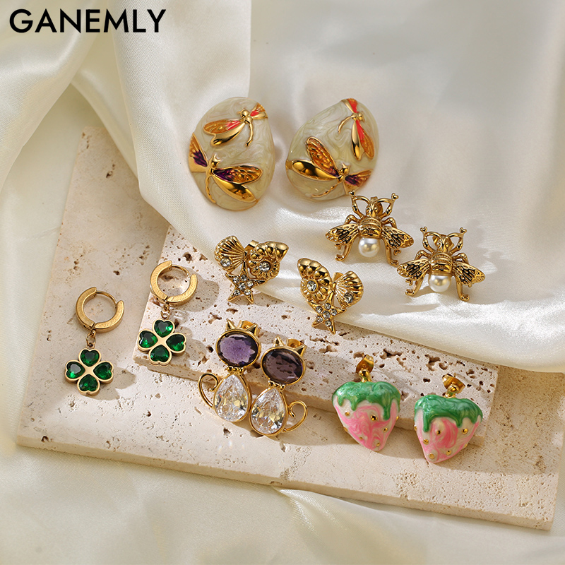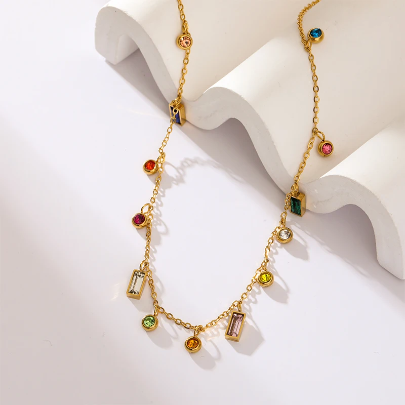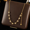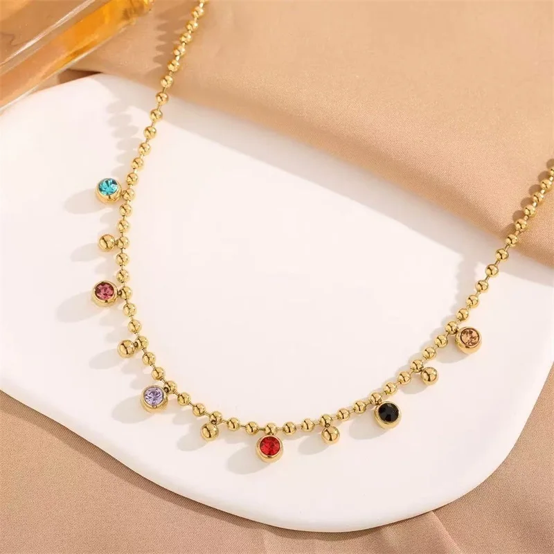 GANEMLY 316L Stainless Steel Fashion Shiny Cubic Zirconia Heart Chain Collar Necklace Waterproof Delicate Femme Jewelry Gift