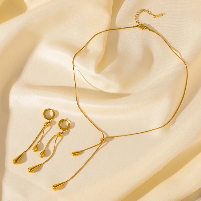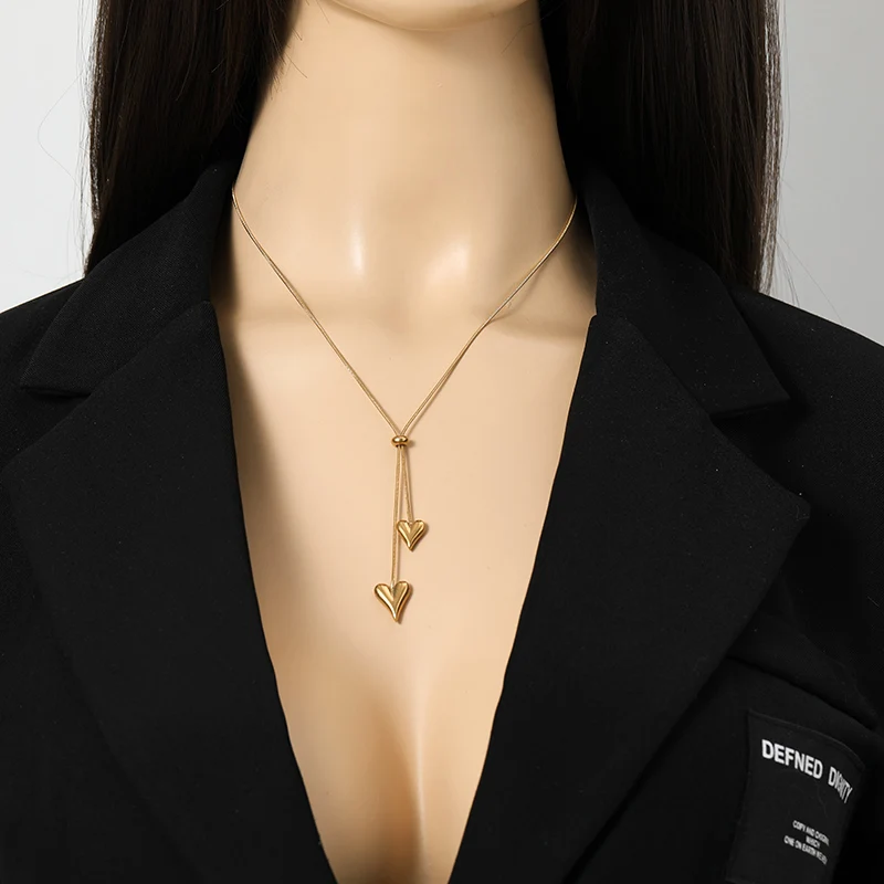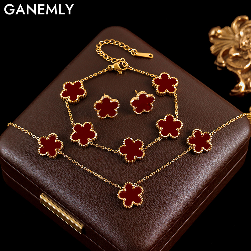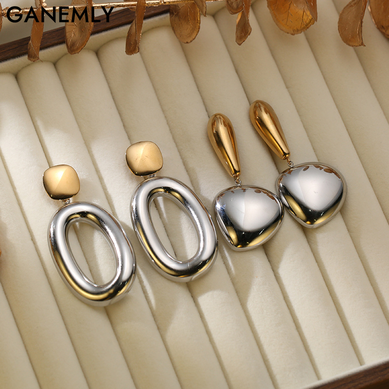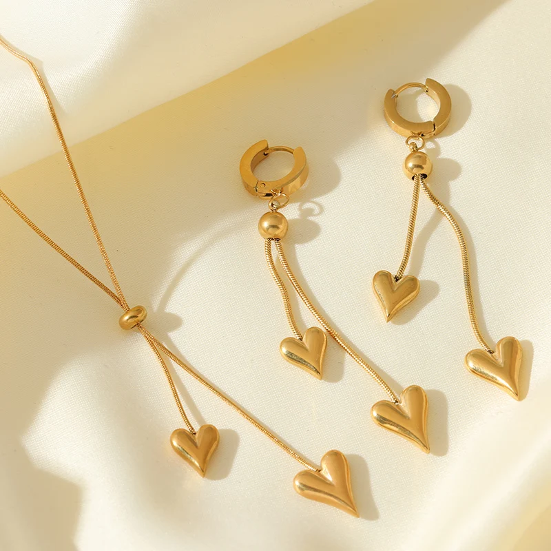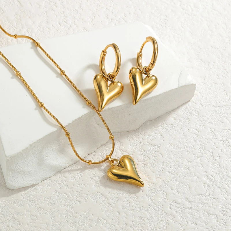 GANEMLY 316L Stainless Steel Fashion Trendy Metal Waterproof Heart Love Necklace Earrings Set Charm Women Jewelry Bijoux Gift