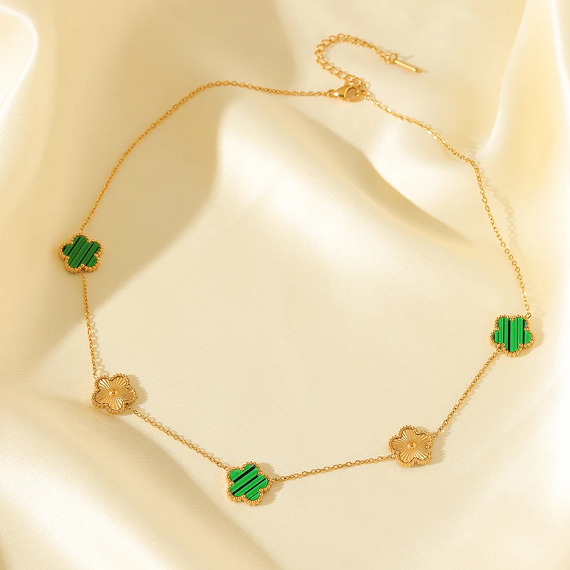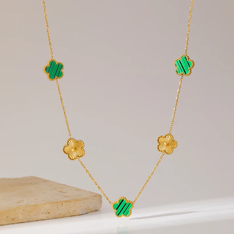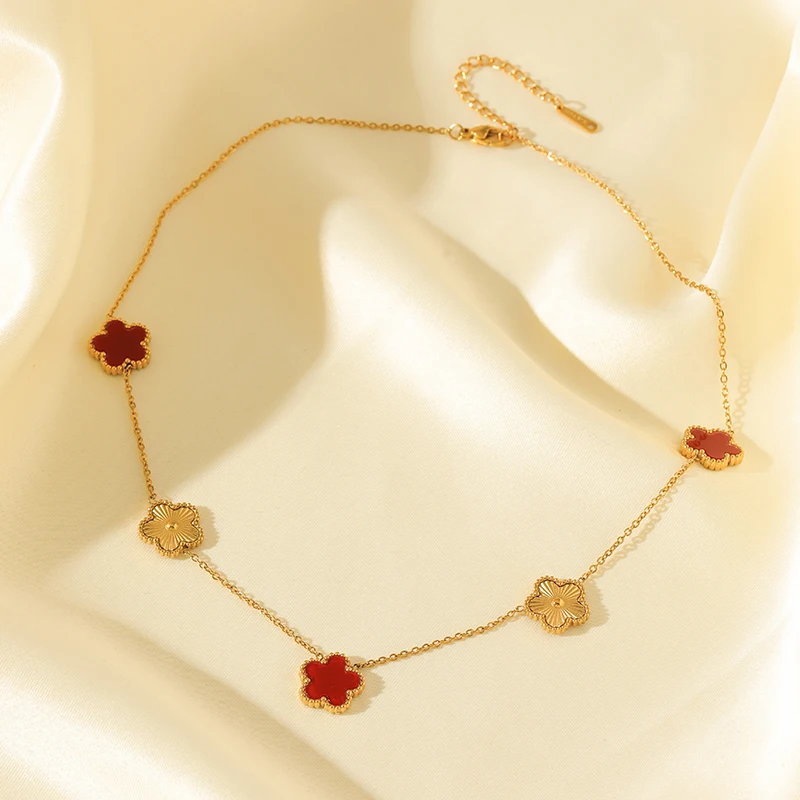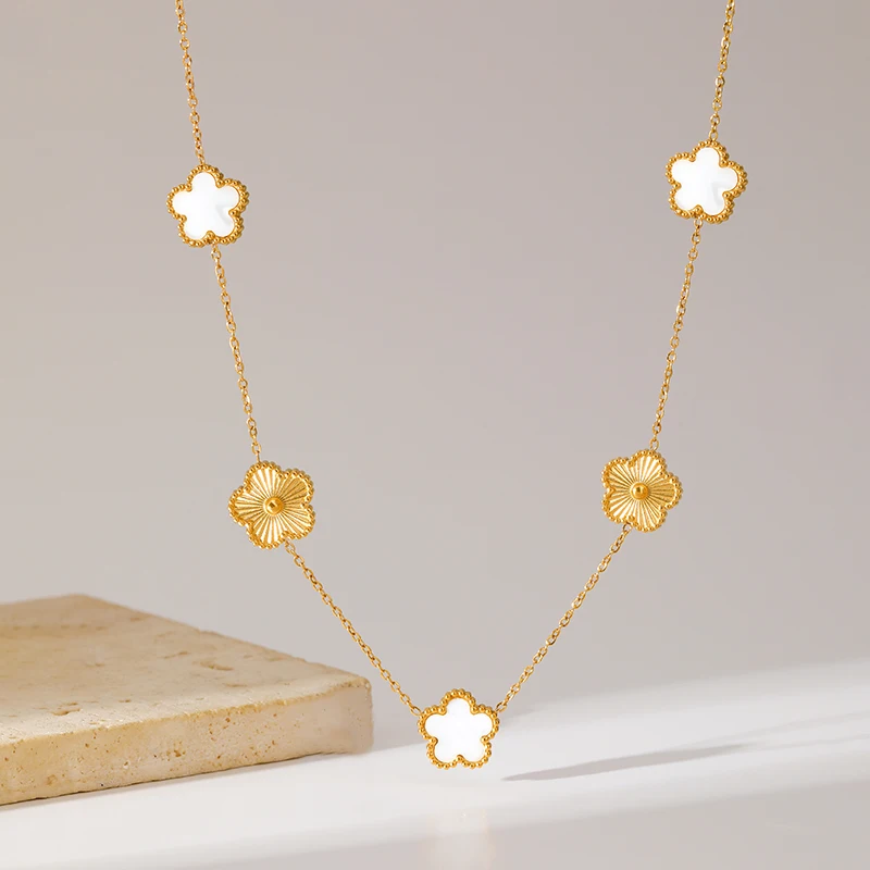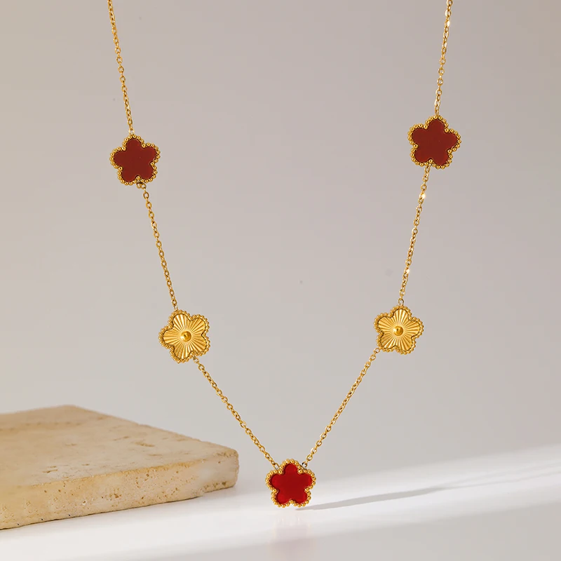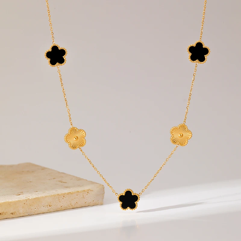 GANEMLY 316L Stainless Steel Five Leaf Clover Necklace For Women Trendy Black Flower Neck Chain Gold Color Jewelry Holiday Gift