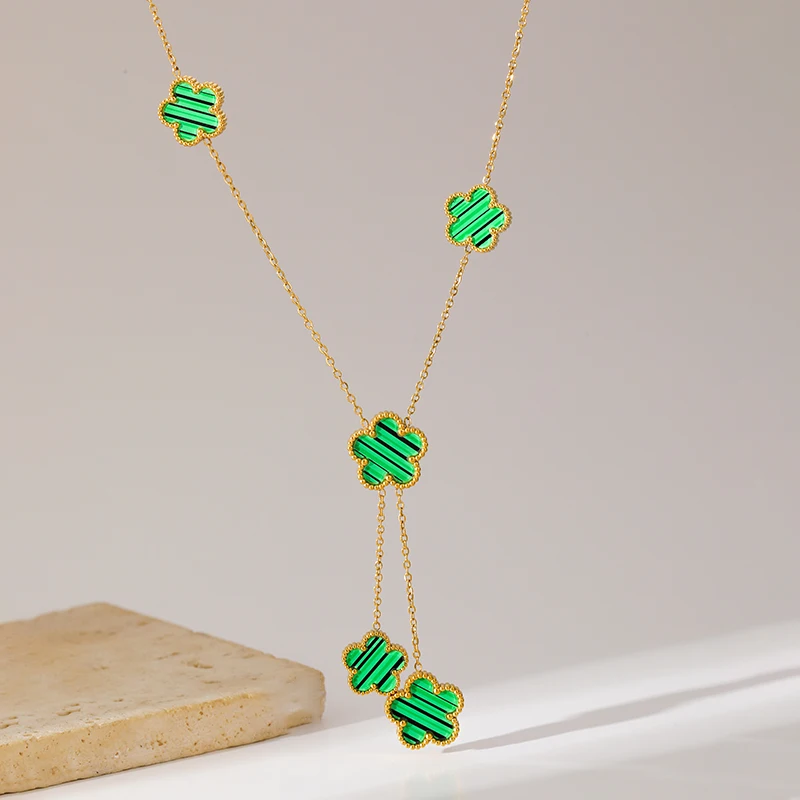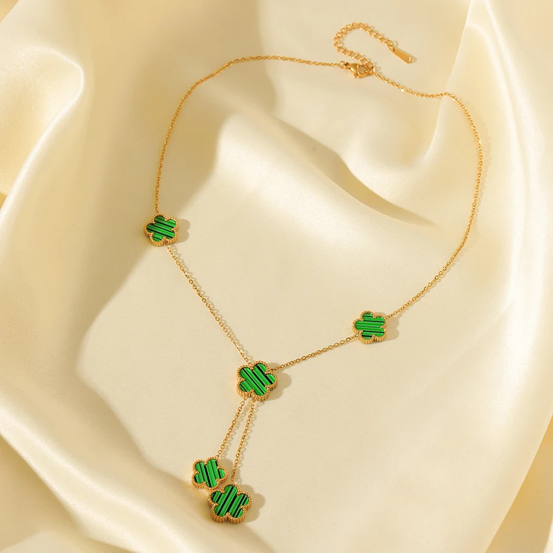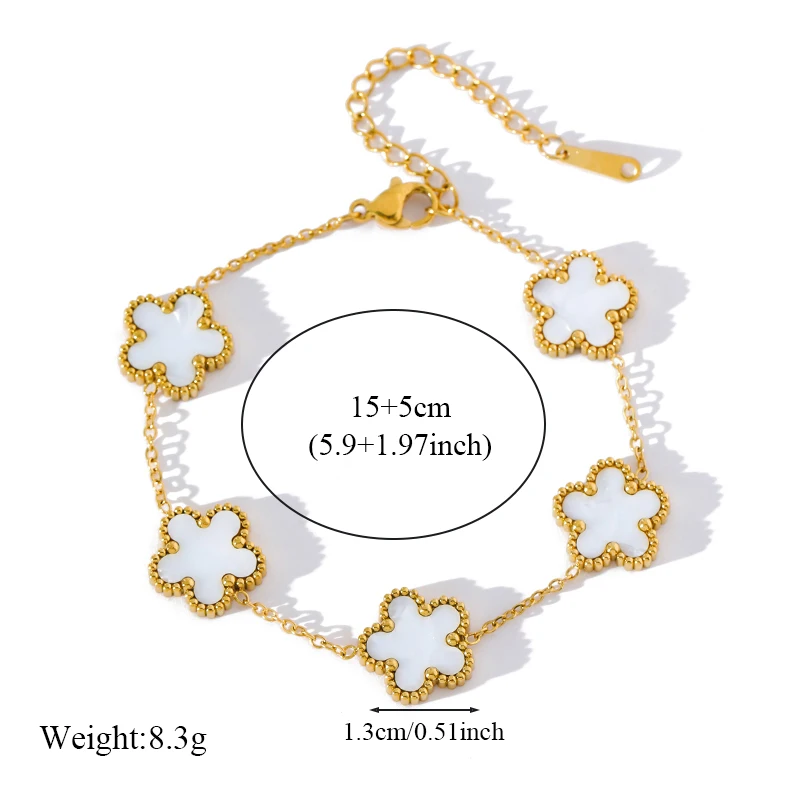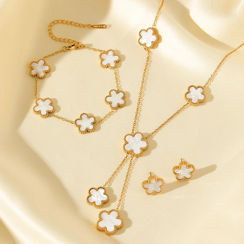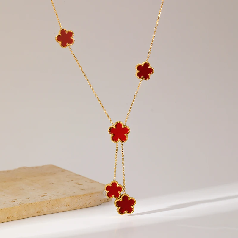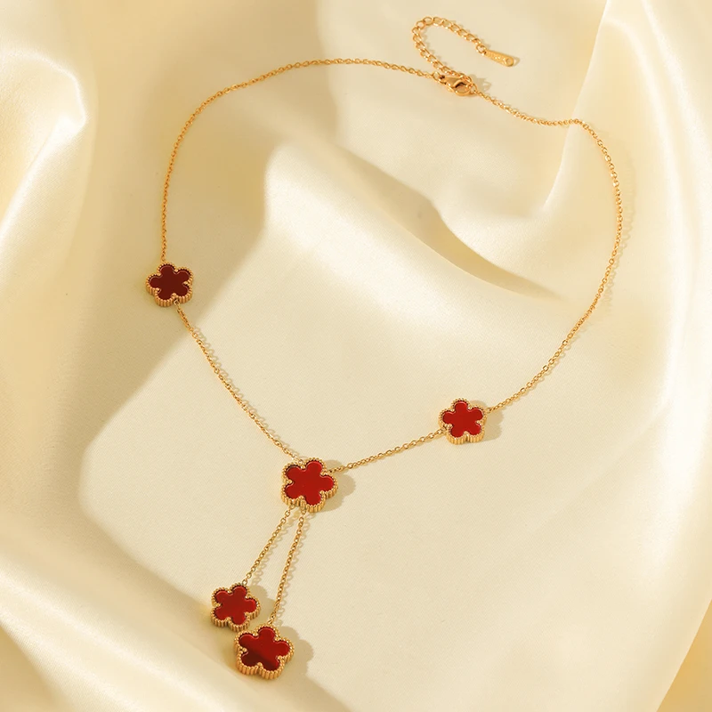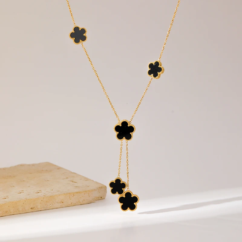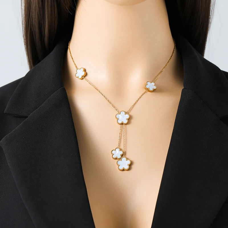 GANEMLY 316L Stainless Steel Five Leaf Clover Pendant Necklace For Women Trendy Reversible White Flower Jewelry Holiday Gifts