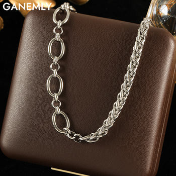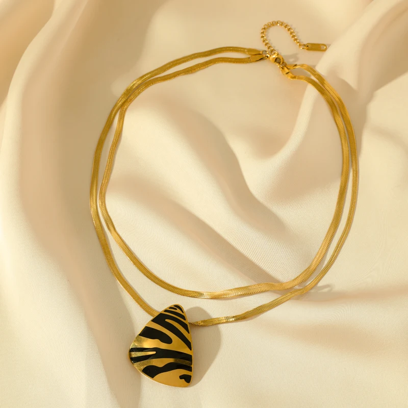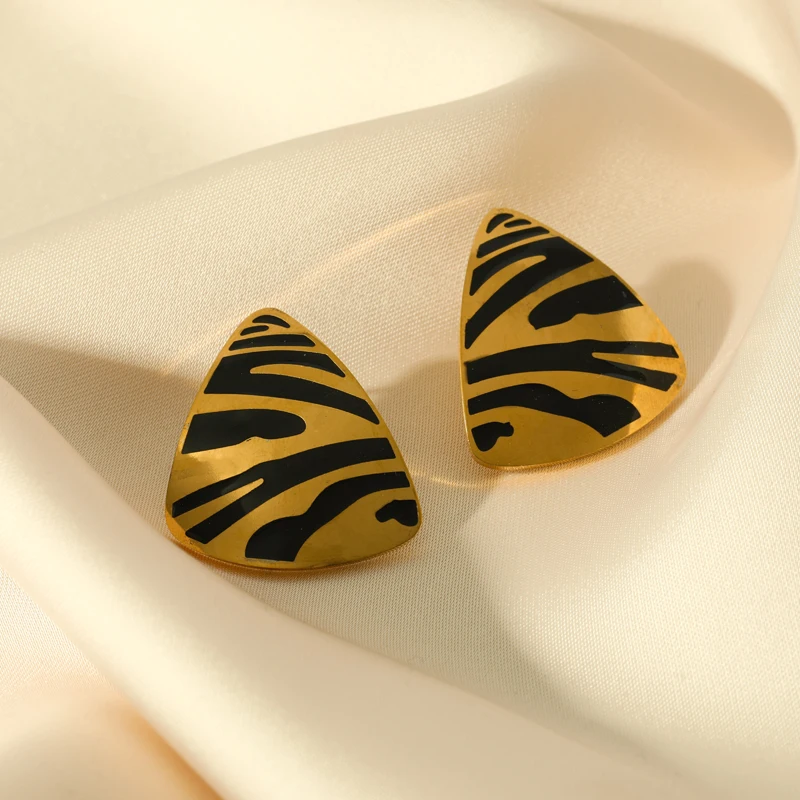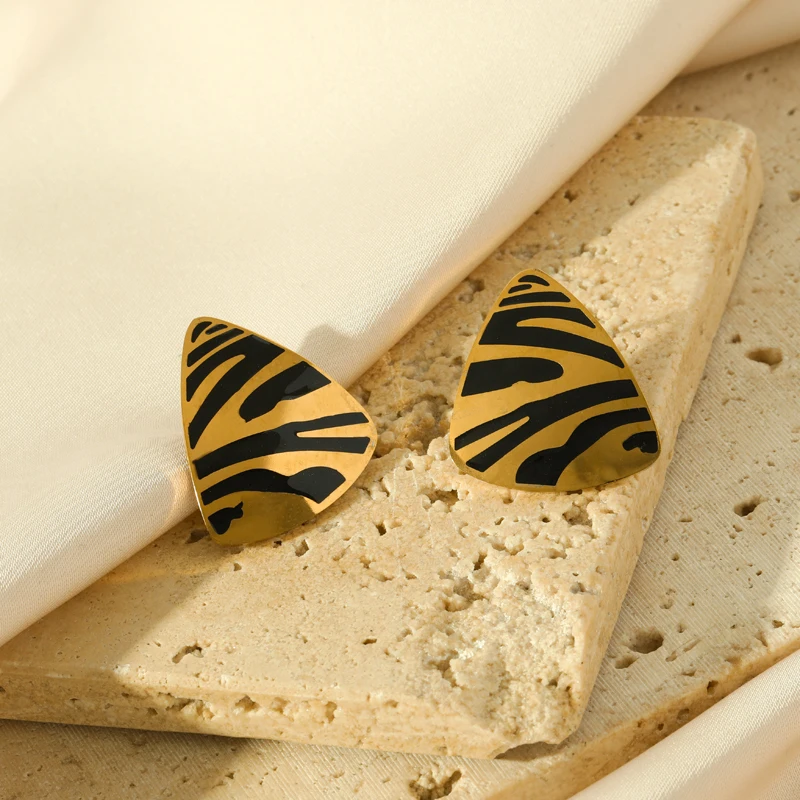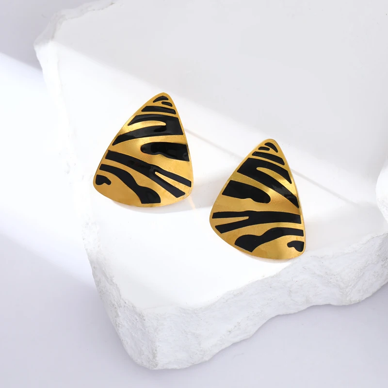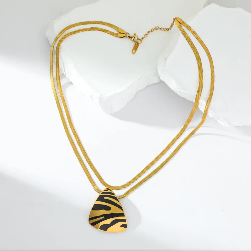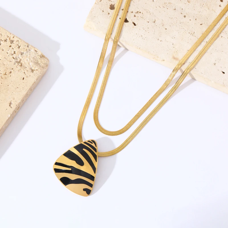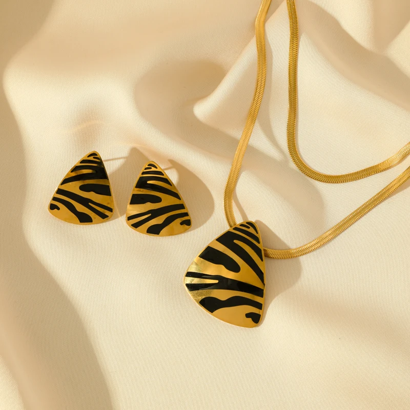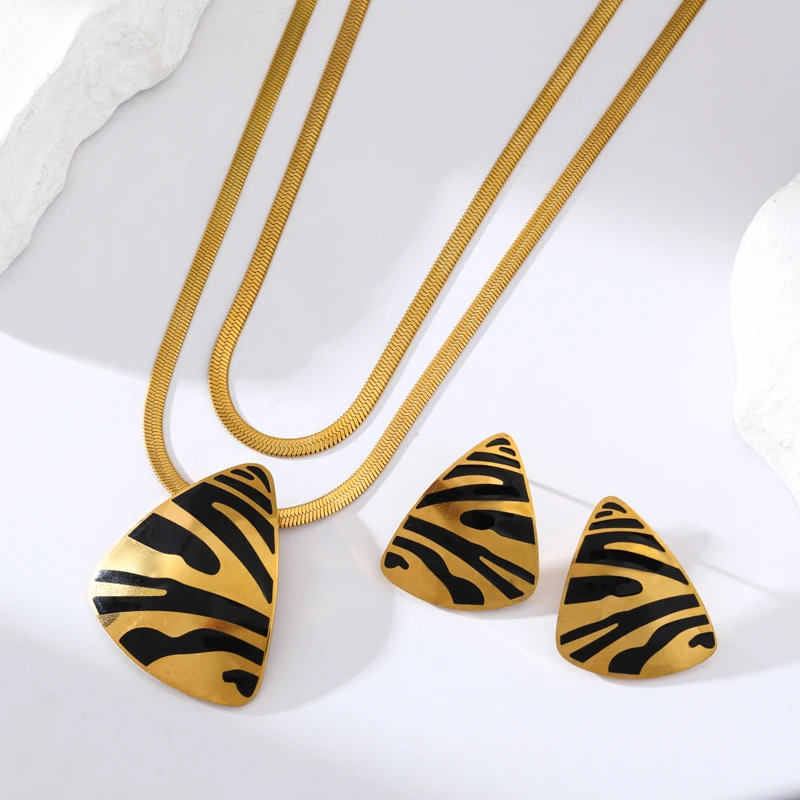 GANEMLY 316L Stainless Steel Geometric Tiger Stripe Necklace Earrings Set For Women Fashion Waterproof Jewelry Set Lady Gift