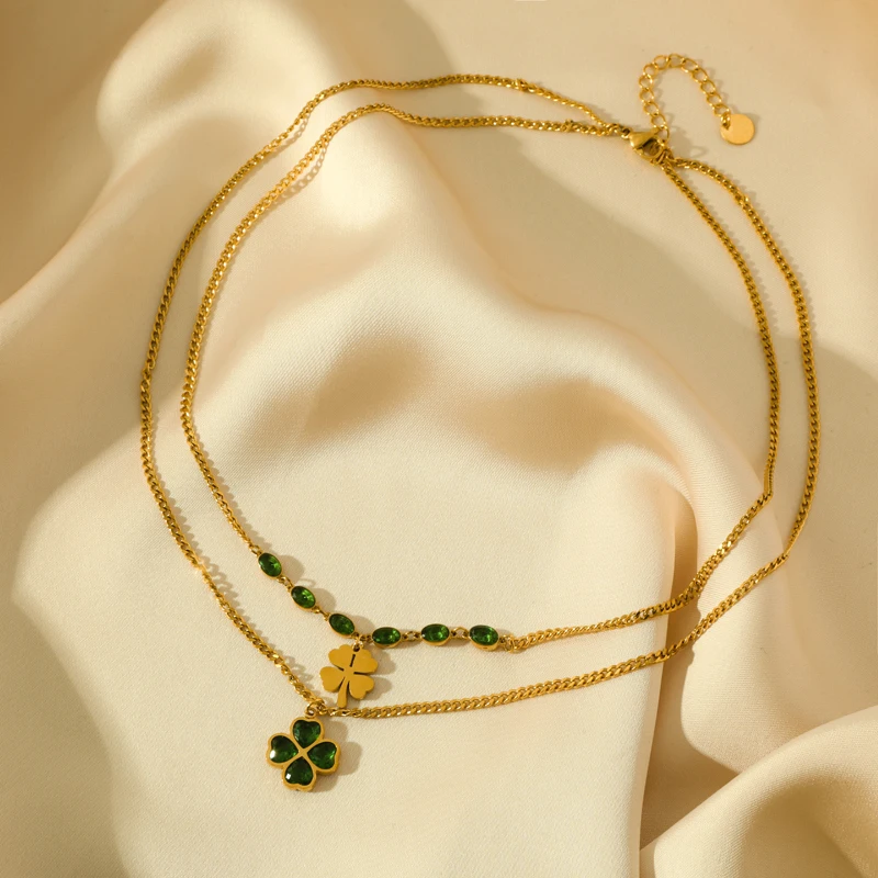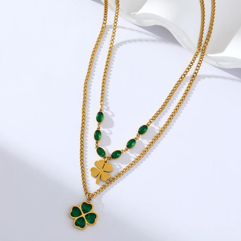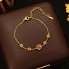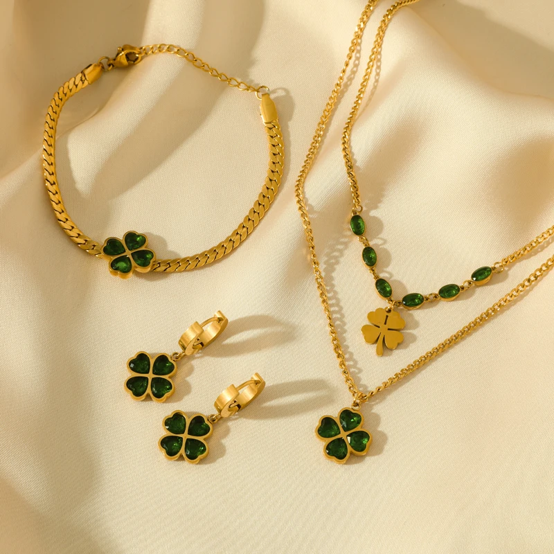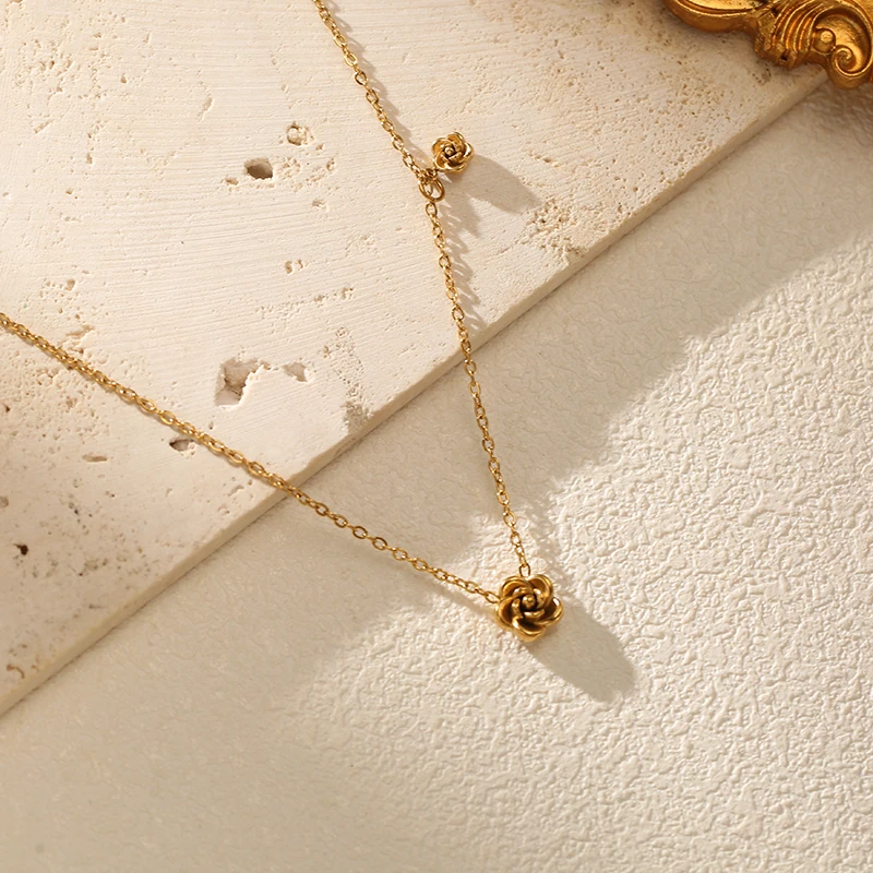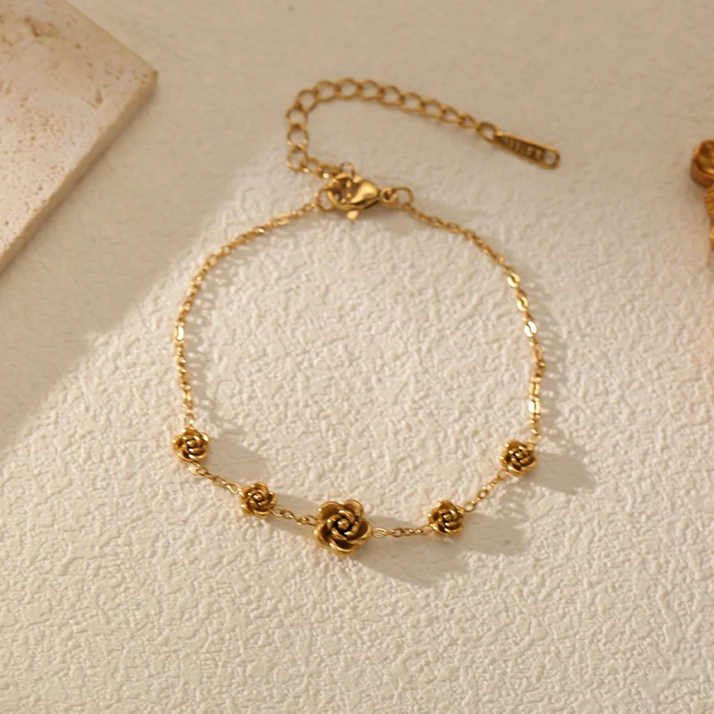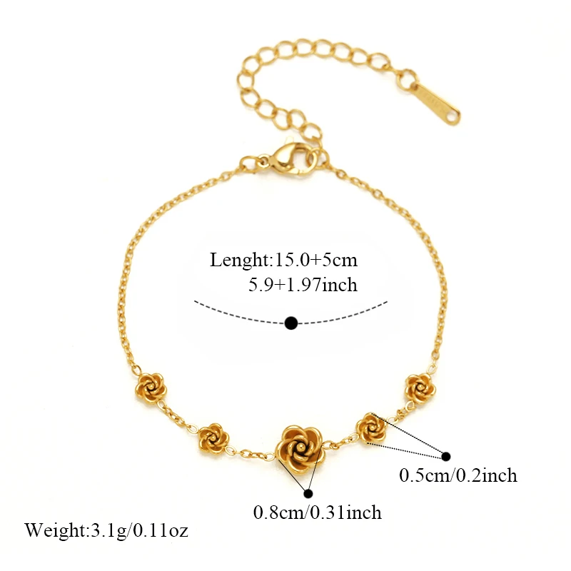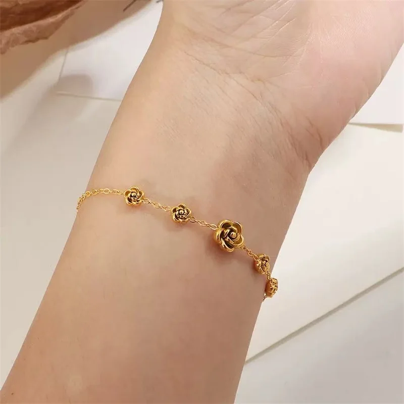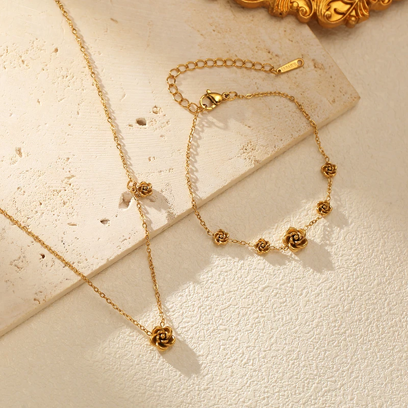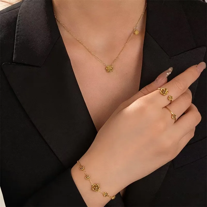 GANEMLY 316L Stainless Steel Gold Color Flower Floral Necklace Bracelet Set For Women Fashion Waterproof Jewelry Set Bijoux