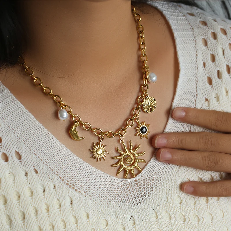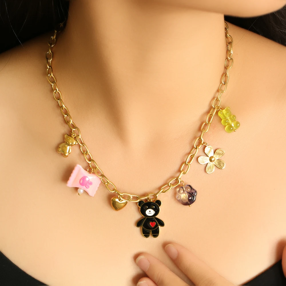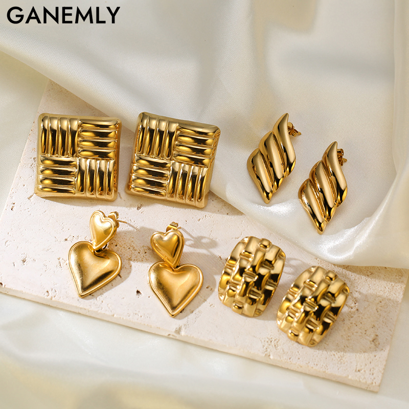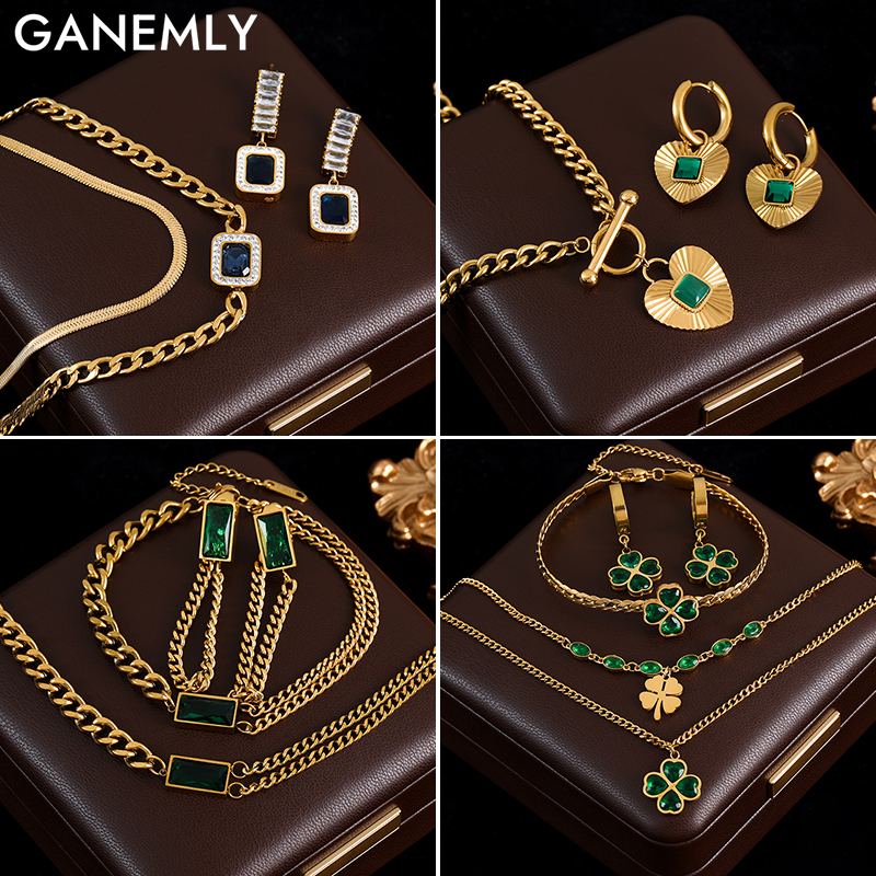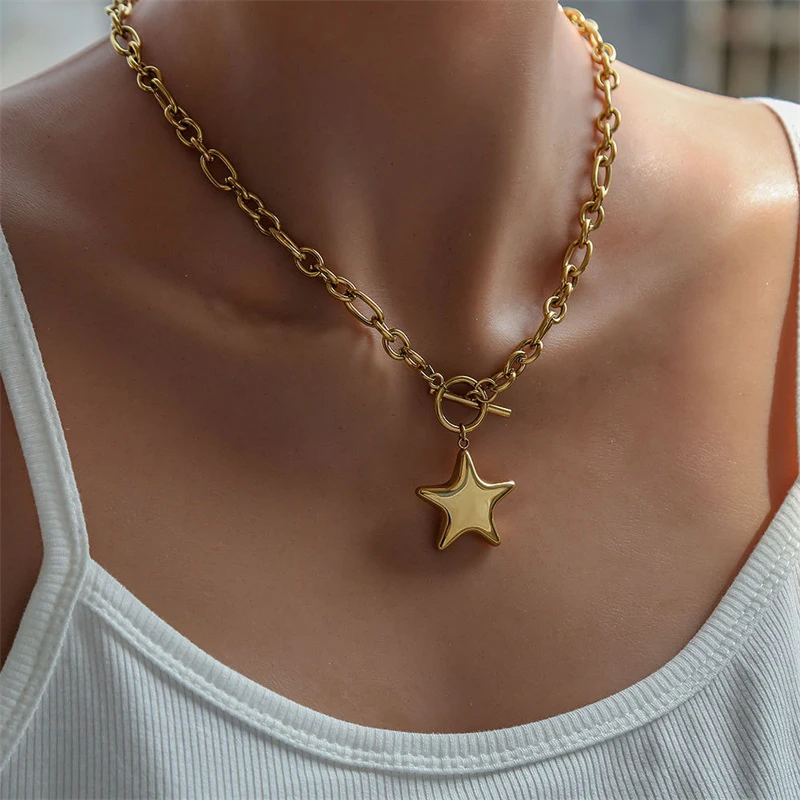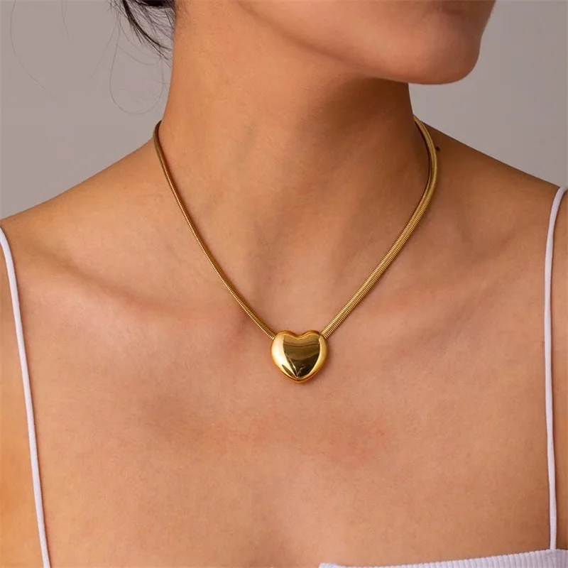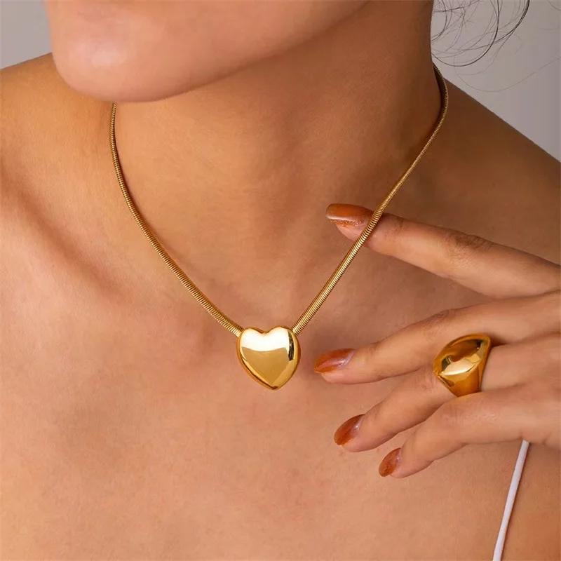 GANEMLY 316L Stainless Steel Gold Color Heart Pendant Necklace Trendy Neck Chain Choker Collar Waterproof Jewelry For Women