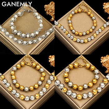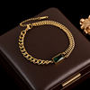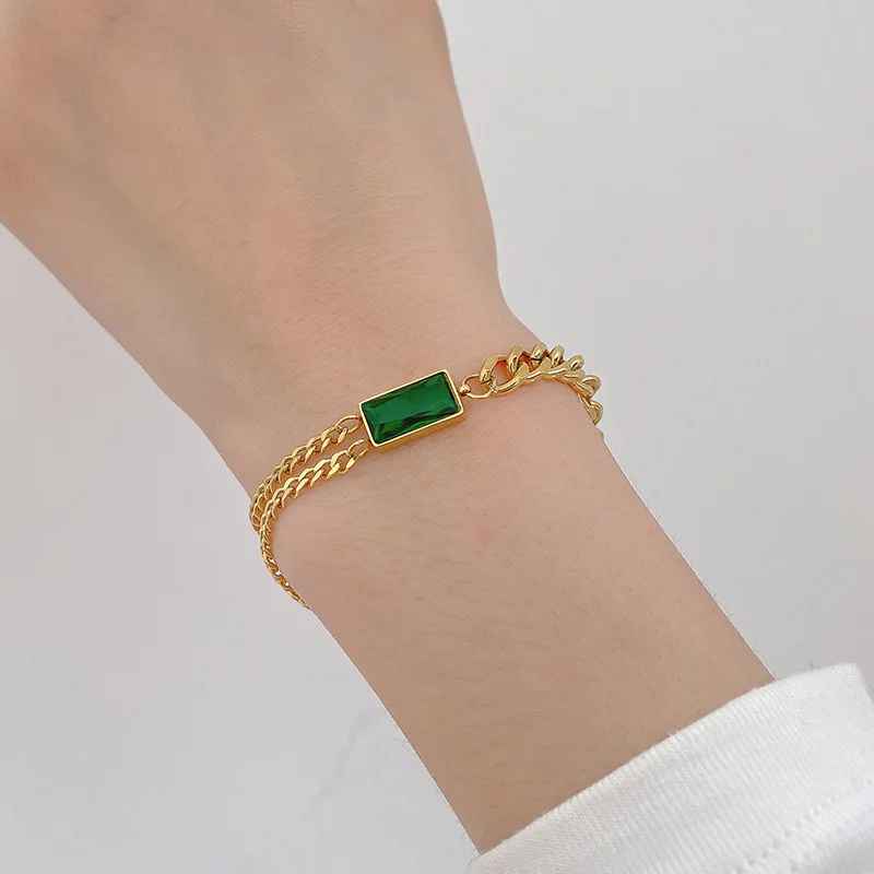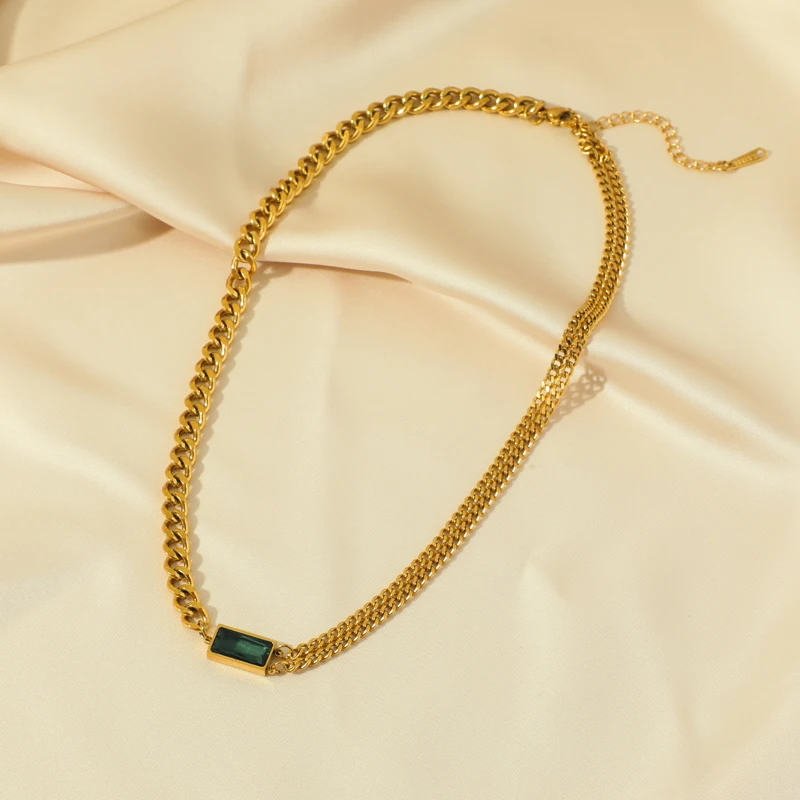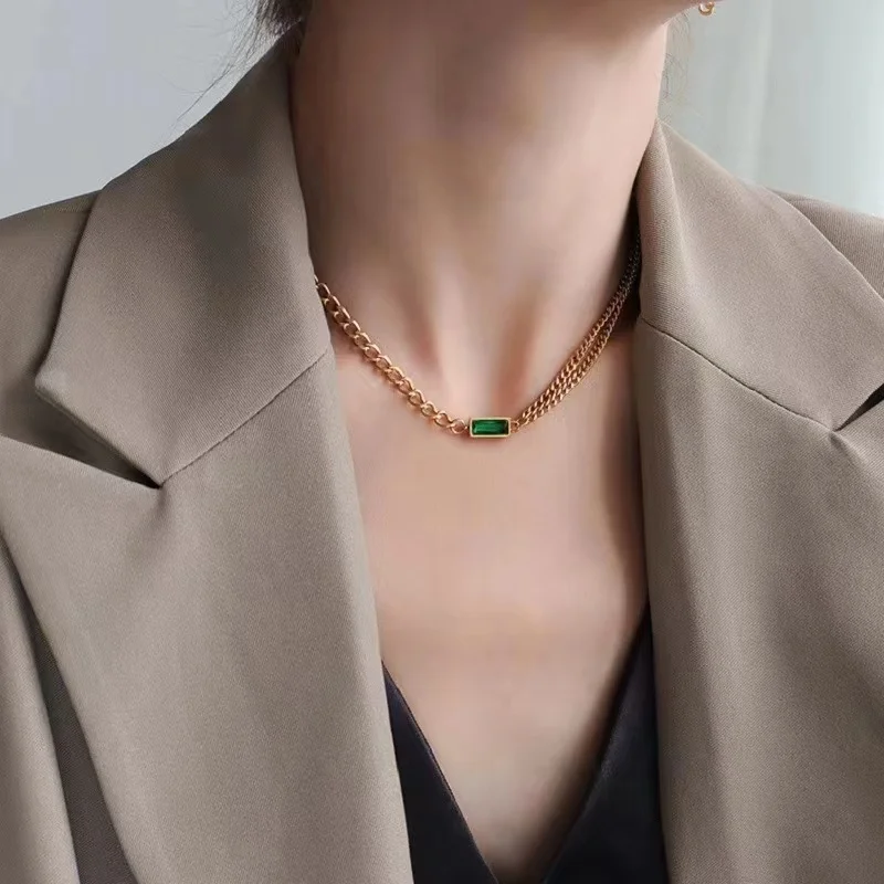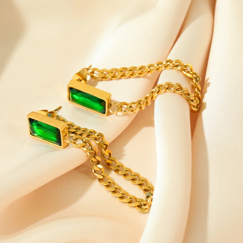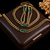 GANEMLY 316L Stainless Steel Green Crystal Necklace Bracelet Earrings Set For Women Girl Fashion Waterproof Jewelry 3-Set Gift