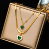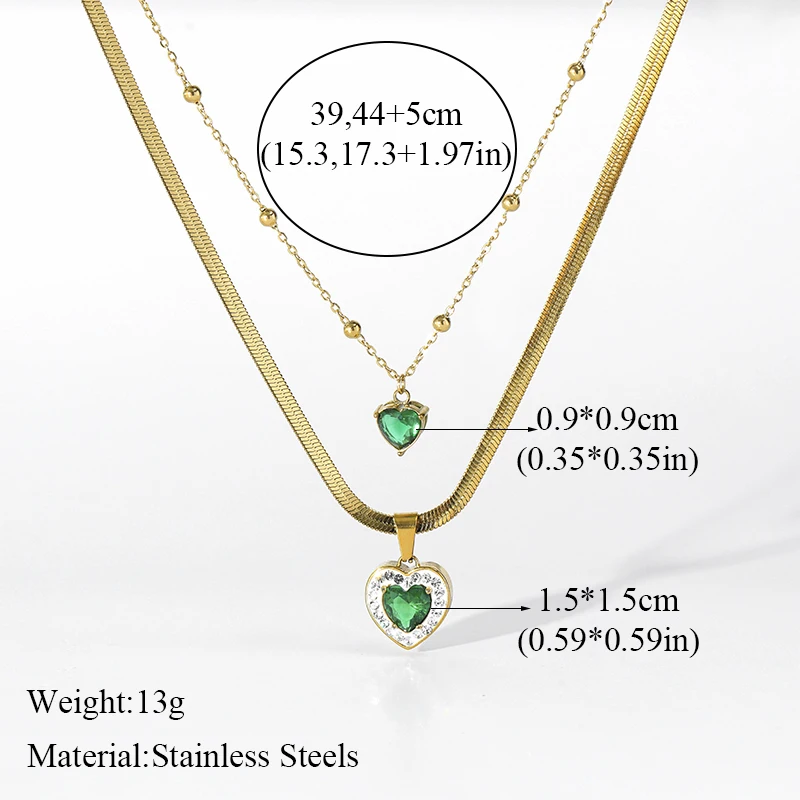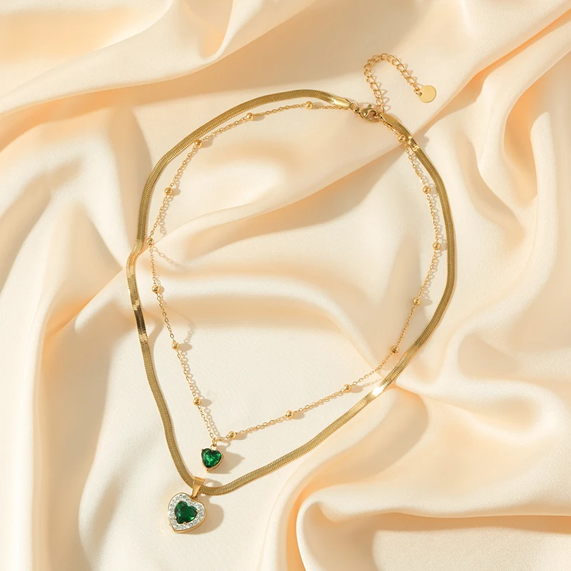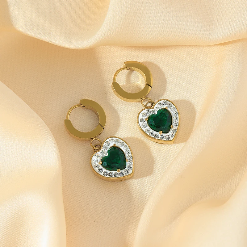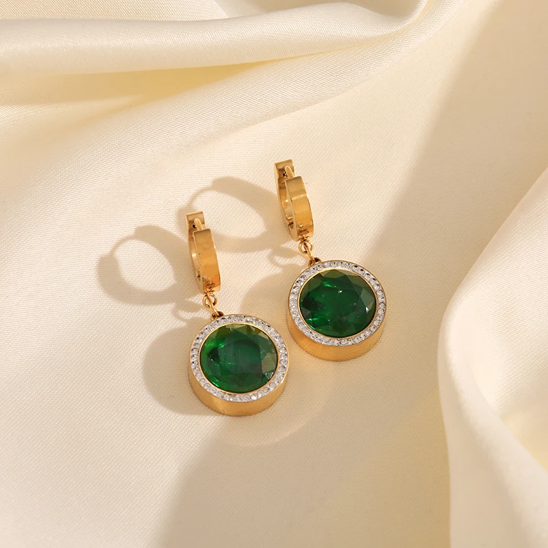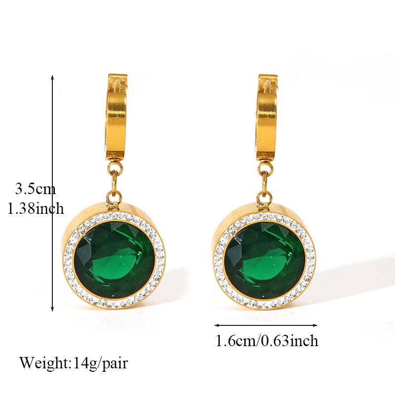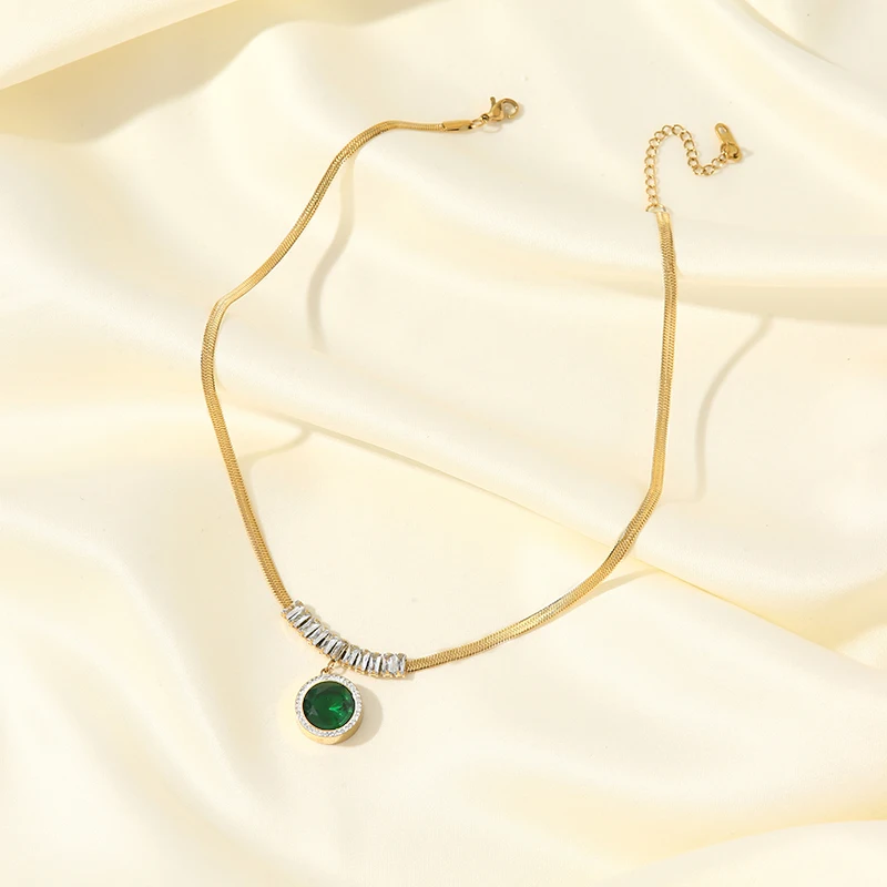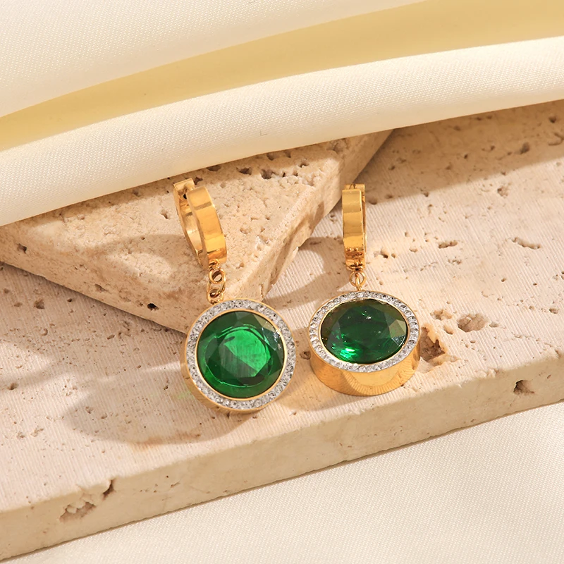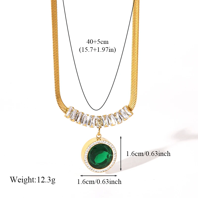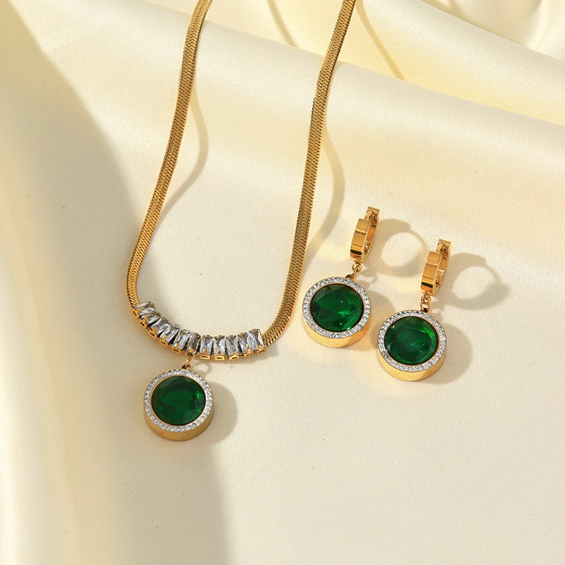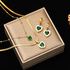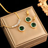 GANEMLY 316L Stainless Steel Green Zircon Crystal Pendant Necklace Earrings Set For Women Fashion New Dangle Jewelry Lady Gift
