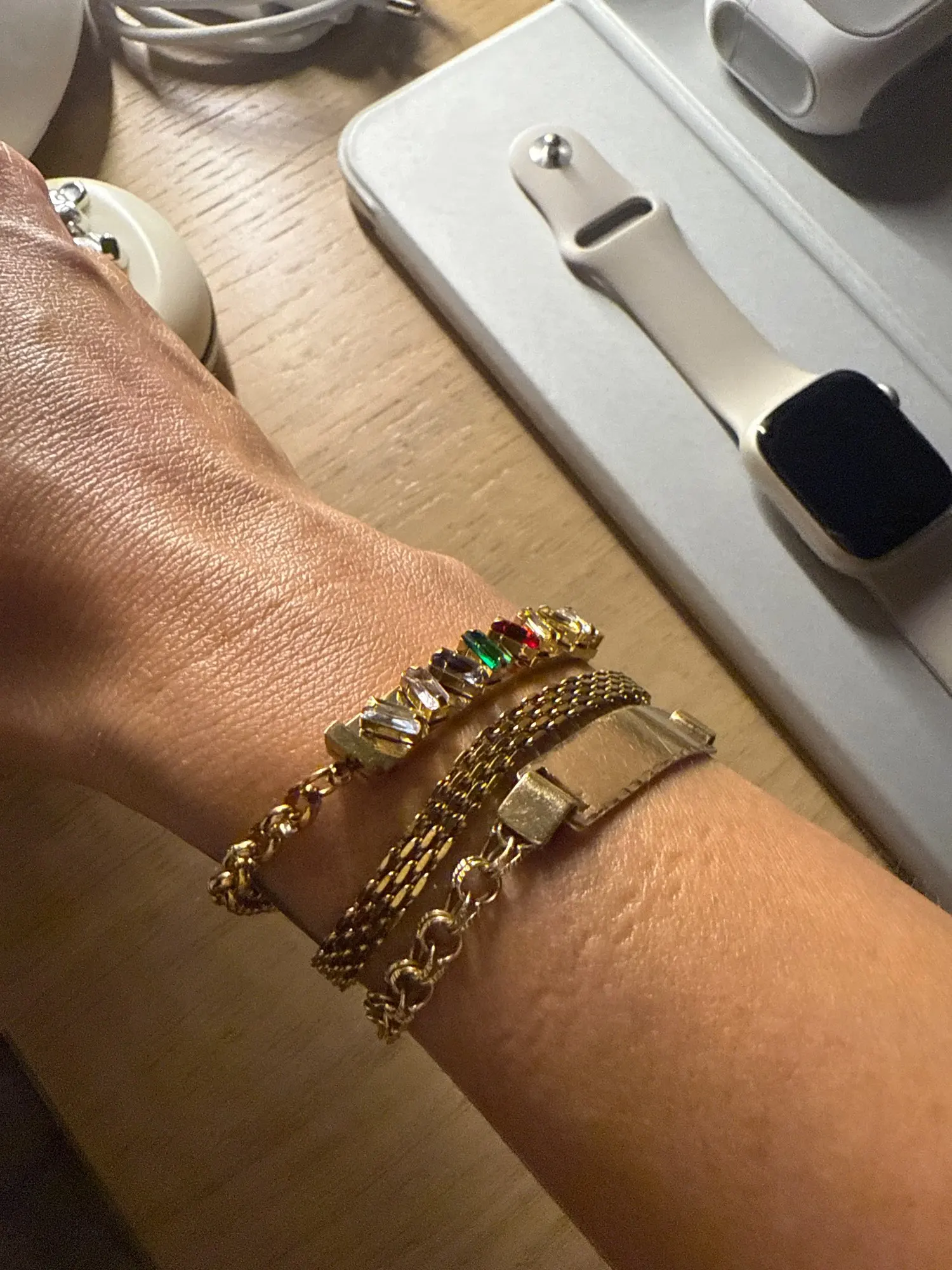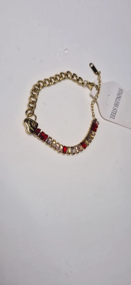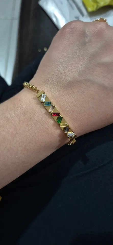 This bracelet is beautiful, the stones shine a lot. Without a doubt, I would order it again, I hope it is stainless steel but at first glance it seems to be.