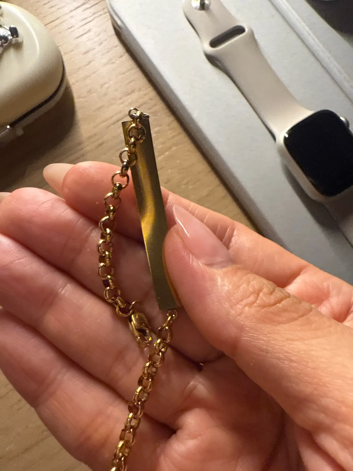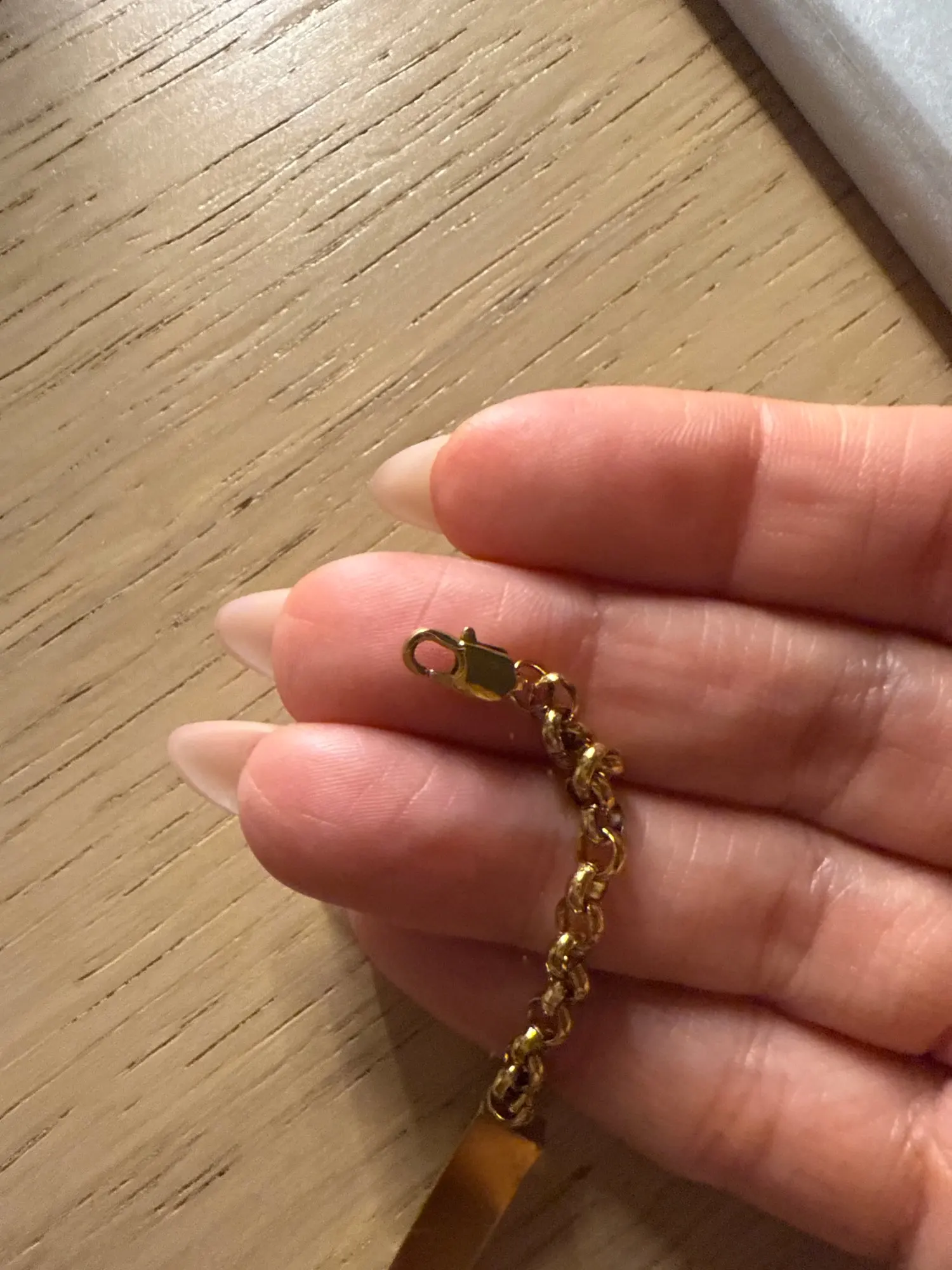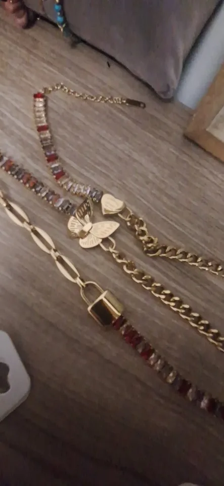 It's very pretty if you like it and want to buy it, don't hesitate. The two above are gold and I really like how it looks next to the others because it doesn't look so yellow. I put the carabiner on it myself because I don't like the clasp they come with from the factory; I have the tools and can do it myself at home. Very happy with the purchase.
