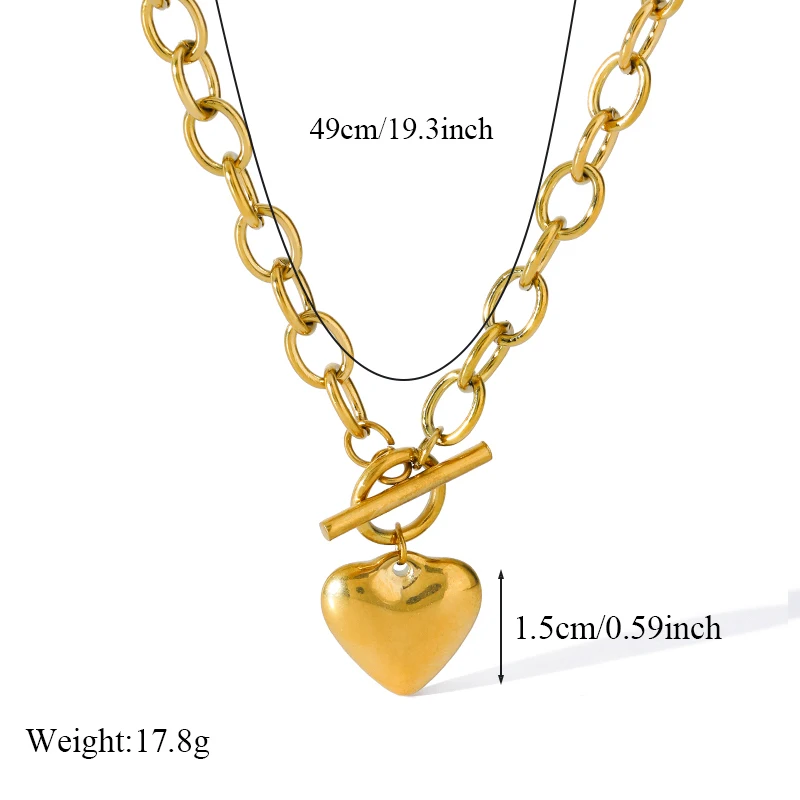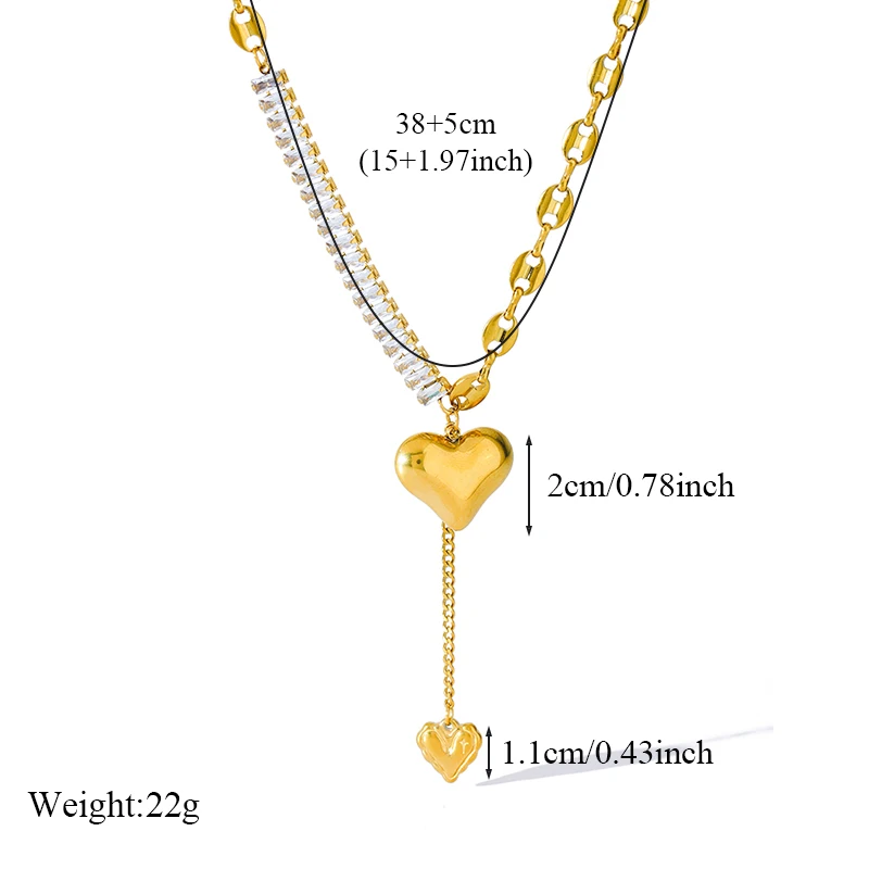 GANEMLY 316L Stainless Steel Heart Zircon Long Pendant Necklace For Women New Trendy Neck Chain Waterproof Jewelry Gift Collar
