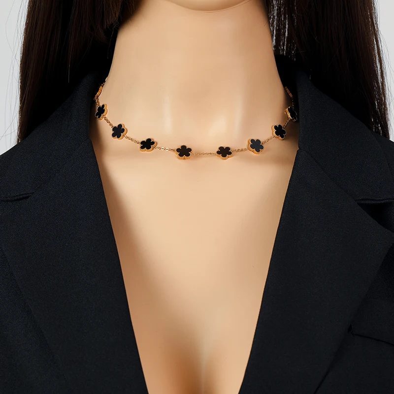 GANEMLY 316l Stainless Steel High Quality Five Leaf Flower Petaled Pendant Necklace Chain Clover Neck Collar Exquisite Jewelry
