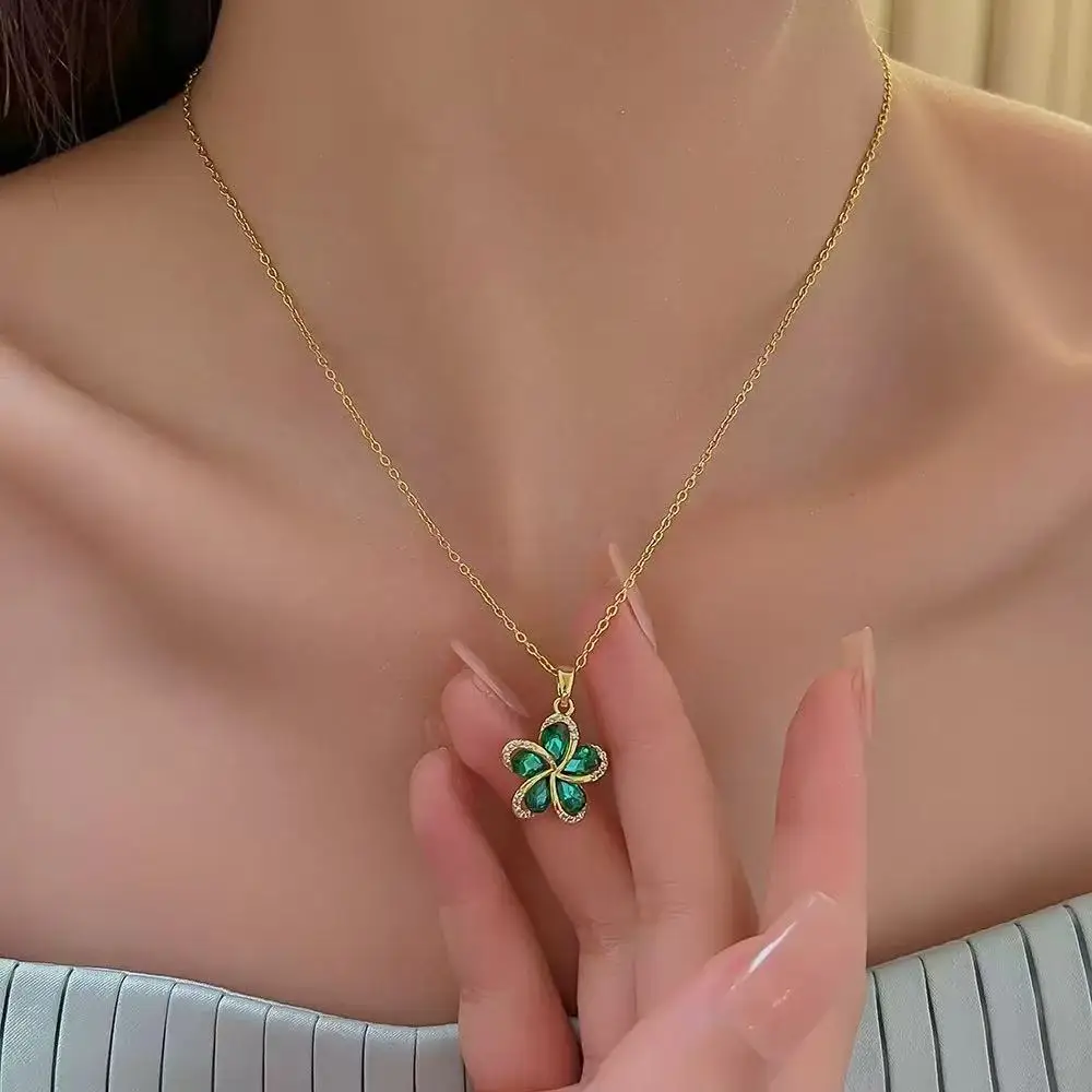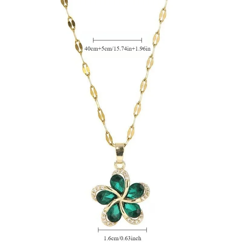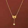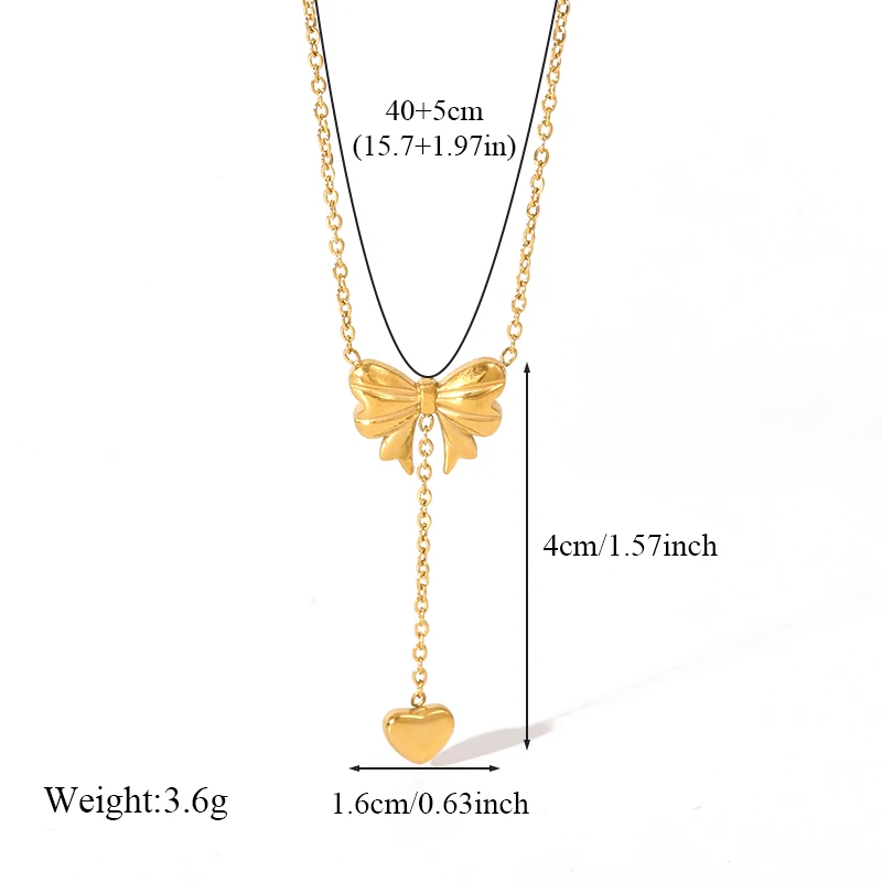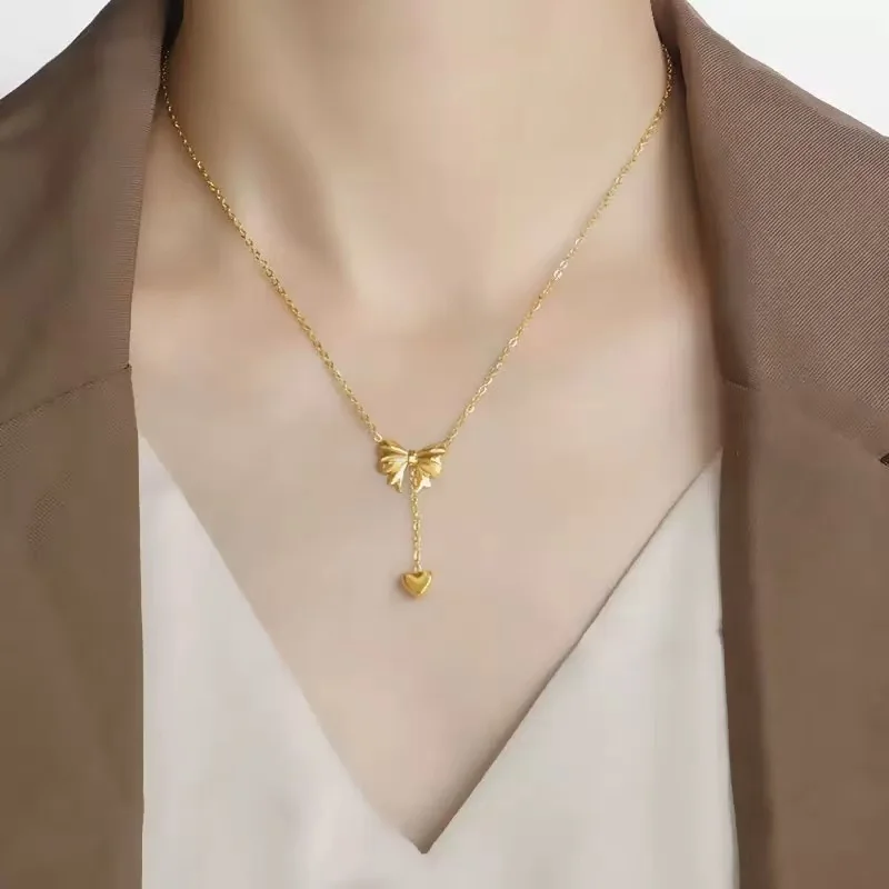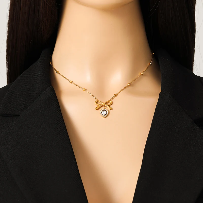 GANEMLY 316l Stainless Steel Luxury Bling Cubic Zirconia Bowknot Heart Pendant Necklace Women Chic Romantic Waterproof Jewelry