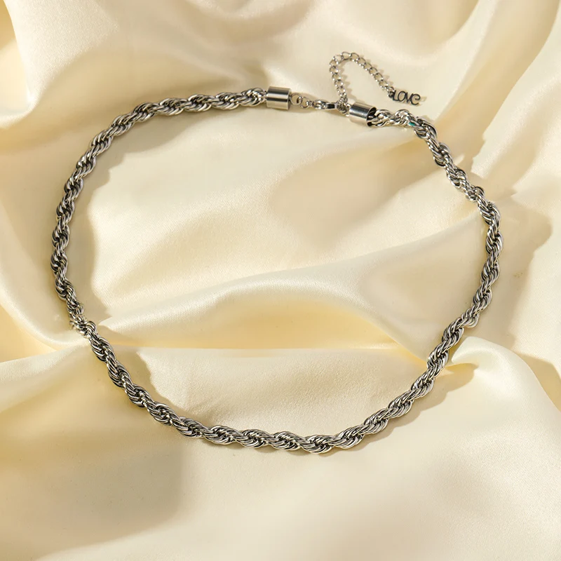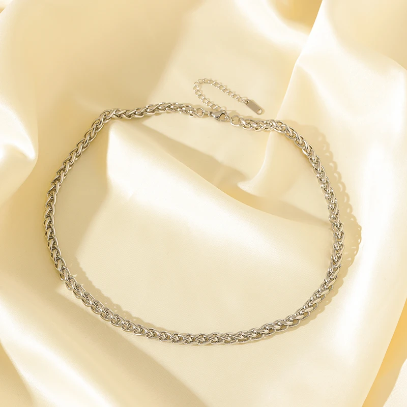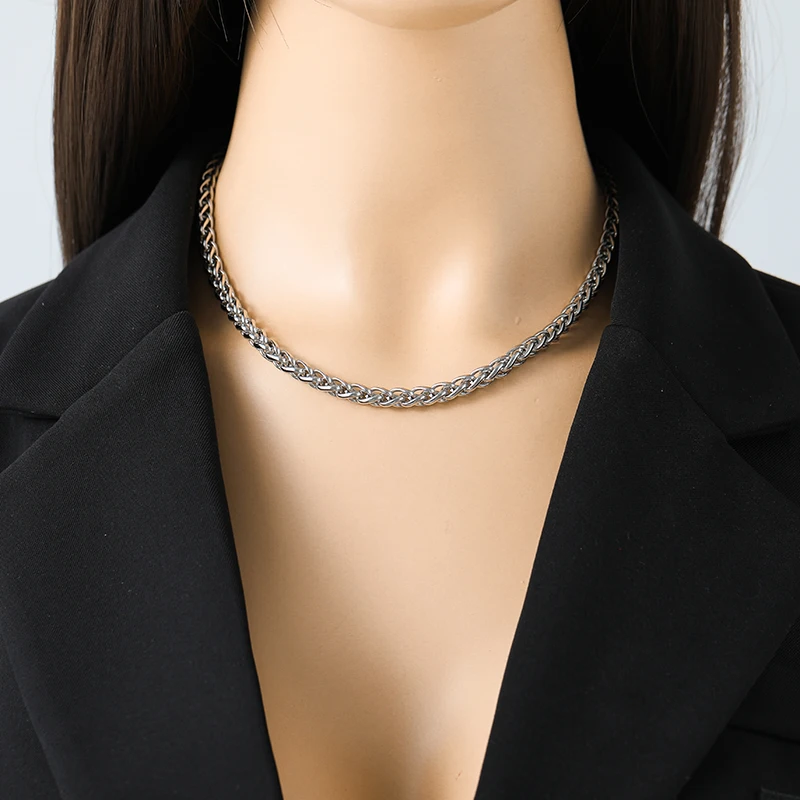 GANEMLY 316L Stainless Steel Metal Asymmetry Silver Color Chain Neckalce For Women Trendy Waterproof Jewelry Neck Chain Collar