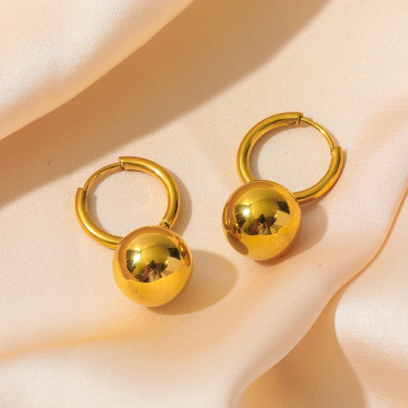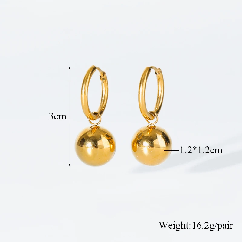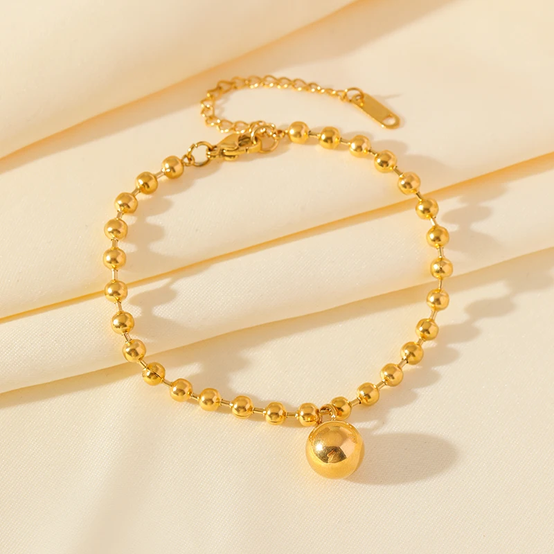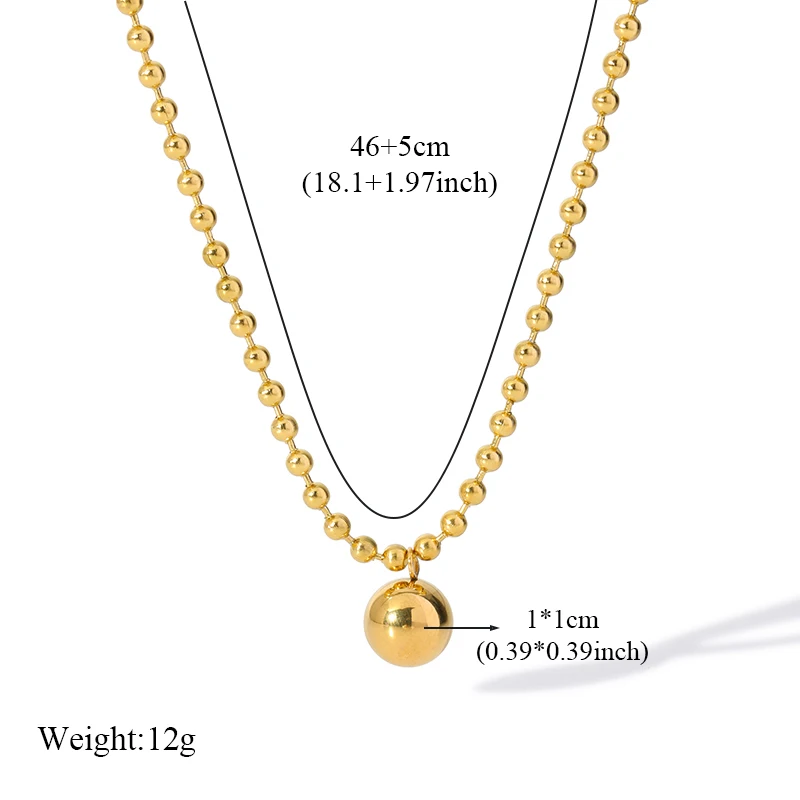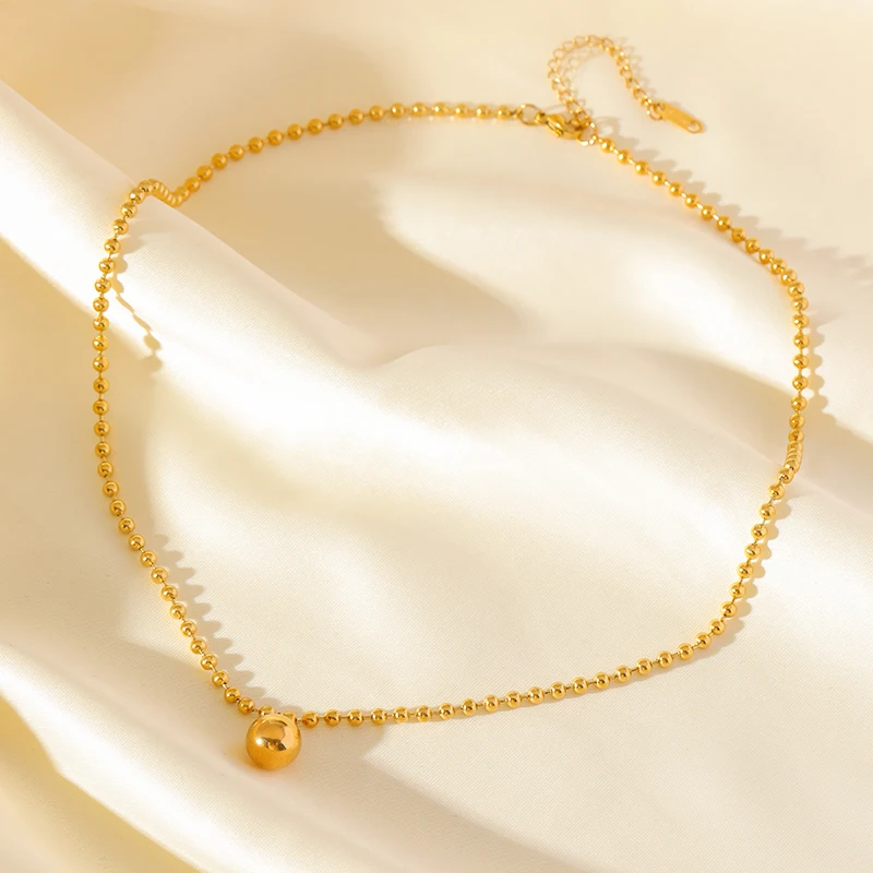 GANEMLY 316L Stainless Steel Metal Bead Ball Necklace Bracelet Earrings For Women New Trendy Waterproof Jewelry 3-Set Lady Gift